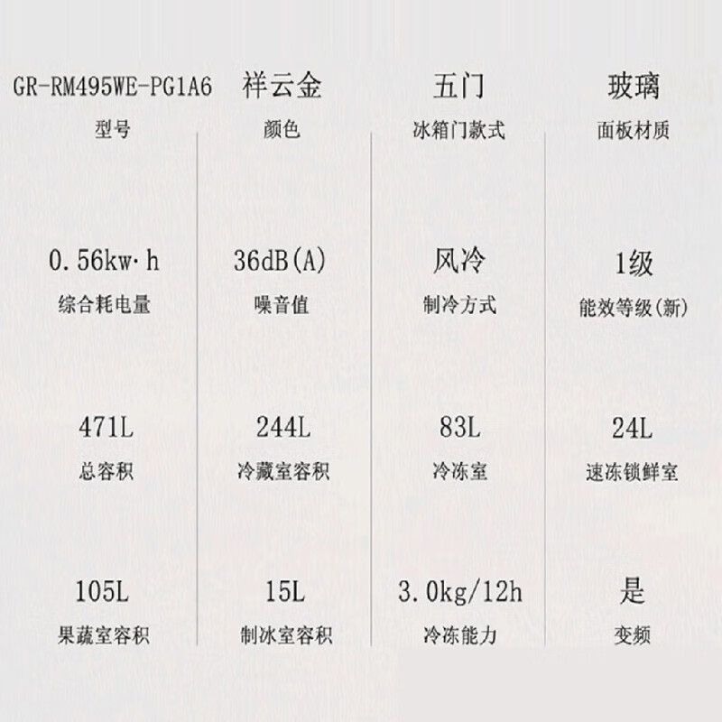 【限天津区域】东芝/冰箱/GR-RM495WE-PG1A6/祥云金