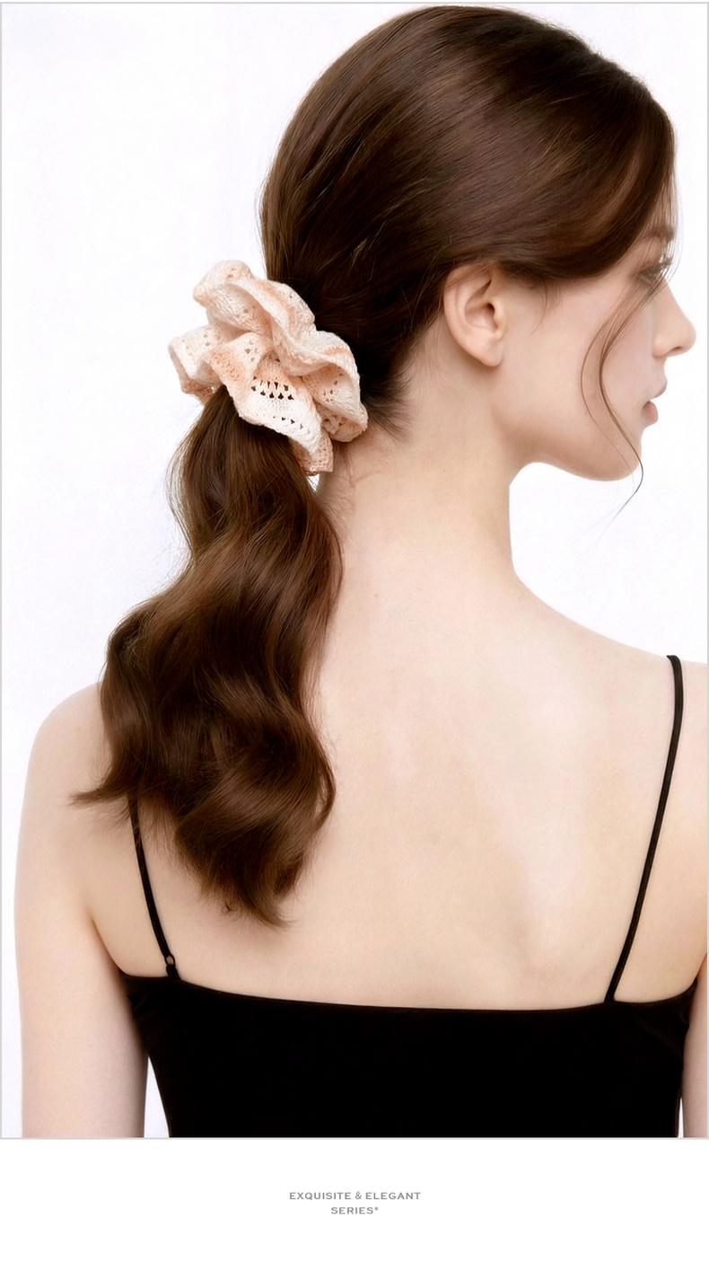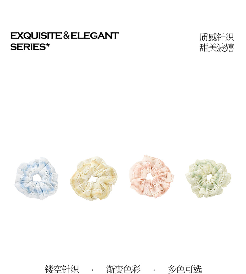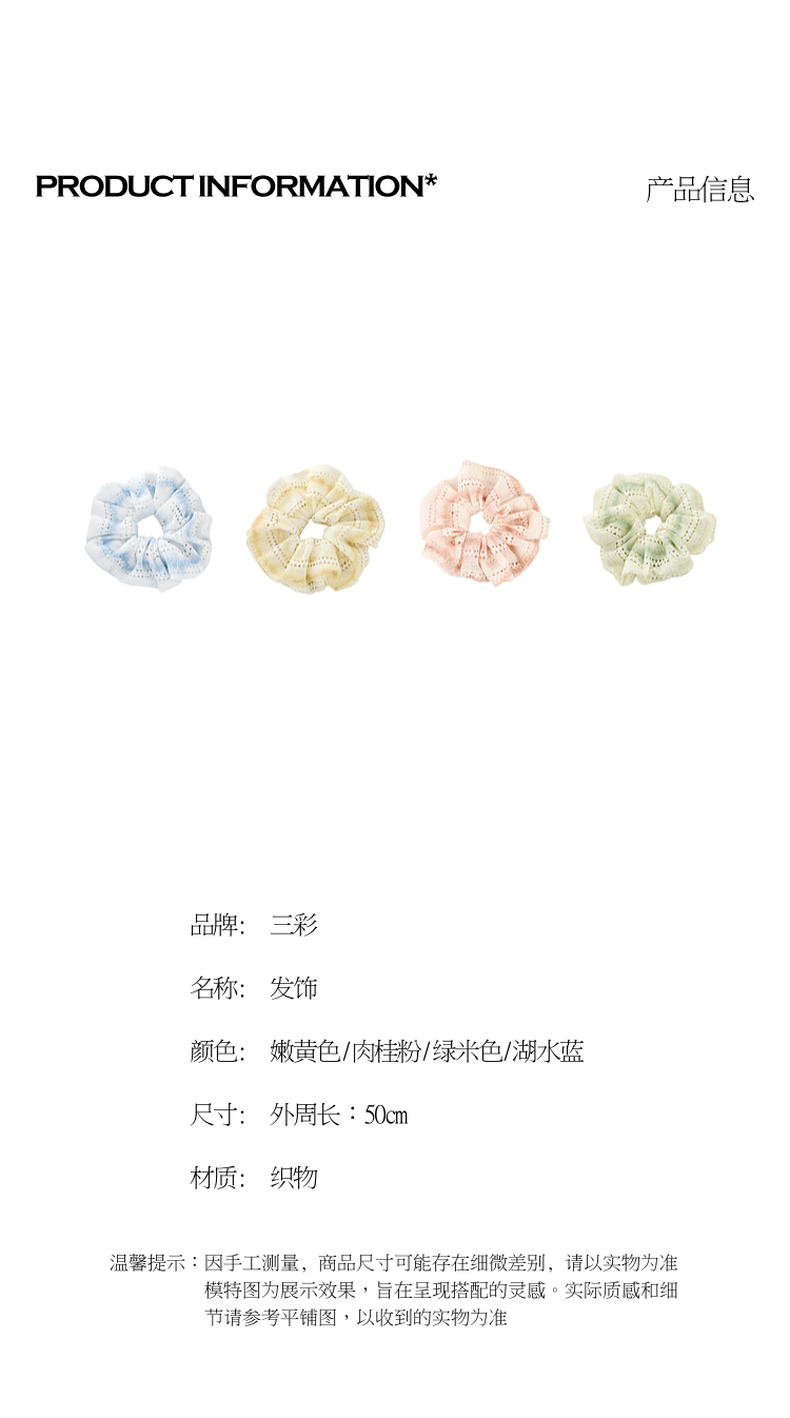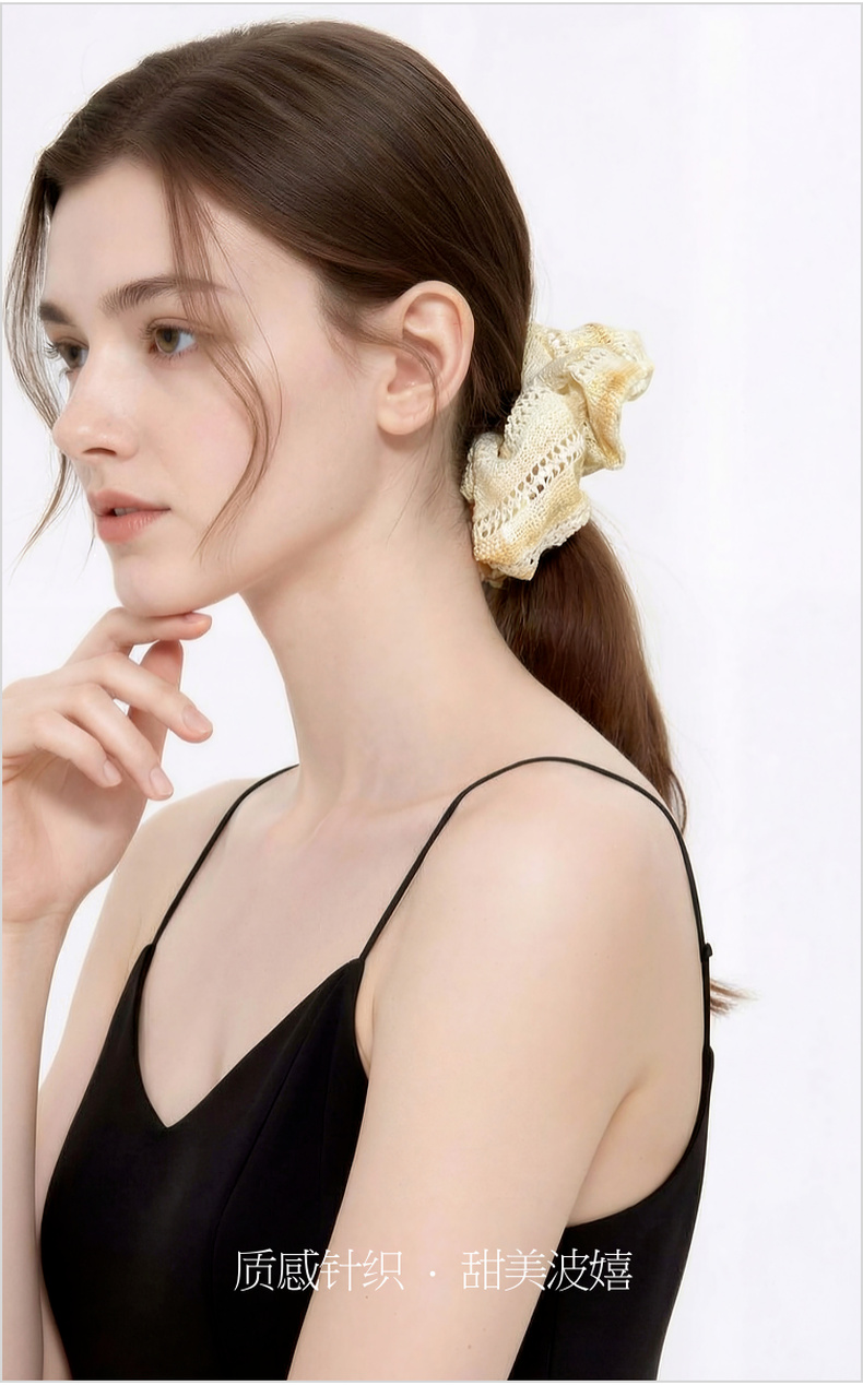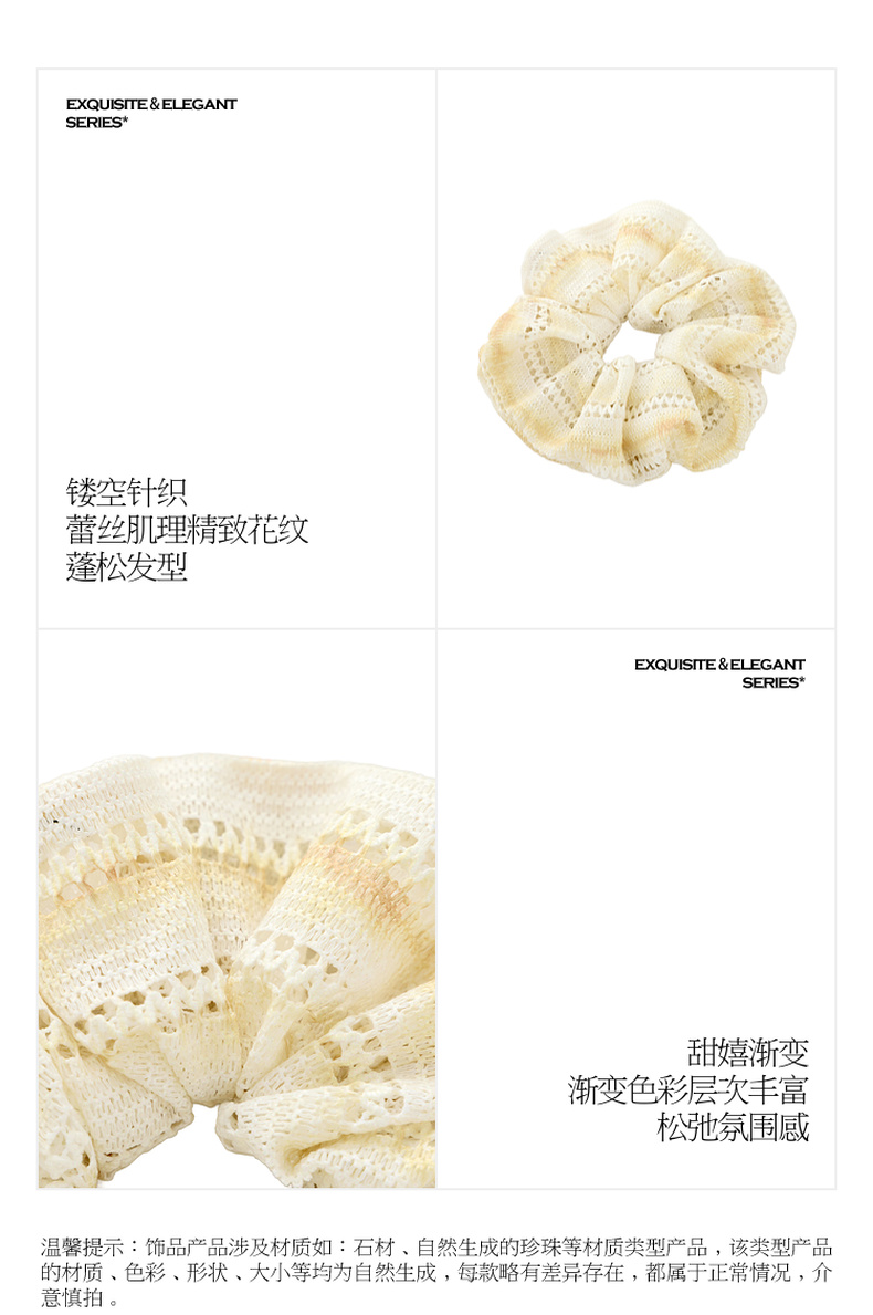 三彩2026新款波西米亚镂空针织发圈蓬松蕾丝渐变多巴胺高弹氛围感