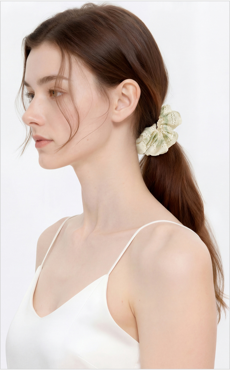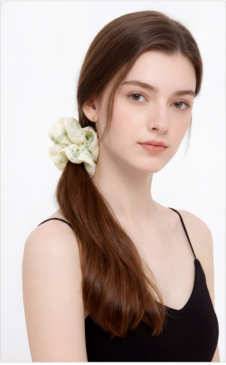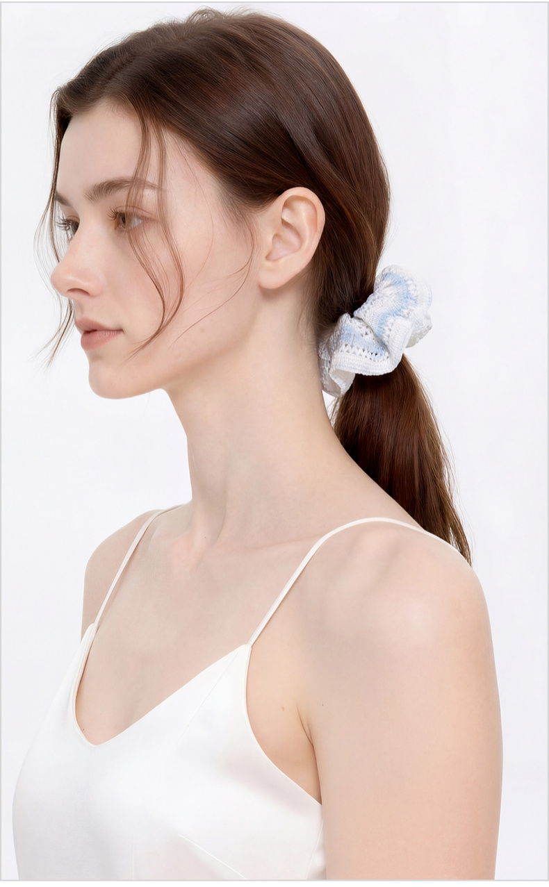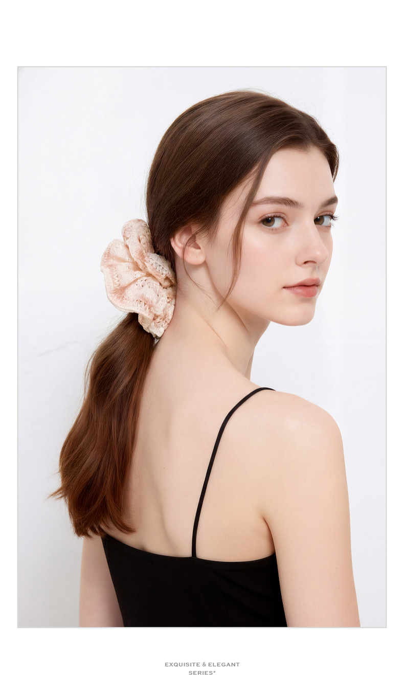 三彩2026新款波西米亚镂空针织发圈蓬松蕾丝渐变多巴胺高弹氛围感