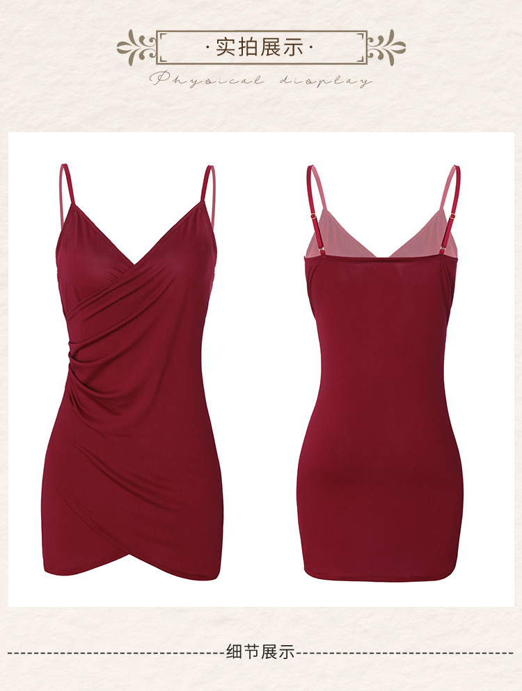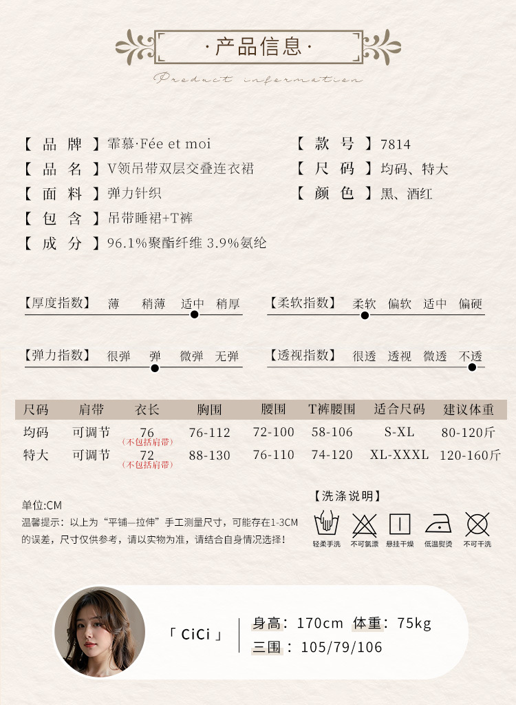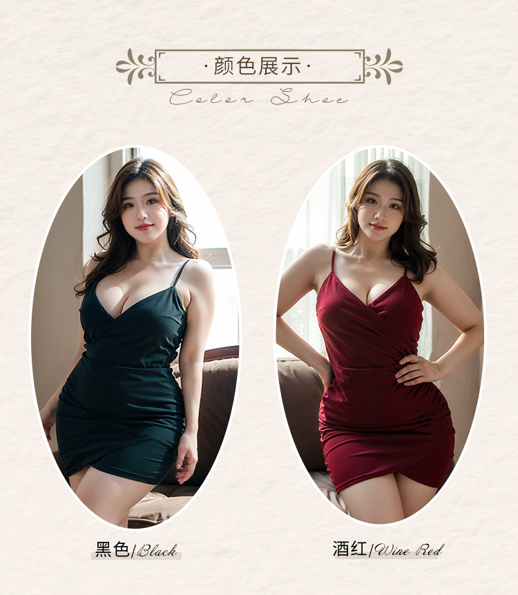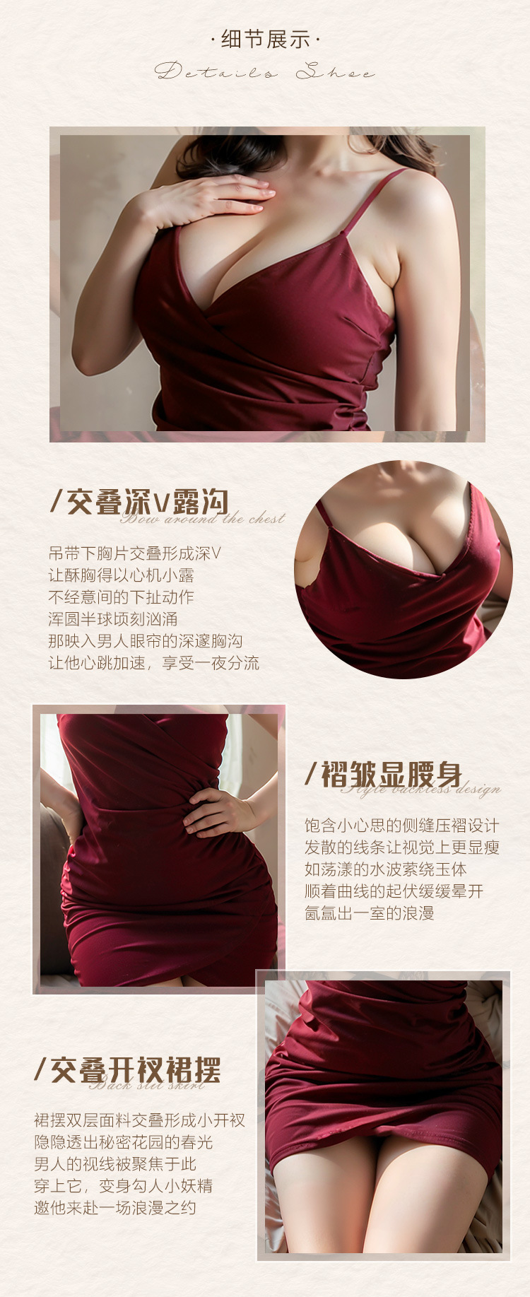 【霏慕】V领吊带双层交叠连衣裙7814情趣内衣性感露沟包臀睡衣