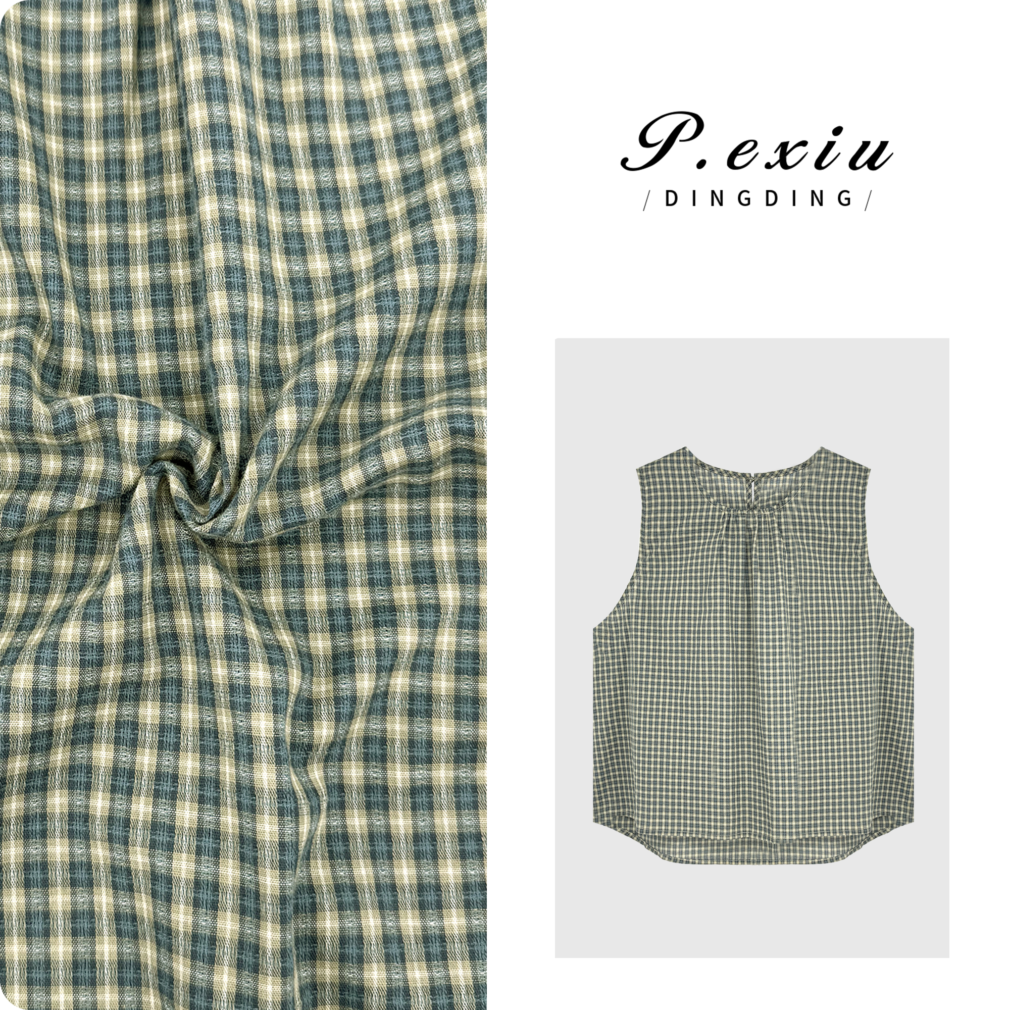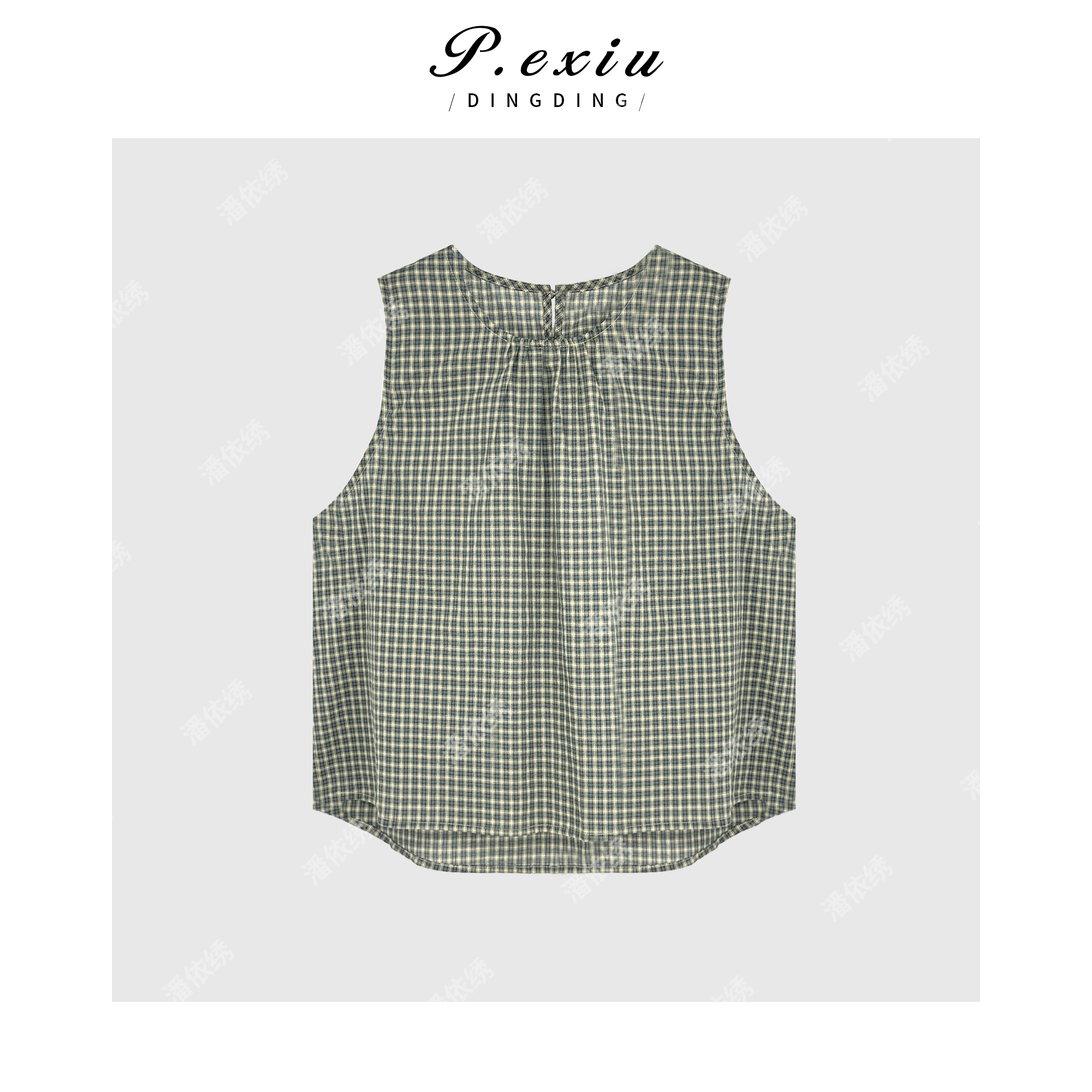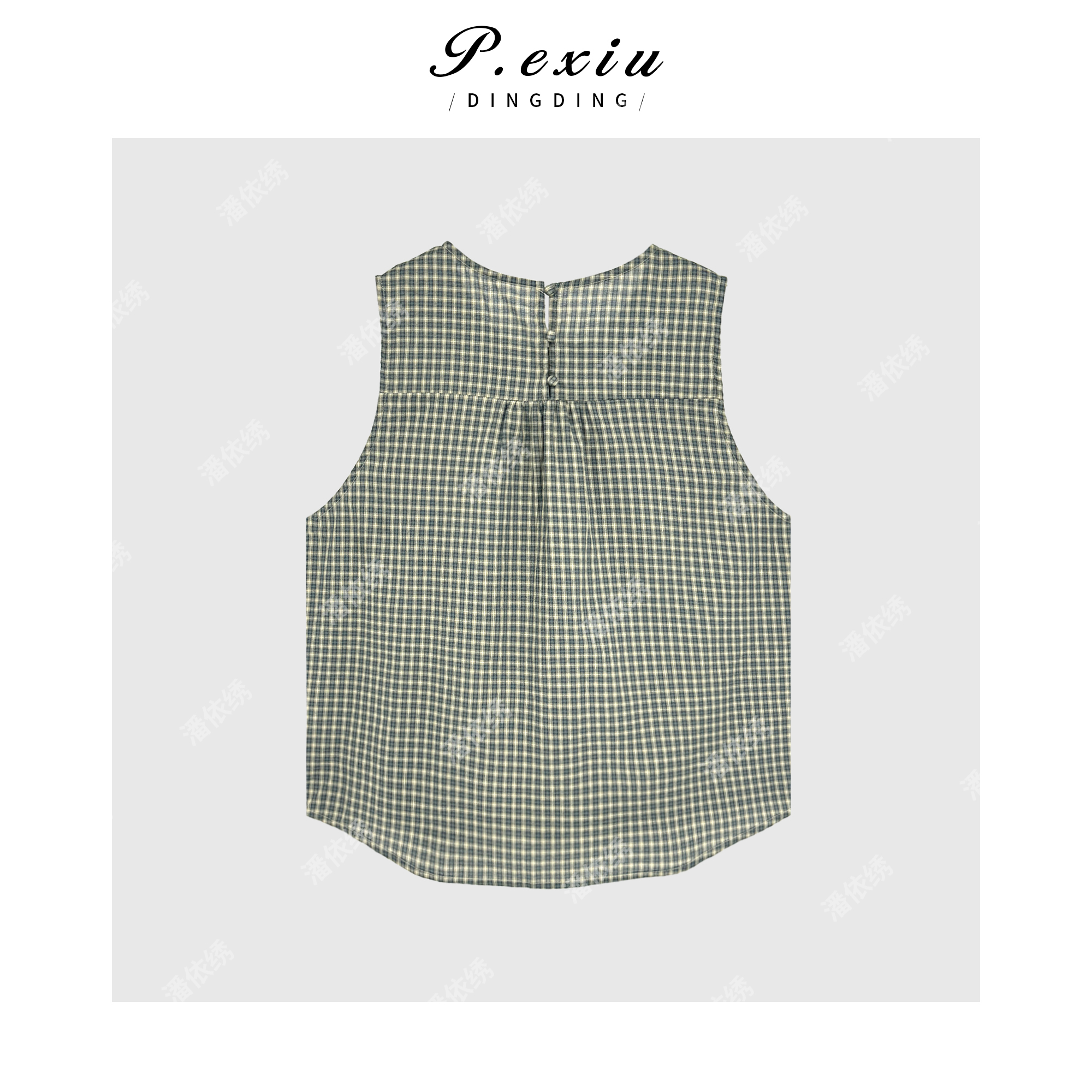 04-3潘依绣丁丁宠粉PanYiXiu/潘依绣【定格夏日】甜美风复古格子圆领无袖衬衫 SH98899