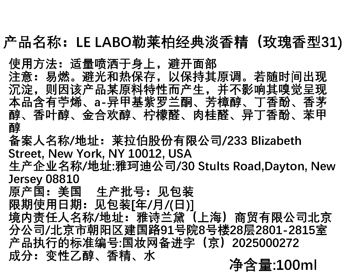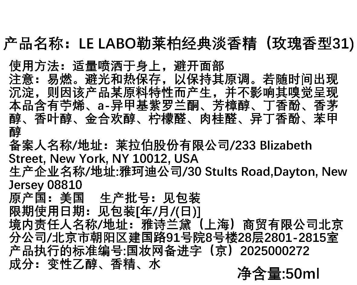 Le labo香水实验室 玫瑰31号香水