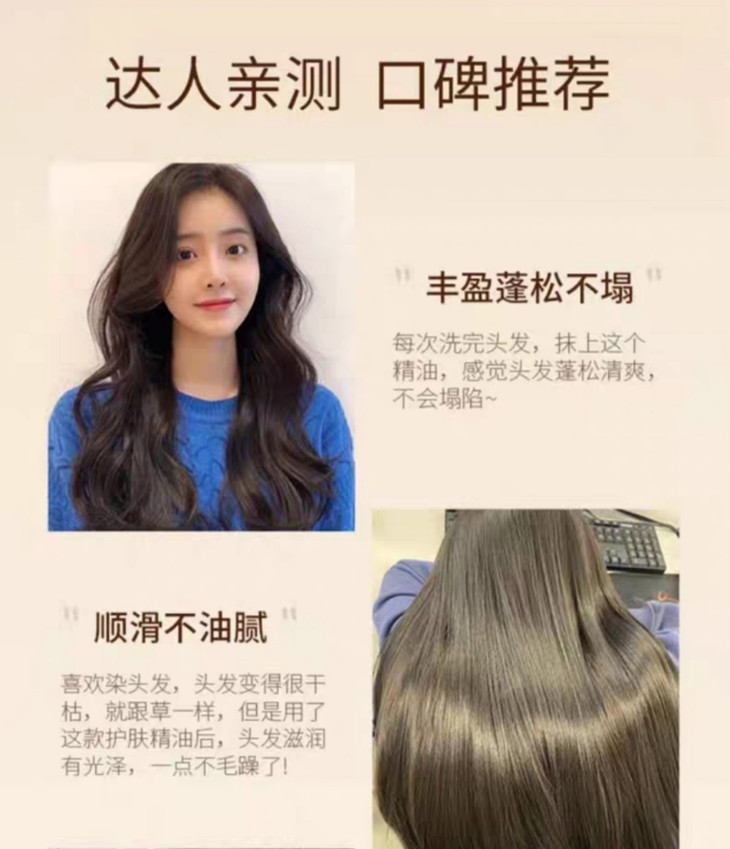 它可以干湿两用 1.洗完头发,用毛巾擦干,取适量精华涂抹在头发发梢受损部位 2.用梳子梳通头发,让精华吸收 3用吹风机吹干后,再次少量涂抹精华于发梢 这里给大家参考下不同长度头发的用量 短发:按压一下,中发:按压两下,长发:按压三下 拥有一头好的发质,也是变身氛围感美女不可少的!! 这样好用且大牌的护发精油!