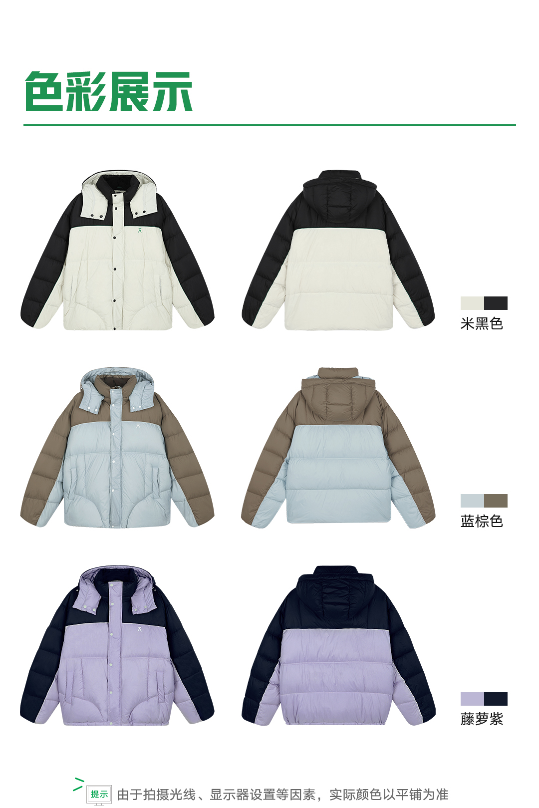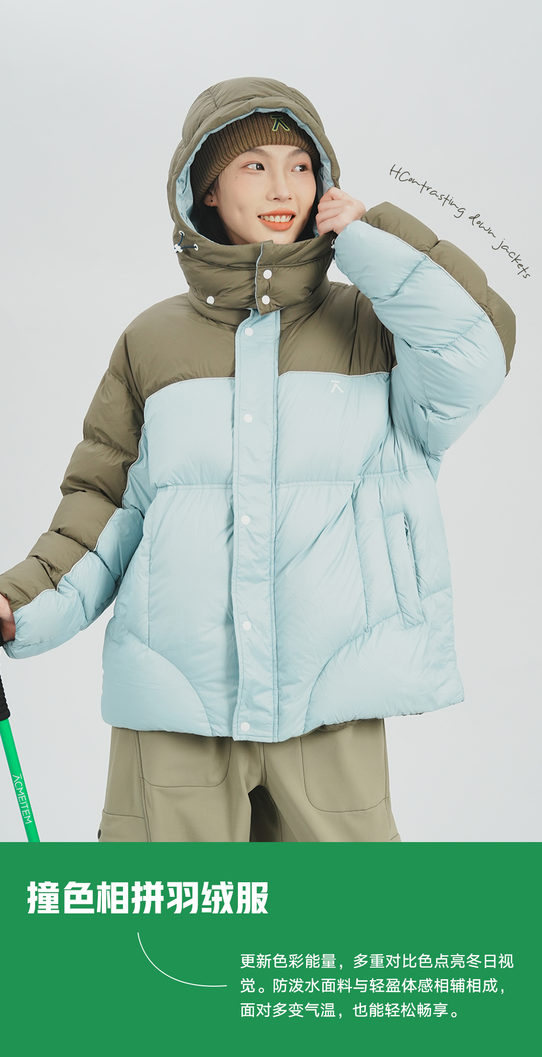 【品牌直发-降价福利】ACMEITEM爱棵米 户外撞色相拼保暖羽绒服防泼水连帽羽绒外套男女GAF3110373G