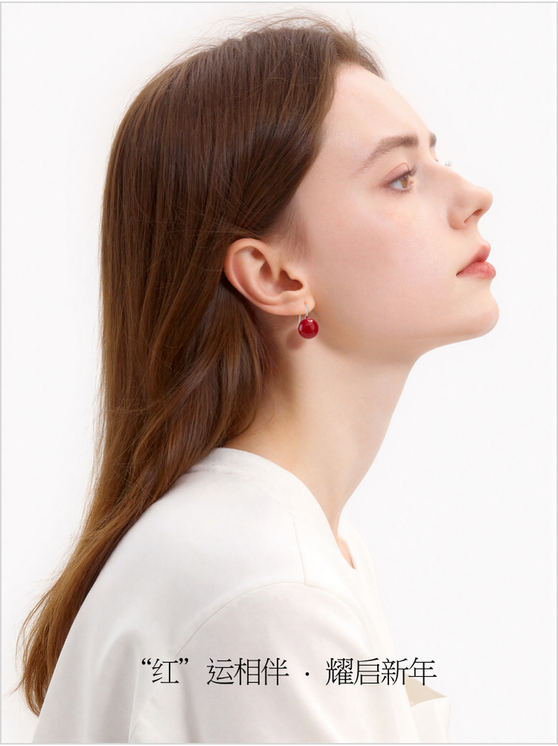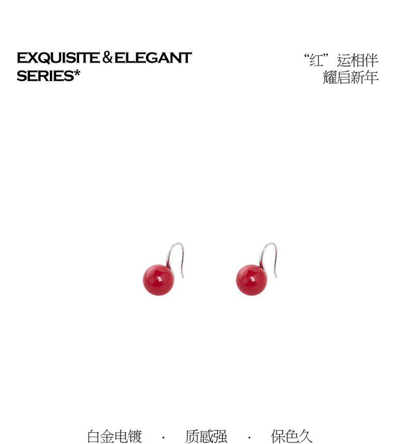 三彩2026新款新年红高跟鞋珍珠耳环甜酷国风节日氛围简约亮面约会