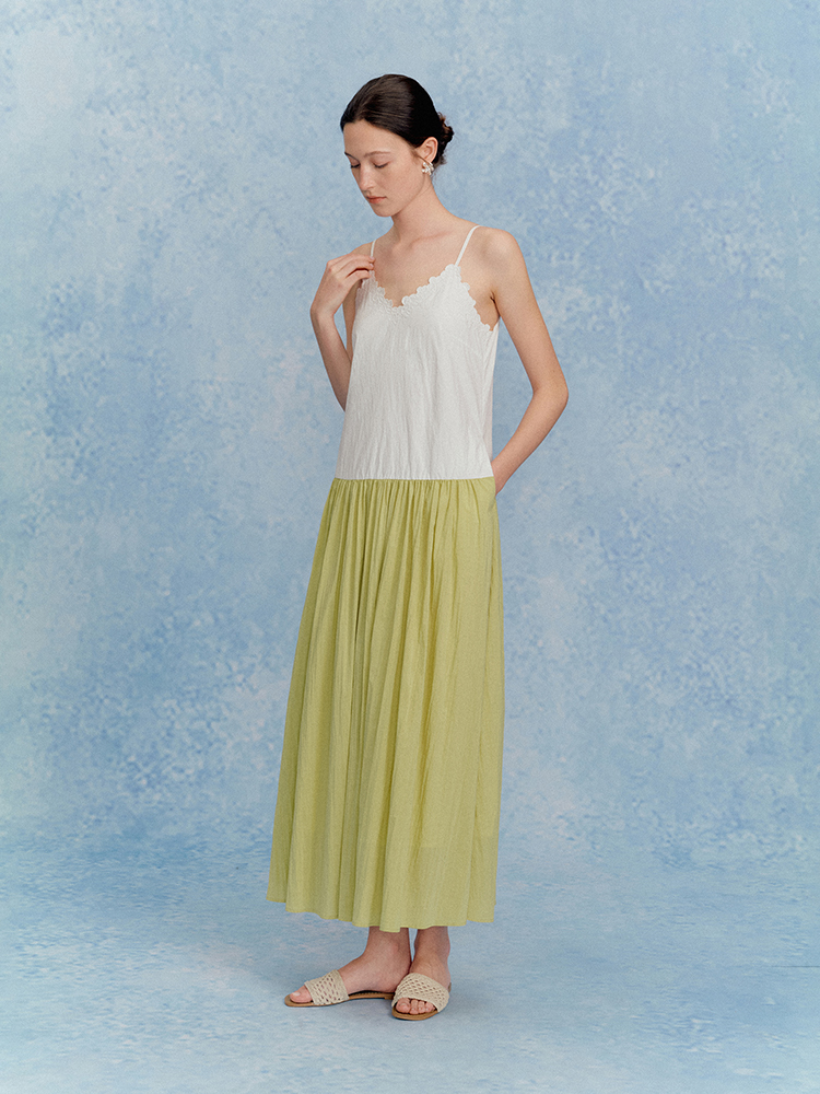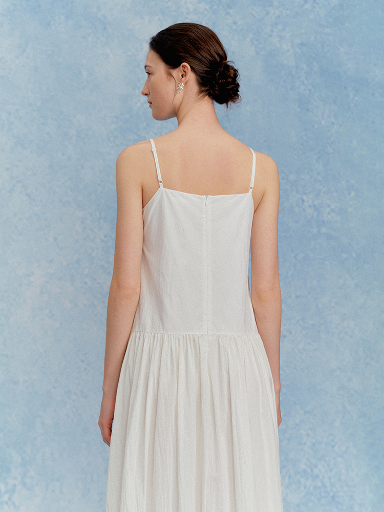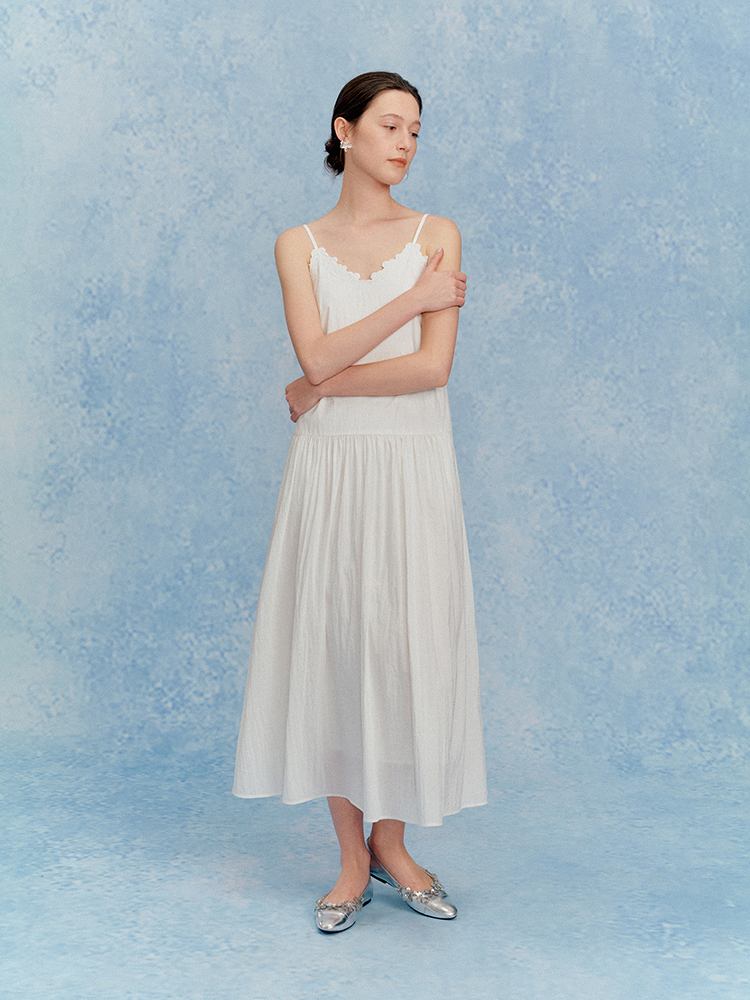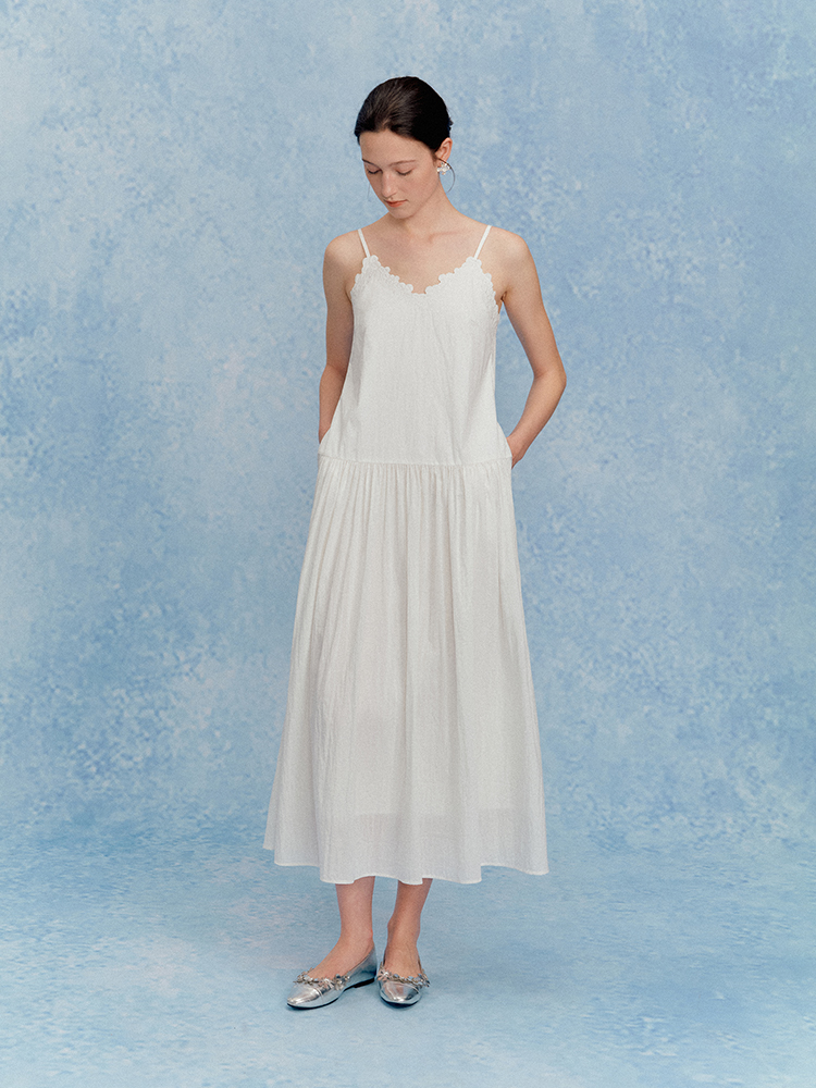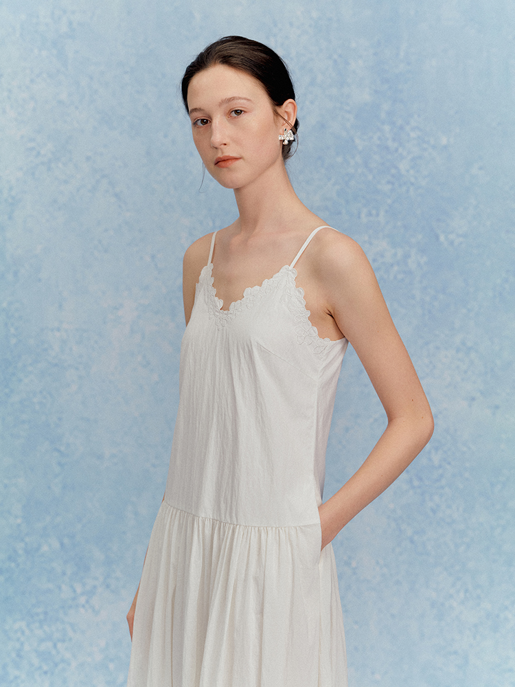 ForPoem 现货 25/SS原创设计花朵刺绣领口可调节吊带连衣长裙