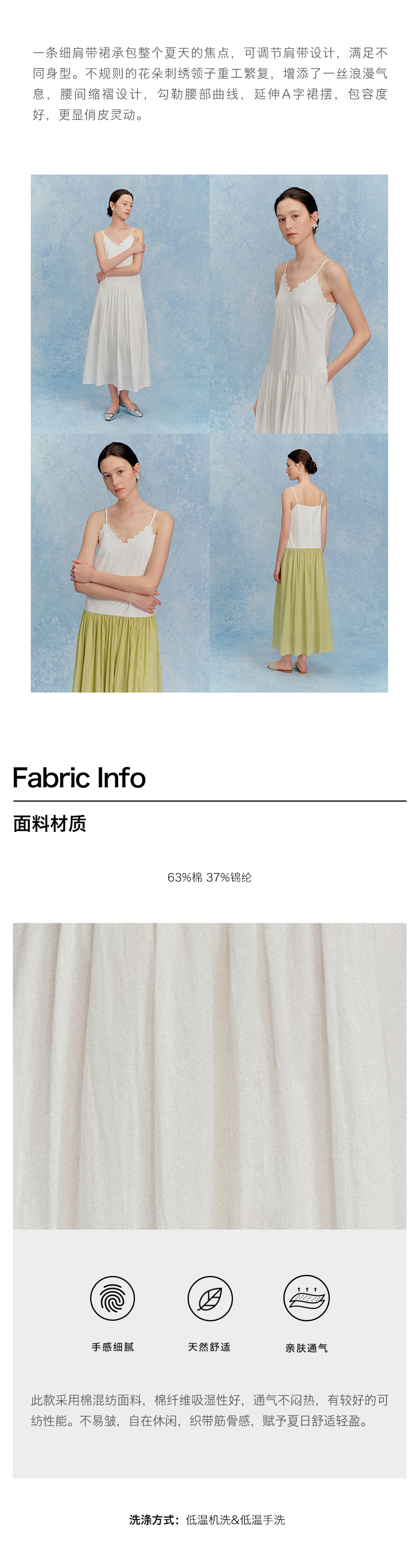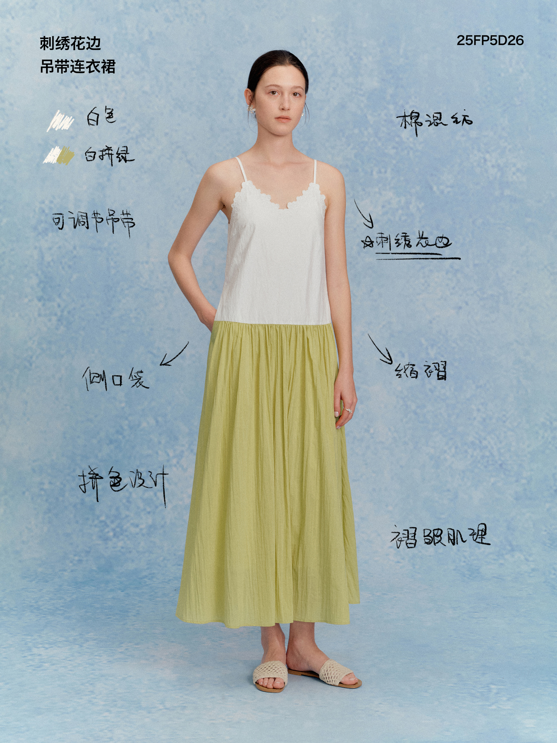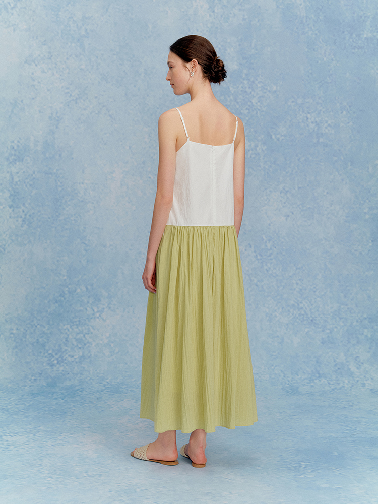 ForPoem 现货 25/SS原创设计花朵刺绣领口可调节吊带连衣长裙