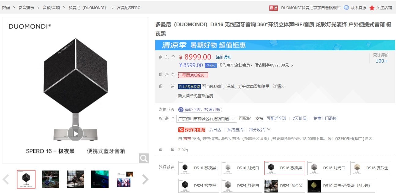 意大利 DUOMONDI多曼尼 SPERO16 无线蓝牙音响 炫彩桌面音箱