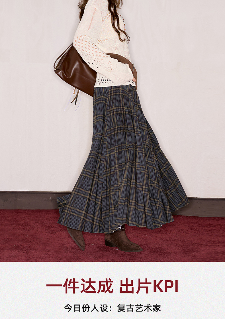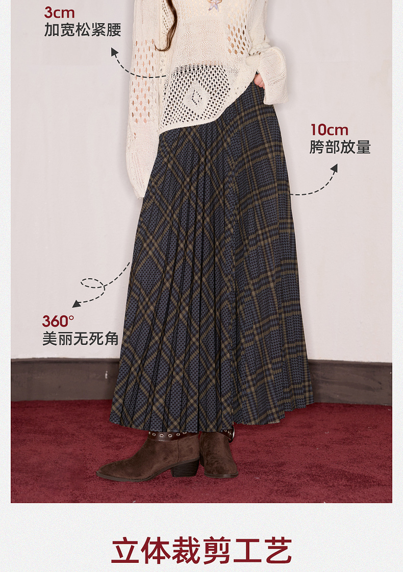 【梨形理想裙】三彩2025秋季新款格纹百褶裙半身裙A字长裙F
