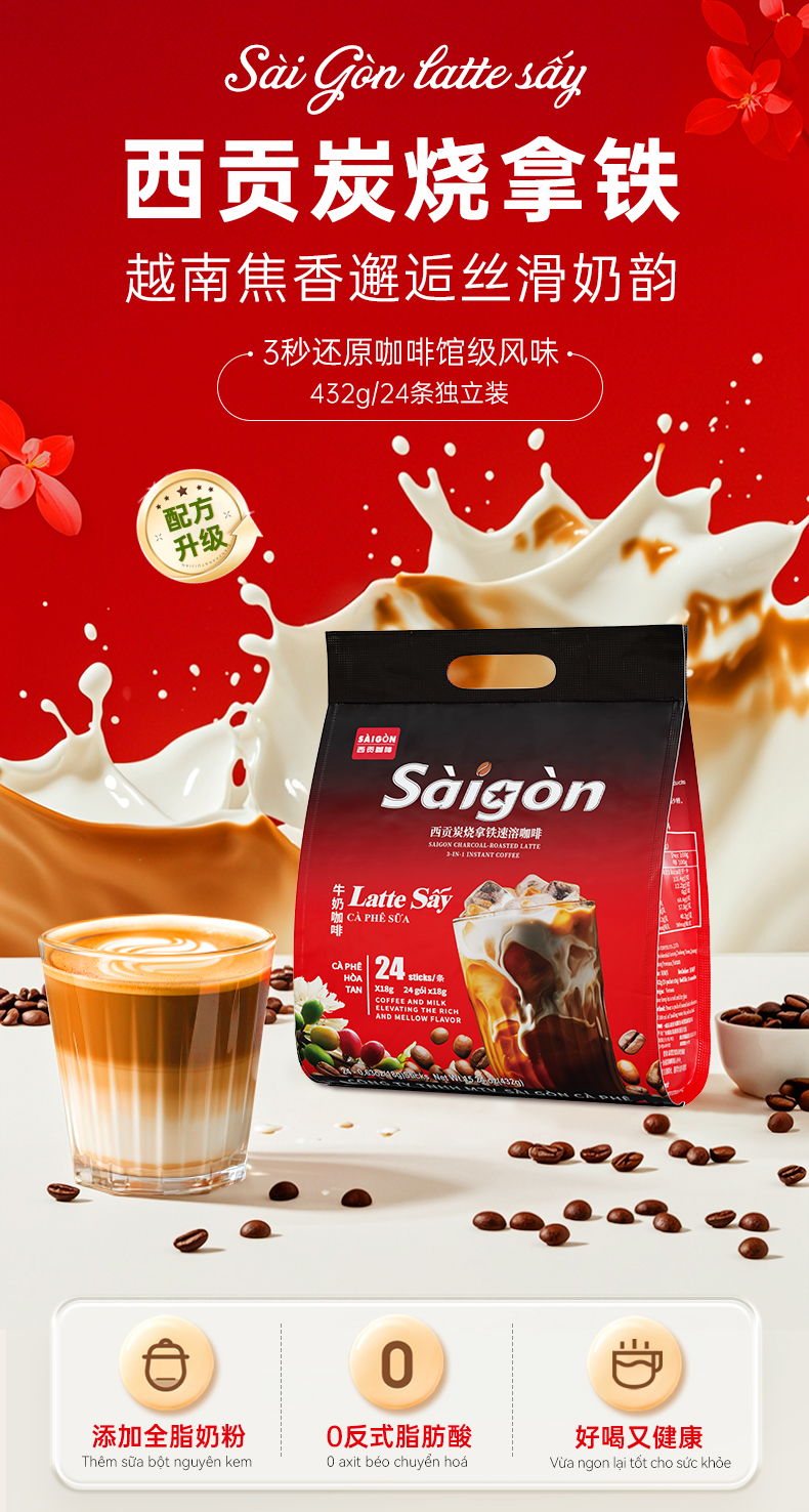 【99元选3件】炭烧拿铁咖啡牛奶速溶咖啡432克24条醇香丝滑