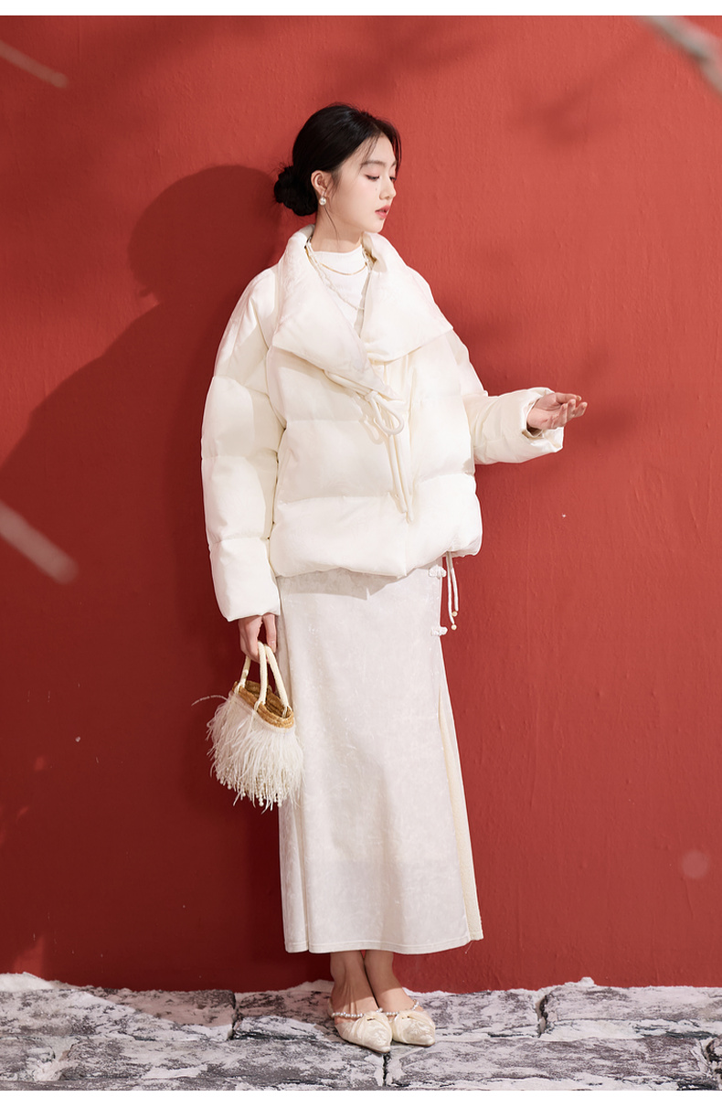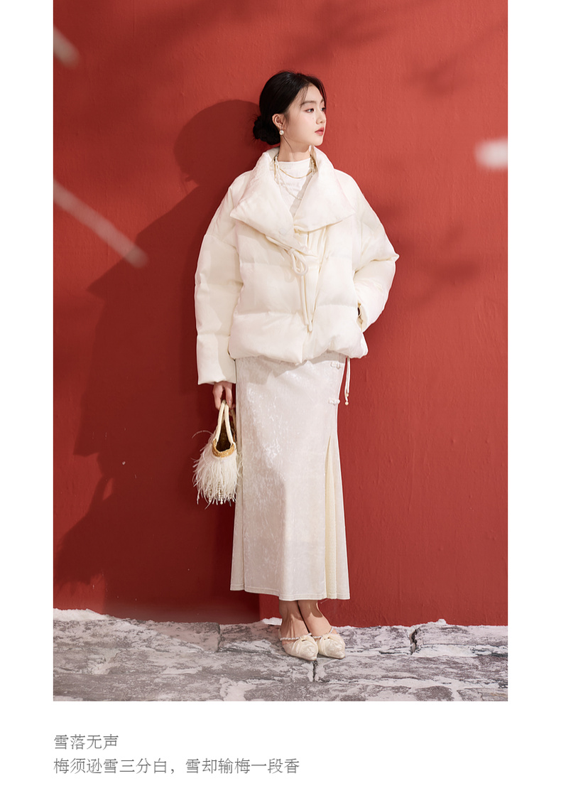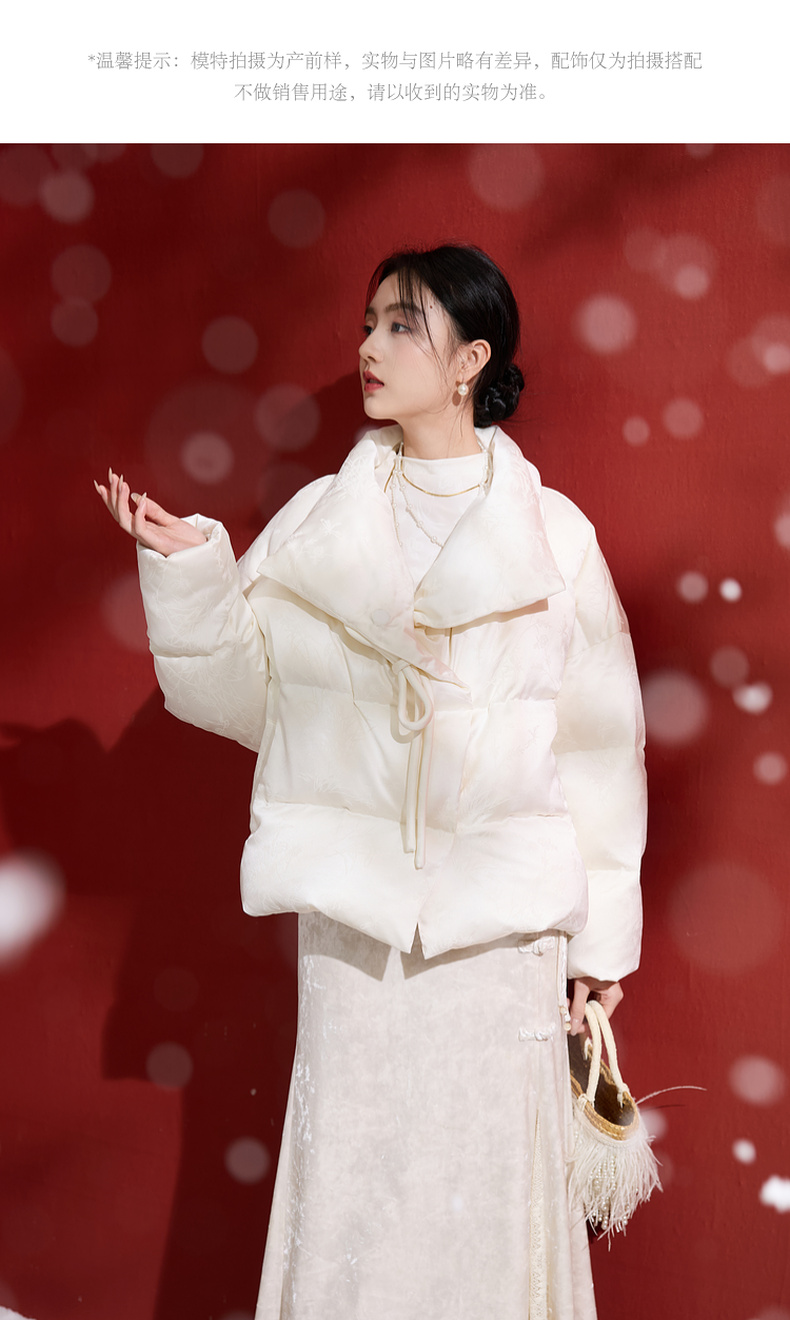 三彩【雪落无声】2025冬季新款90白鸭绒羽绒服宽松短款面包服C