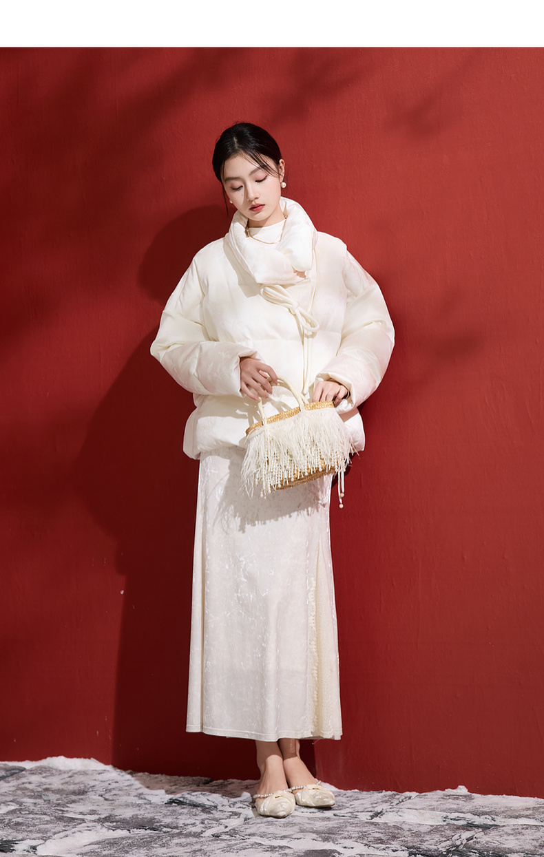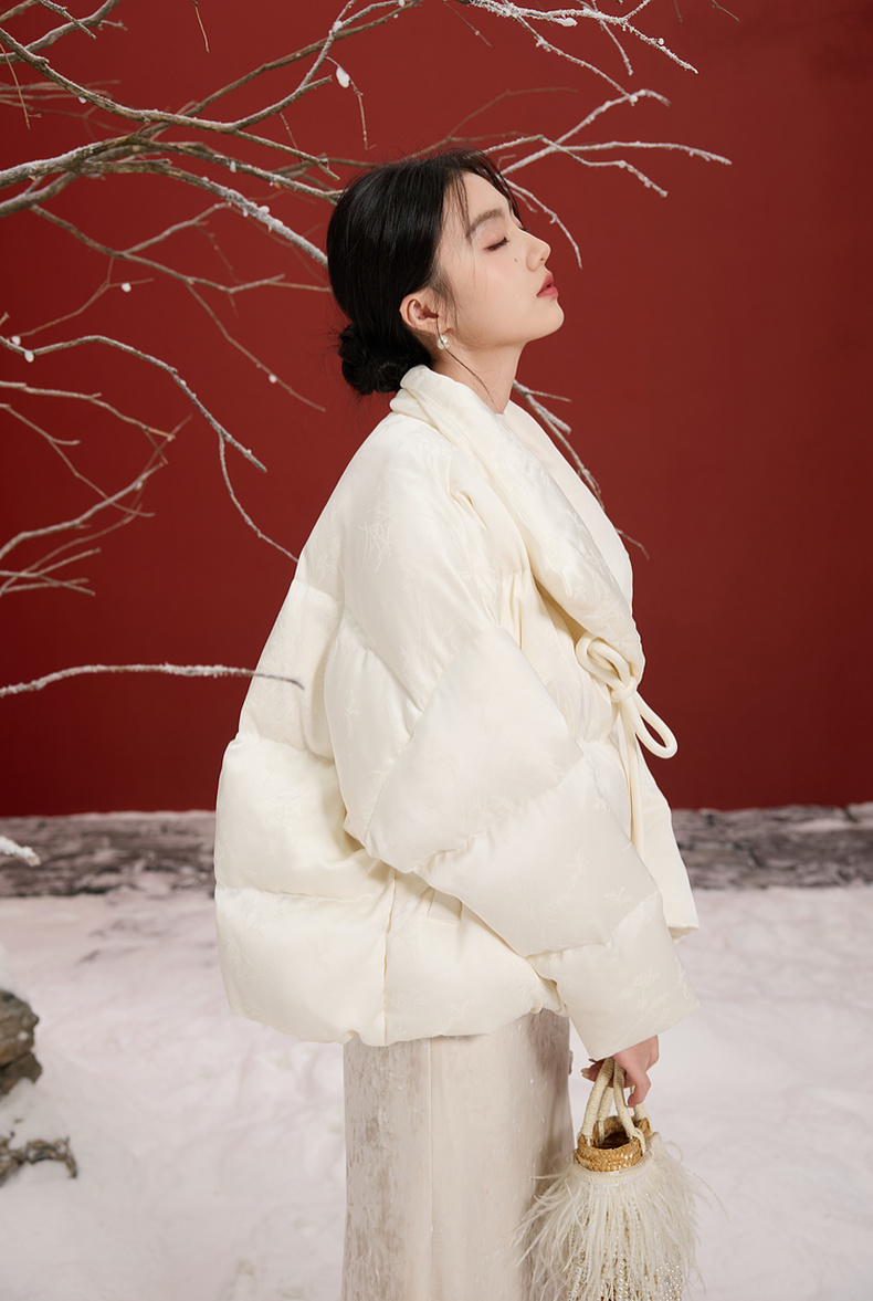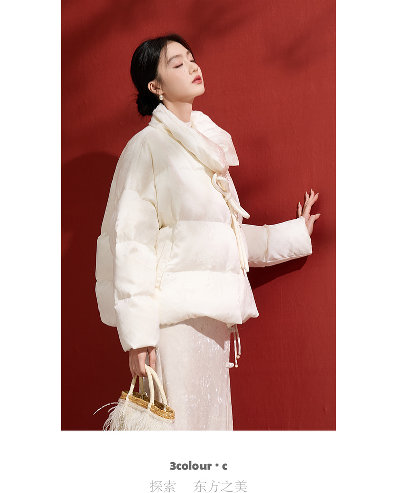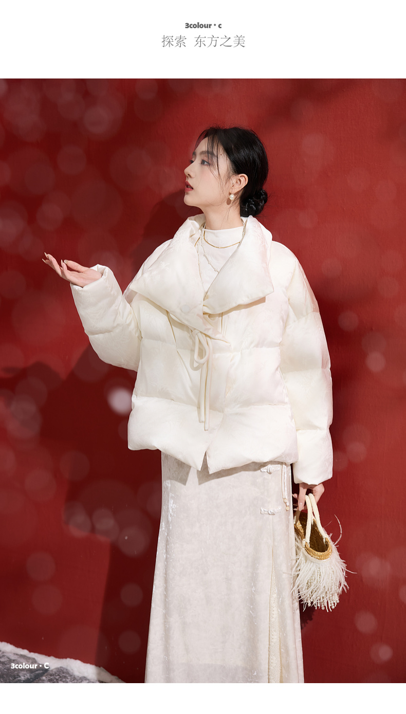 三彩【雪落无声】2025冬季新款90白鸭绒羽绒服宽松短款面包服C