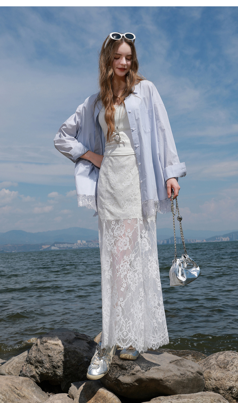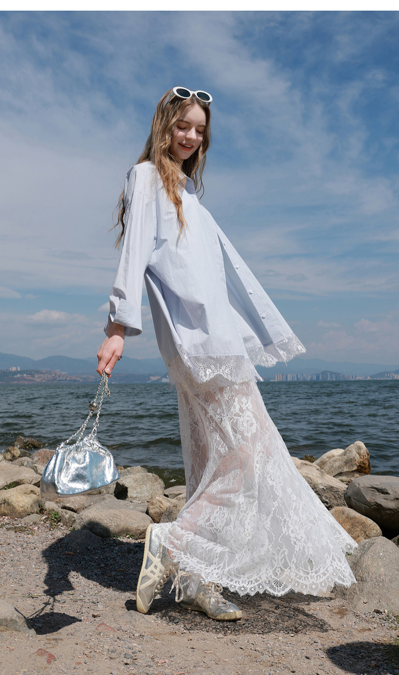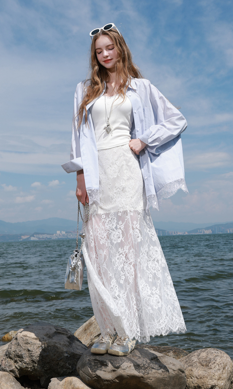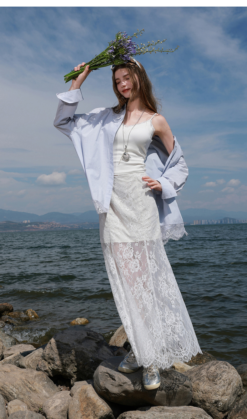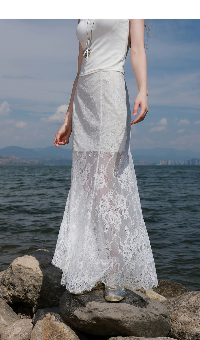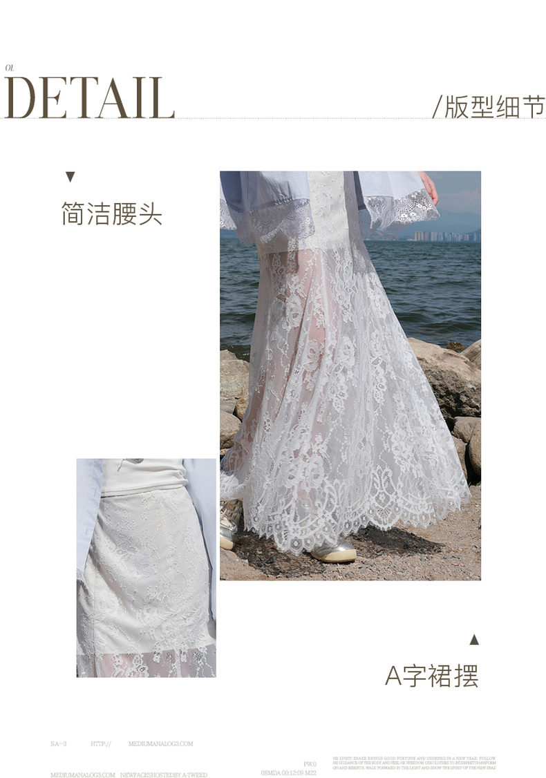 三彩2025秋季新款蕾丝半身裙浪漫长裙A字裙浪漫仙气M