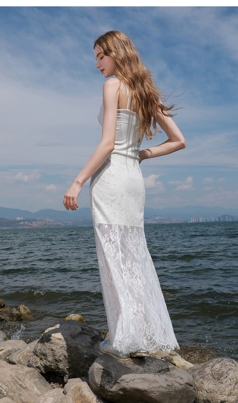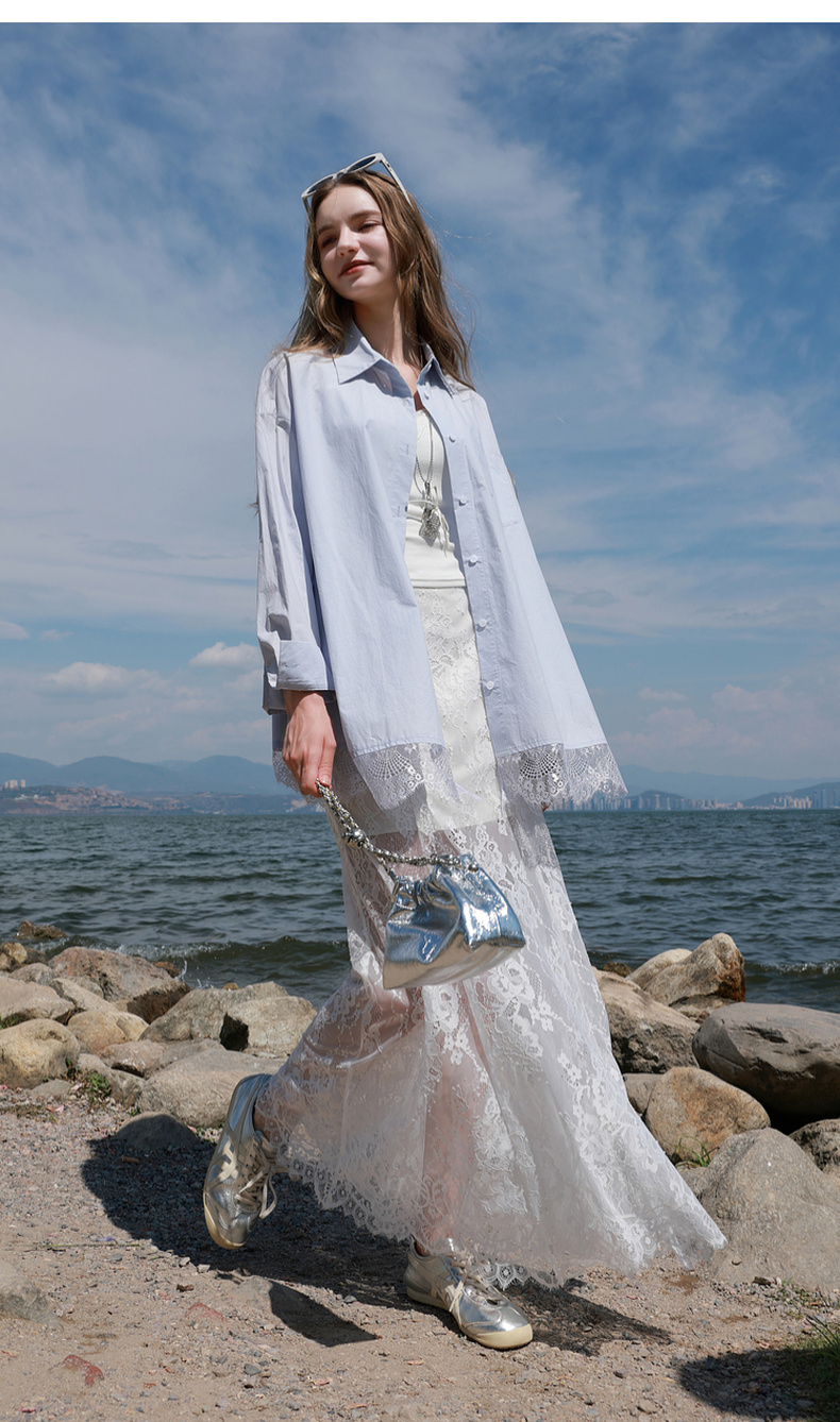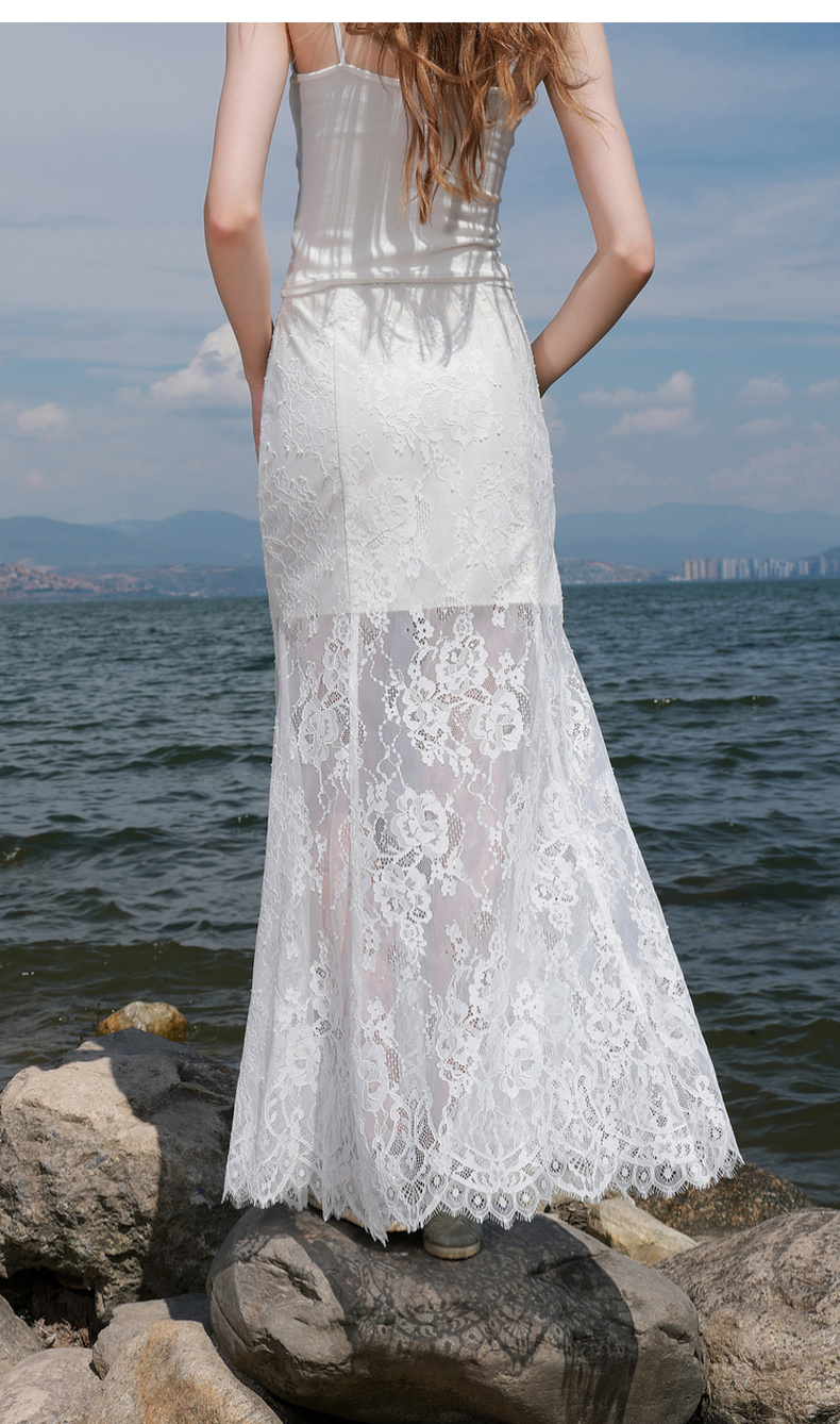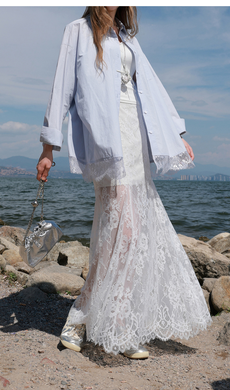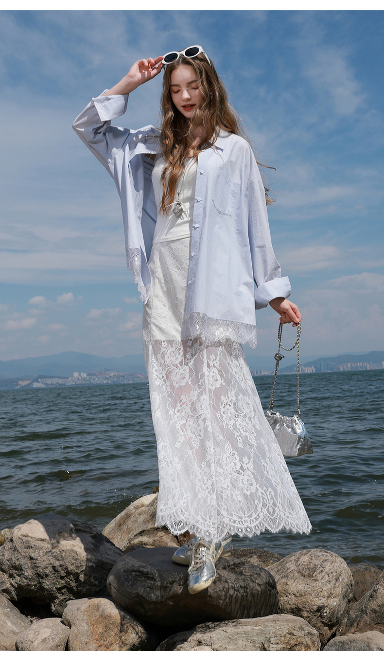 三彩2025秋季新款蕾丝半身裙浪漫长裙A字裙浪漫仙气M