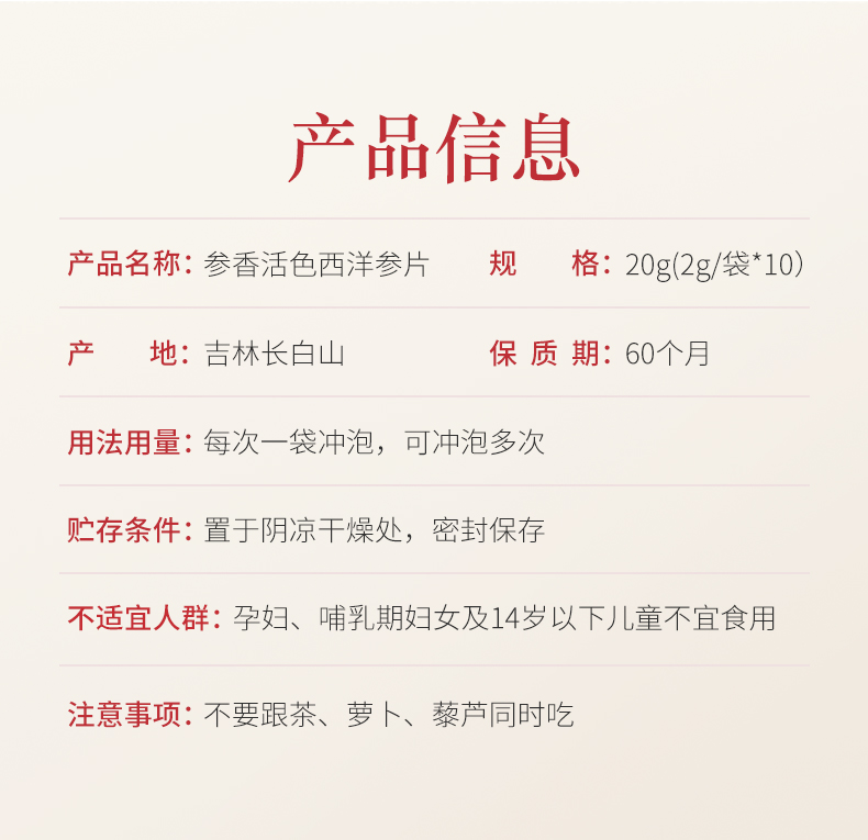 参香活色西洋参圆片 20g (2g/袋*10袋/盒)