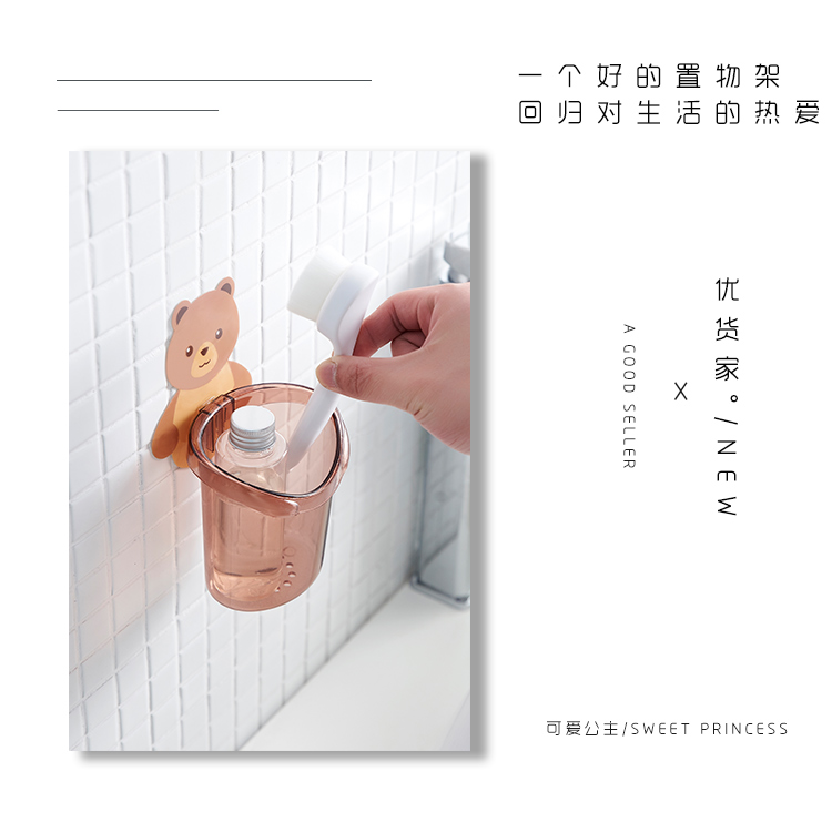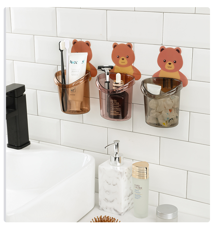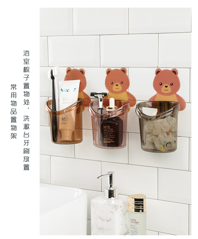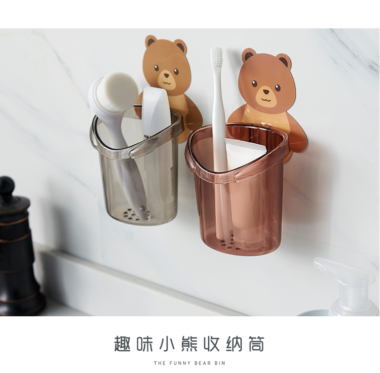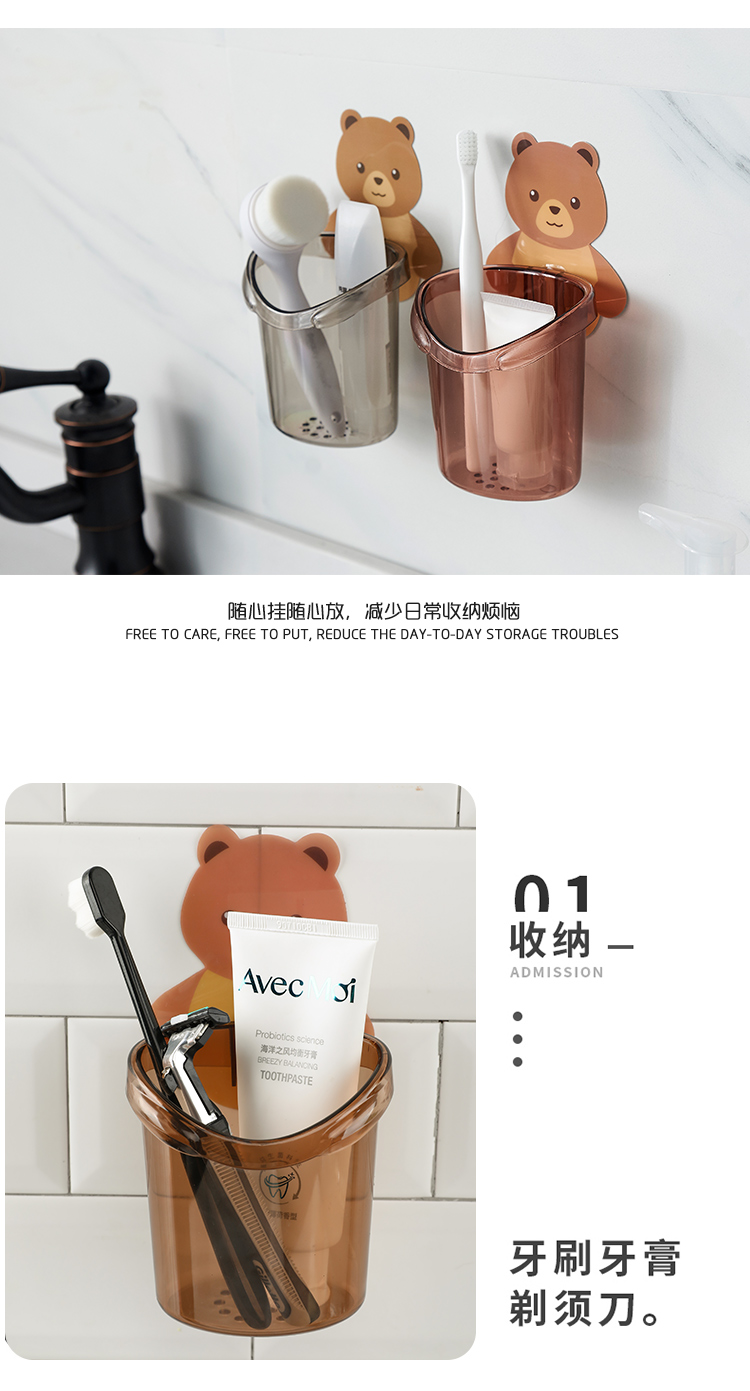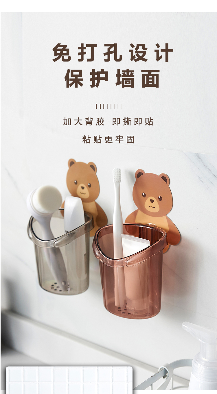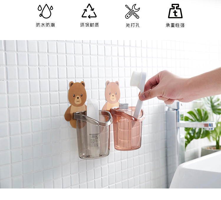 小熊牙刷置物架卫生间贴墙壁挂卡通墙上收纳牙杯简易简约xx34
