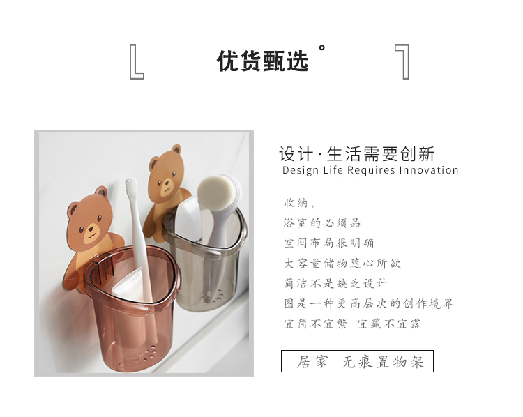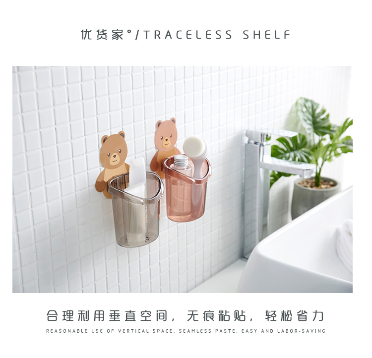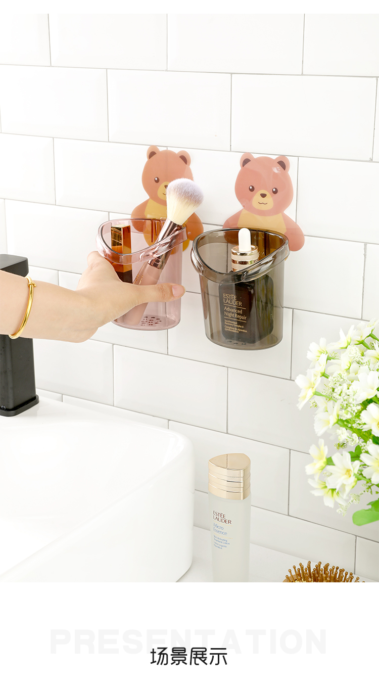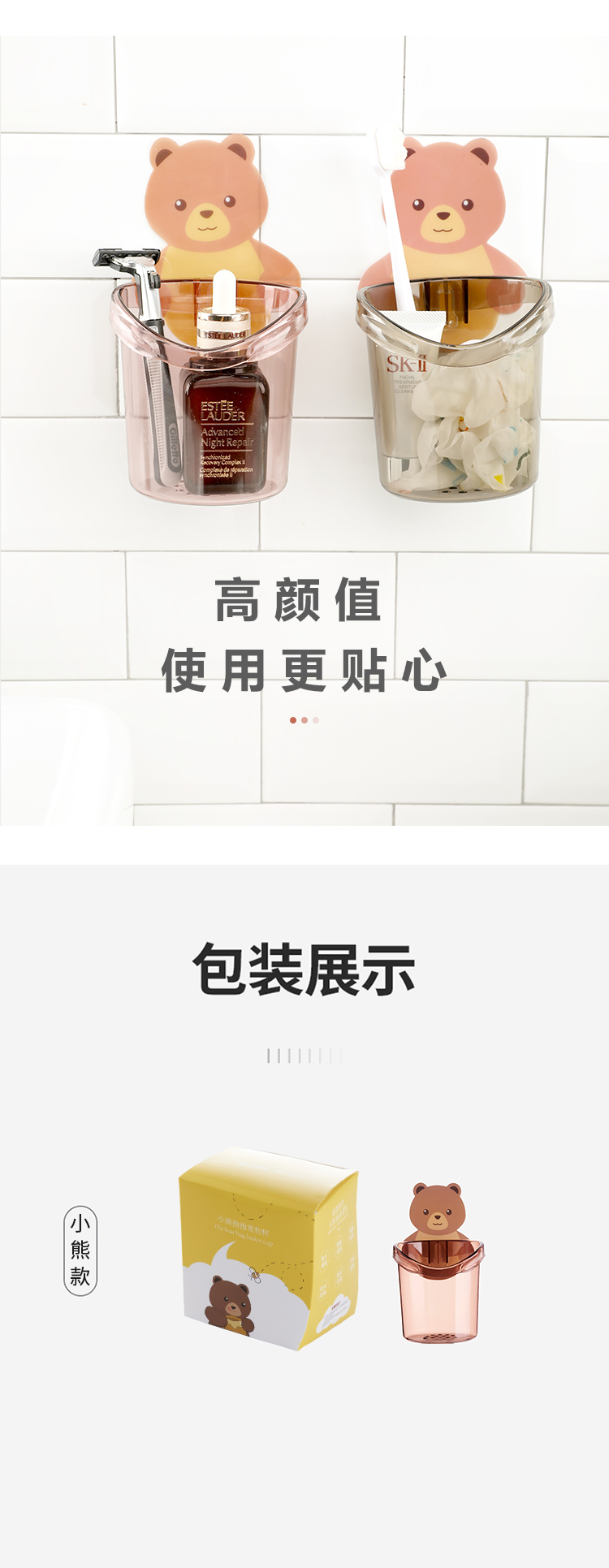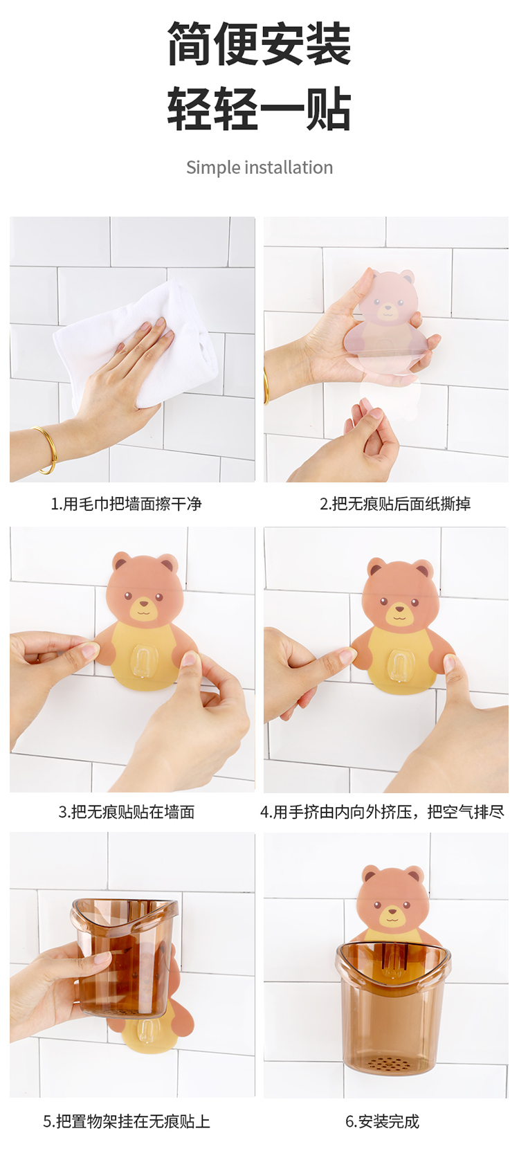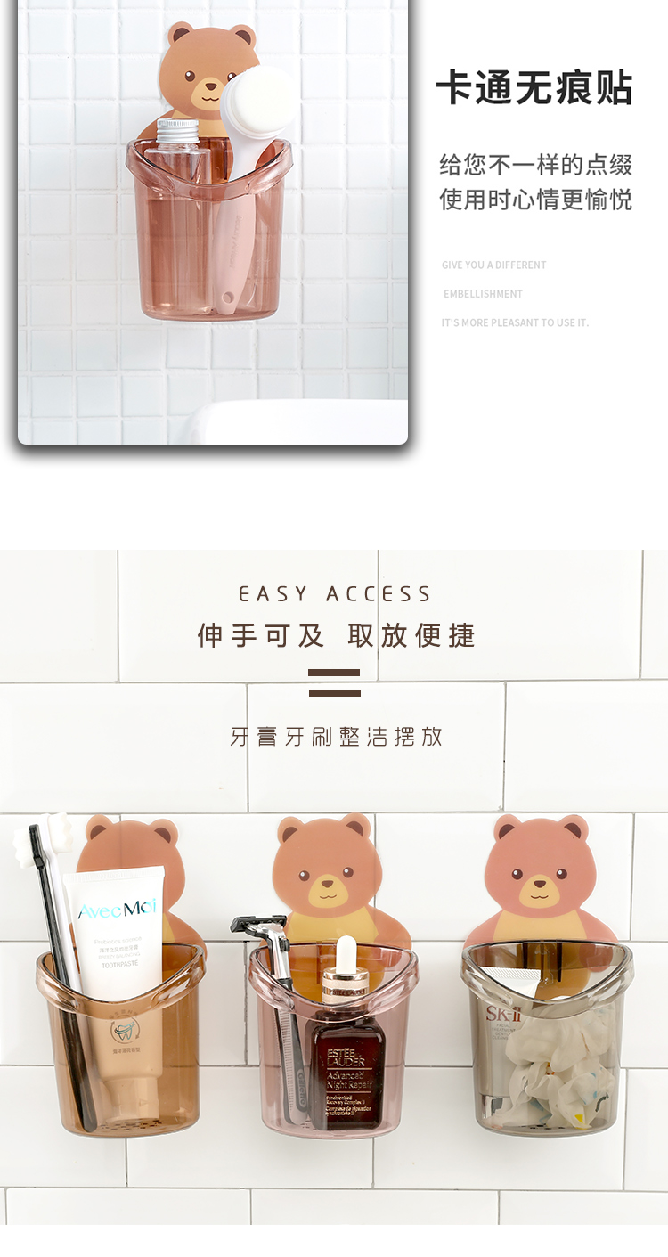 小熊牙刷置物架卫生间贴墙壁挂卡通墙上收纳牙杯简易简约xx34