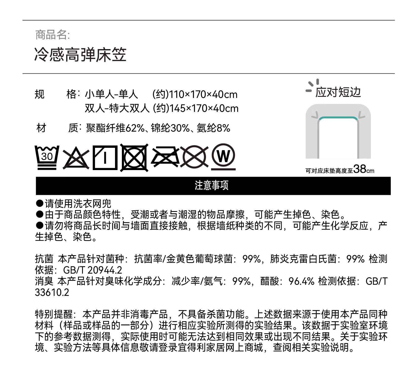 NITORI宜得利家居 夏季床上用品凉感床单冷感高弹力床笠席梦思保护套