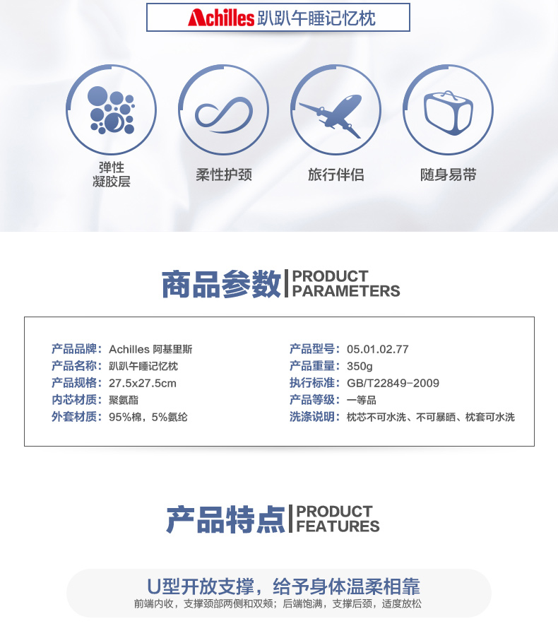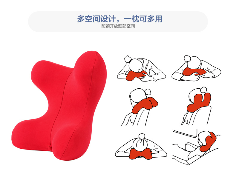 阿基里斯(Achilles) 多睡姿午睡趴趴枕头慢回弹护颈办公室午睡枕旅行多用枕 看剧神器 红色