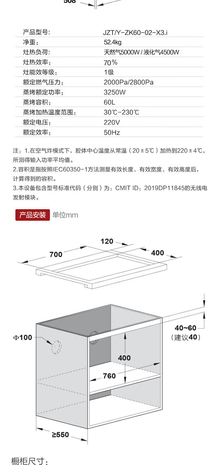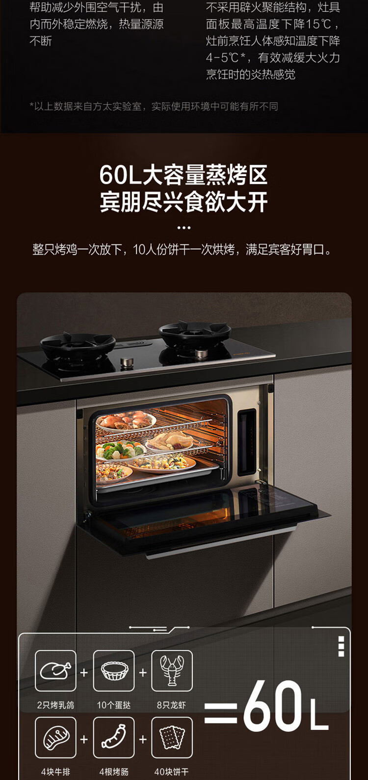 方太/蒸烤一体机机/ZK60-02-X3.i/集成烹饪中心分体式集成灶蒸烤一体机烹饪机 60L大容量 5kw*火力 灶蒸烤一体机