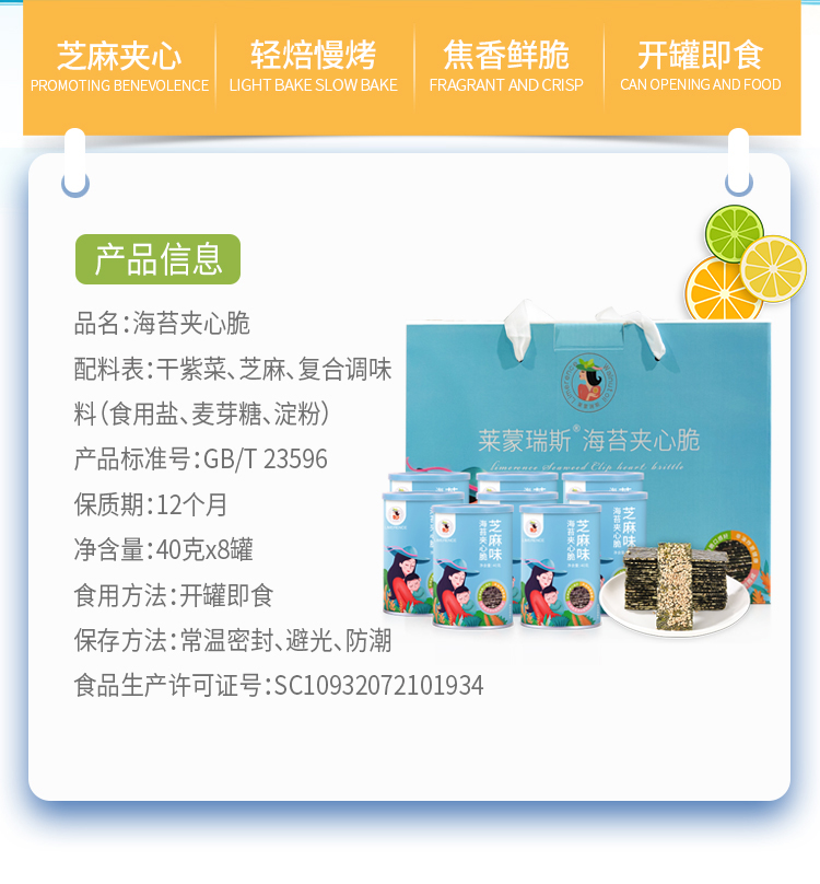 【莱蒙瑞斯】芝麻海苔夹心脆 非油炸即食海苔片 营养海味小零食小吃休闲食品