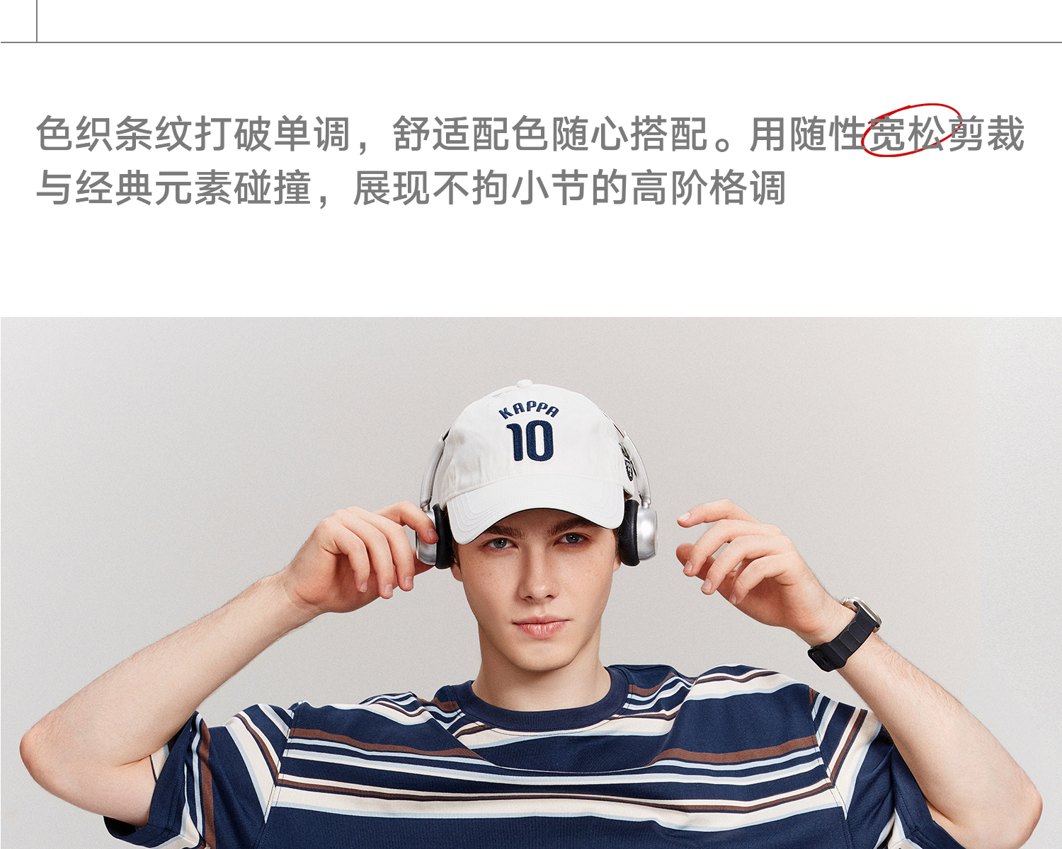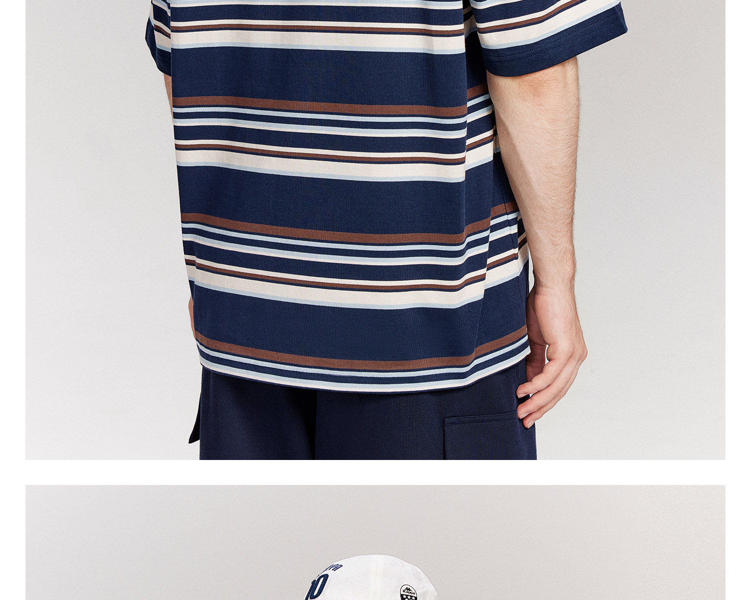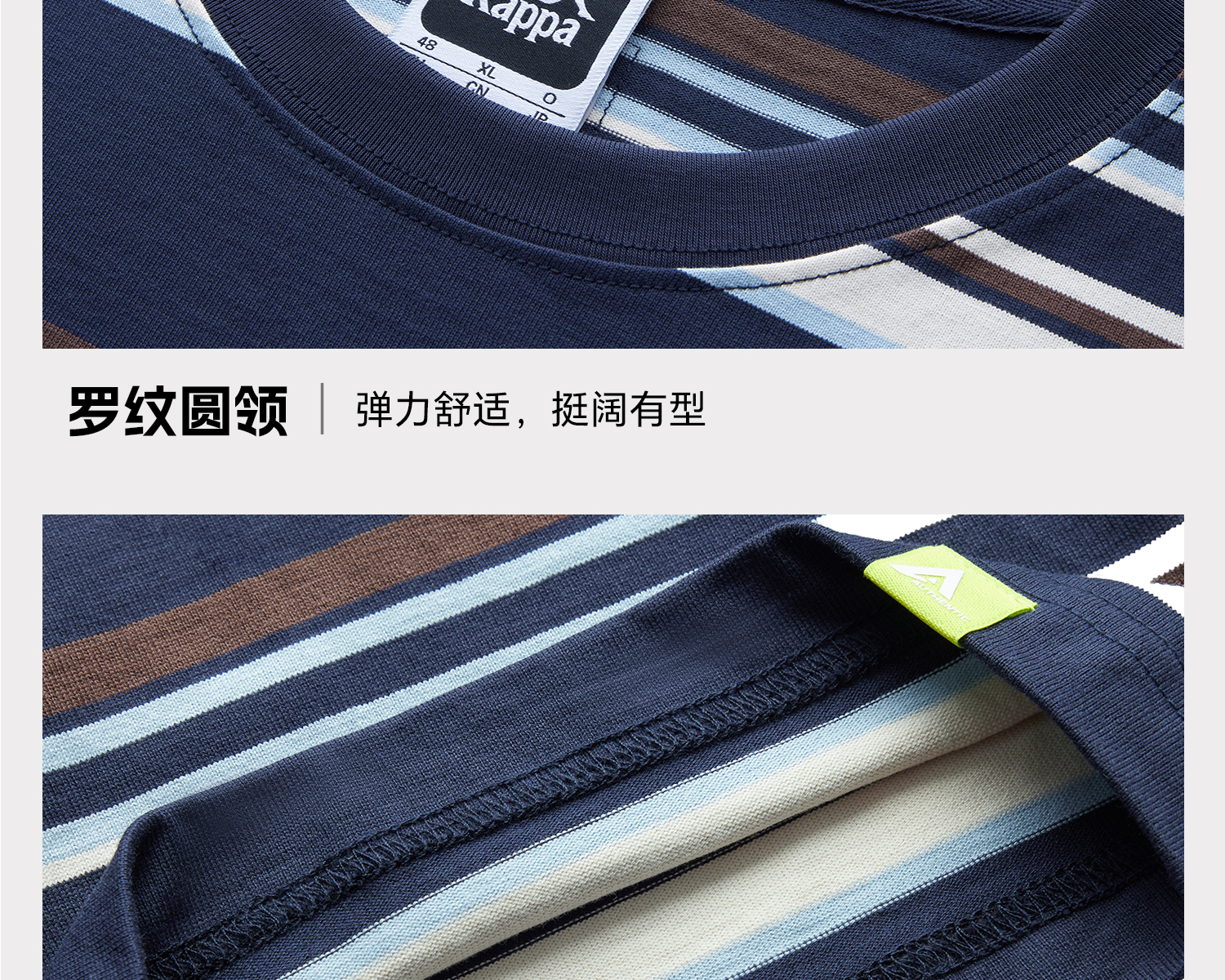Kappa卡帕背靠背运动t恤男款2025新款夏季条纹短袖纯棉刺绣上衣女K0F52TD71