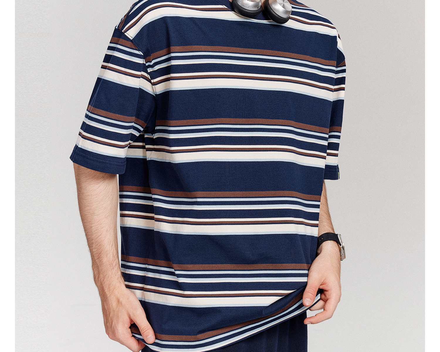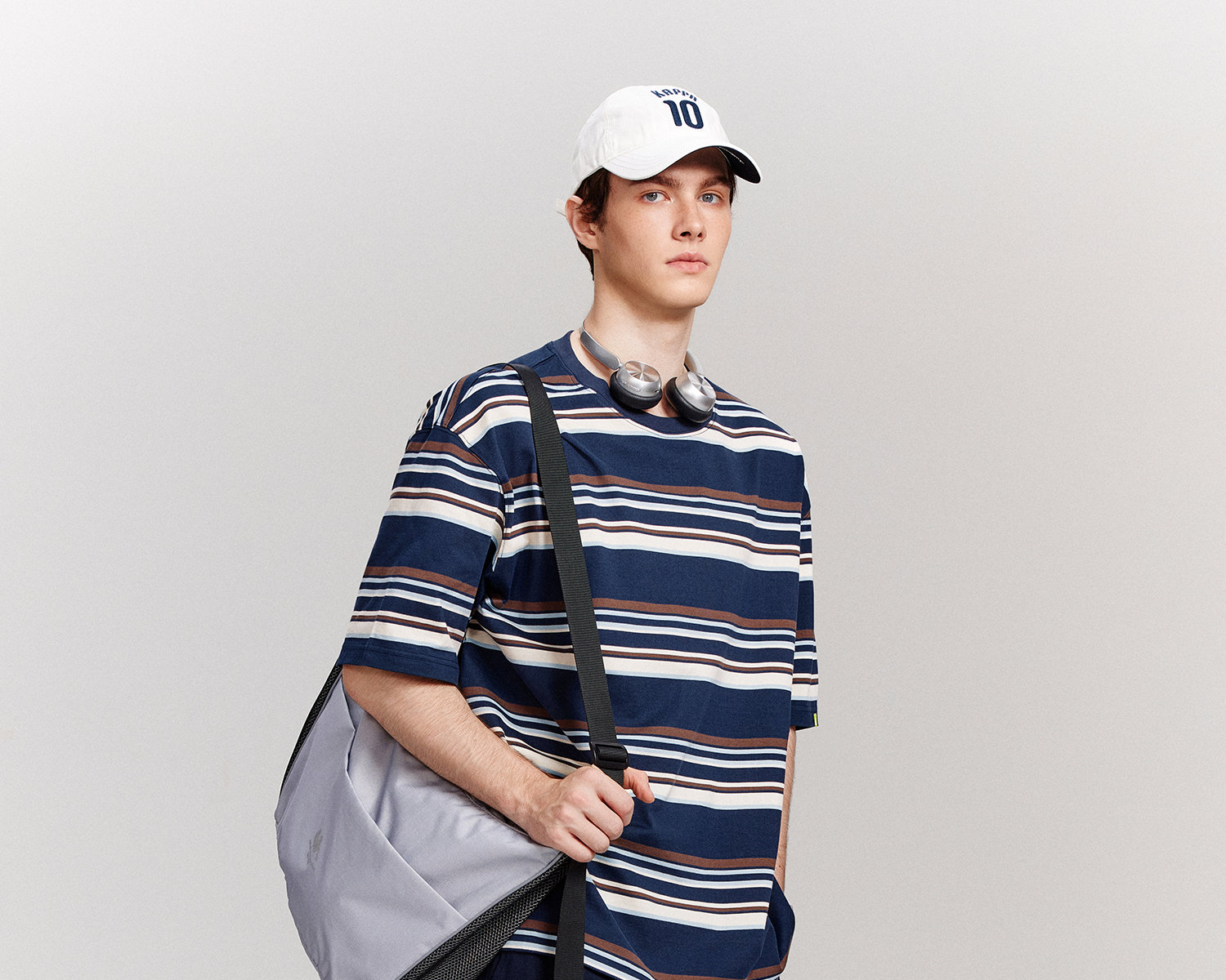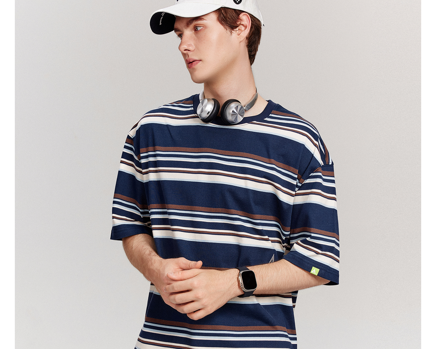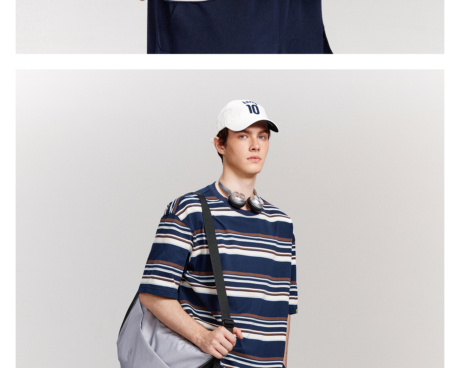 Kappa卡帕背靠背运动t恤男款2025新款夏季条纹短袖纯棉刺绣上衣女K0F52TD71