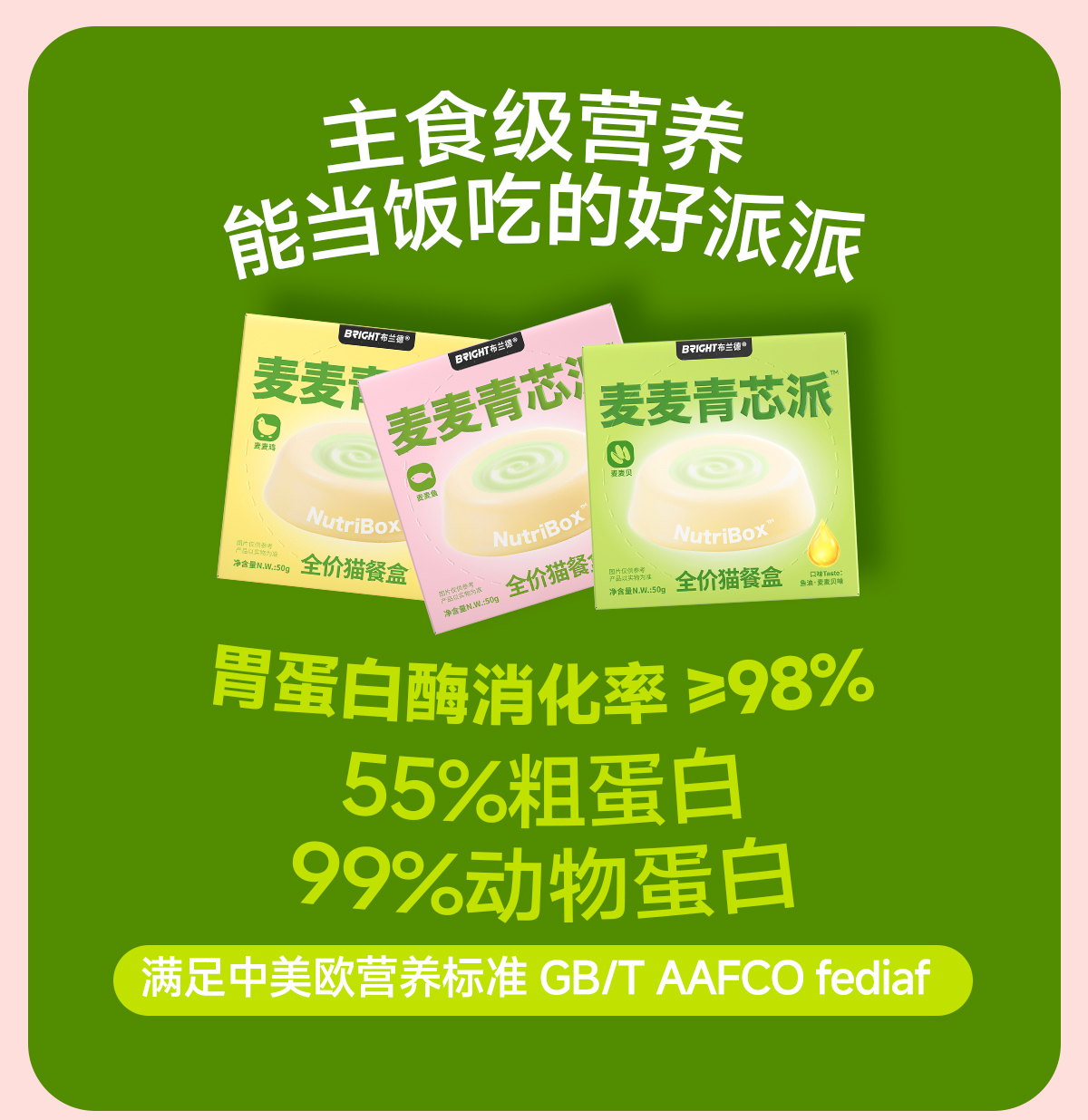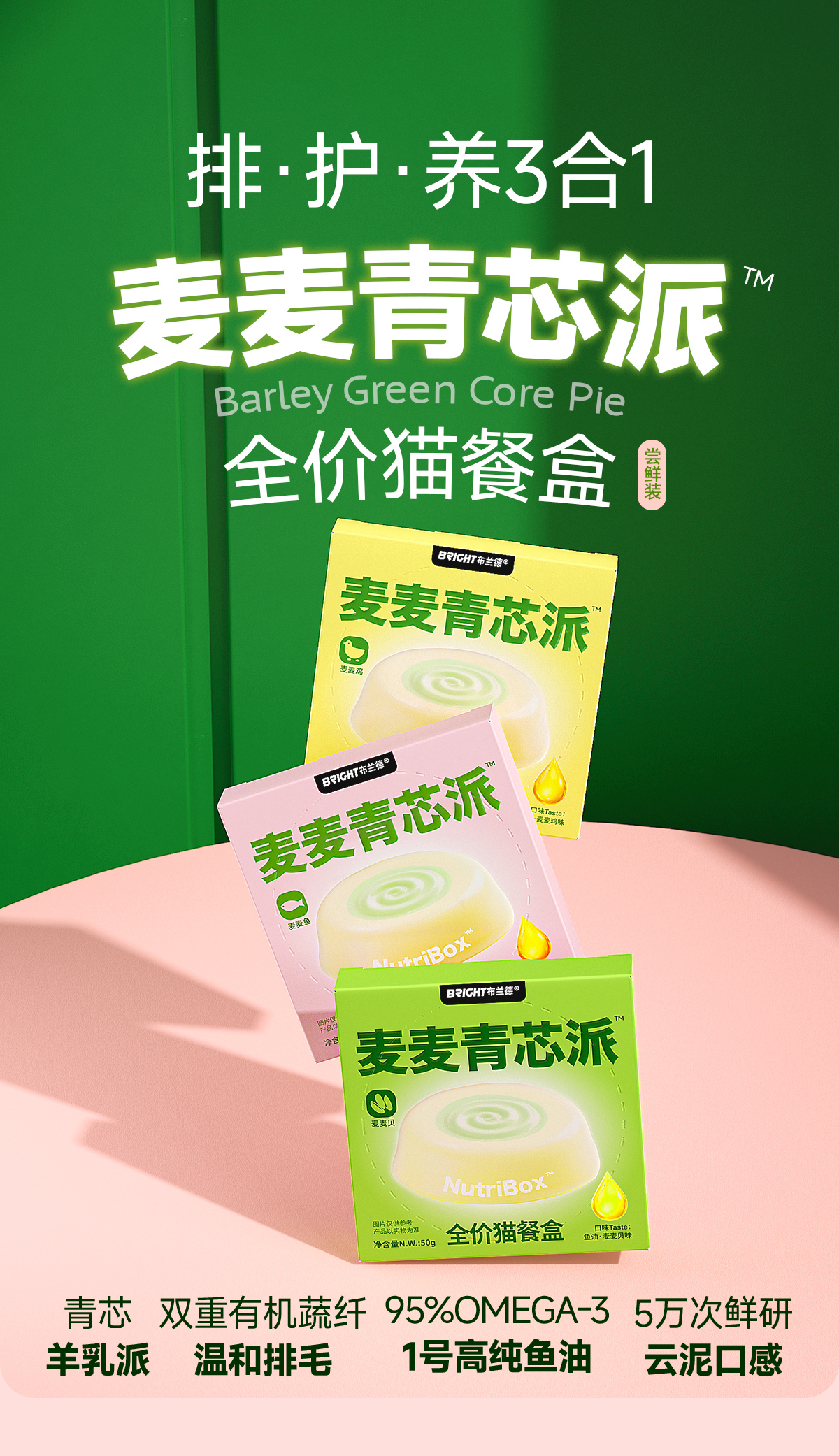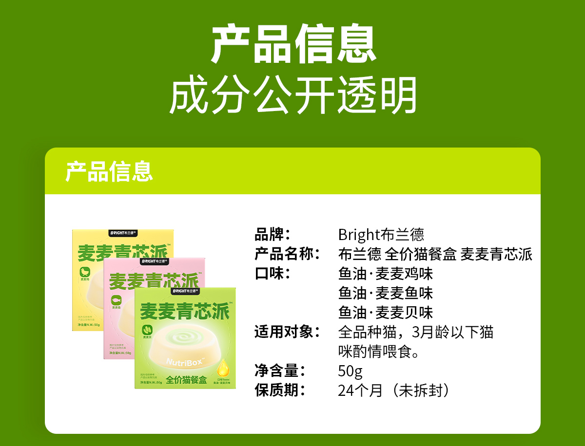 【新品尝鲜】麦麦青芯派高纯鱼油全价主食猫餐盒50g*3