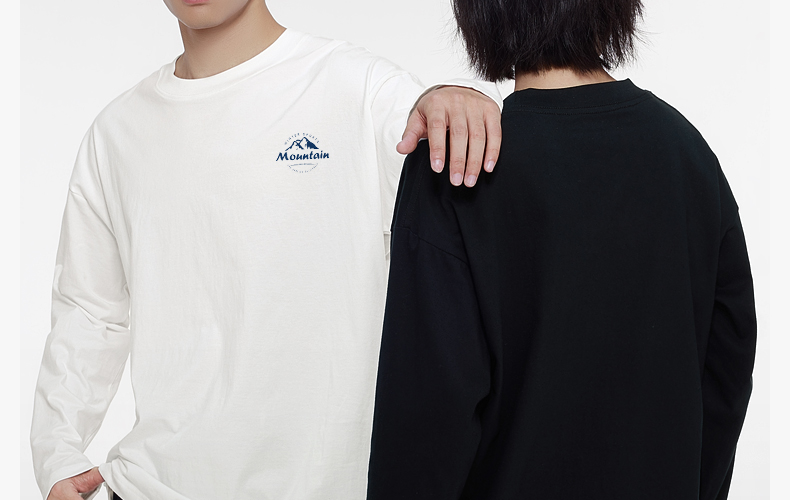 「棉的美学」秋季新款重磅纯棉长袖t恤女复古印花休闲百搭情侣款