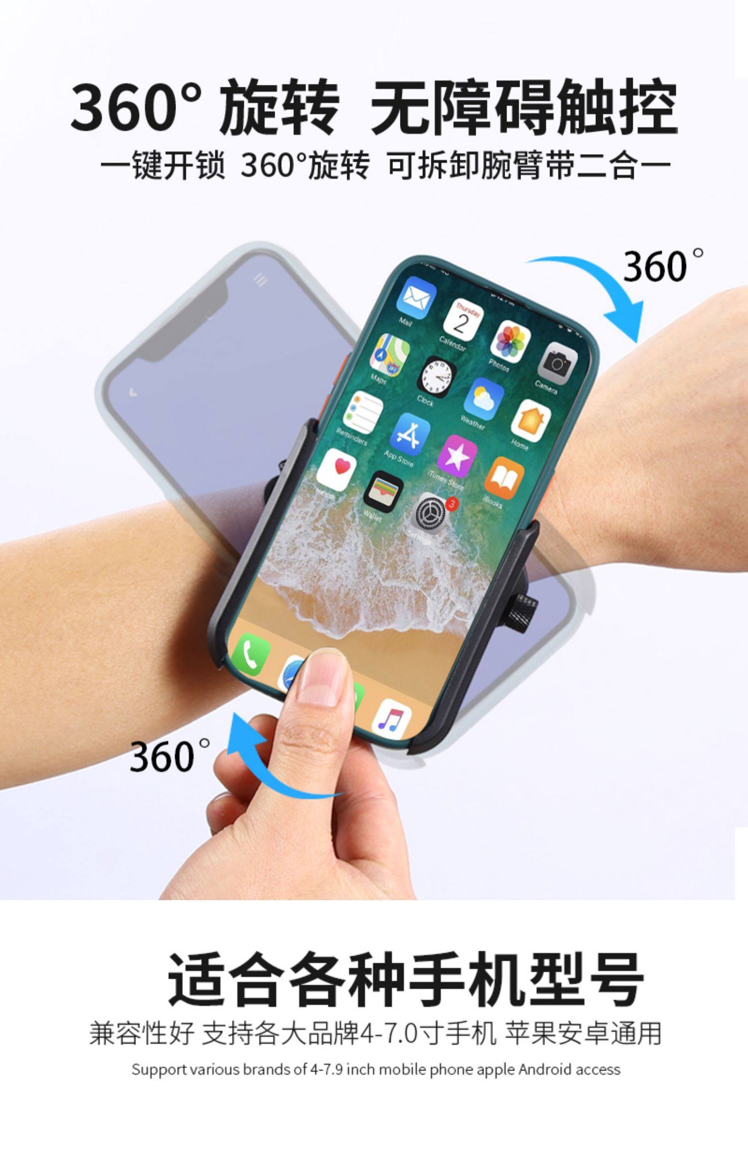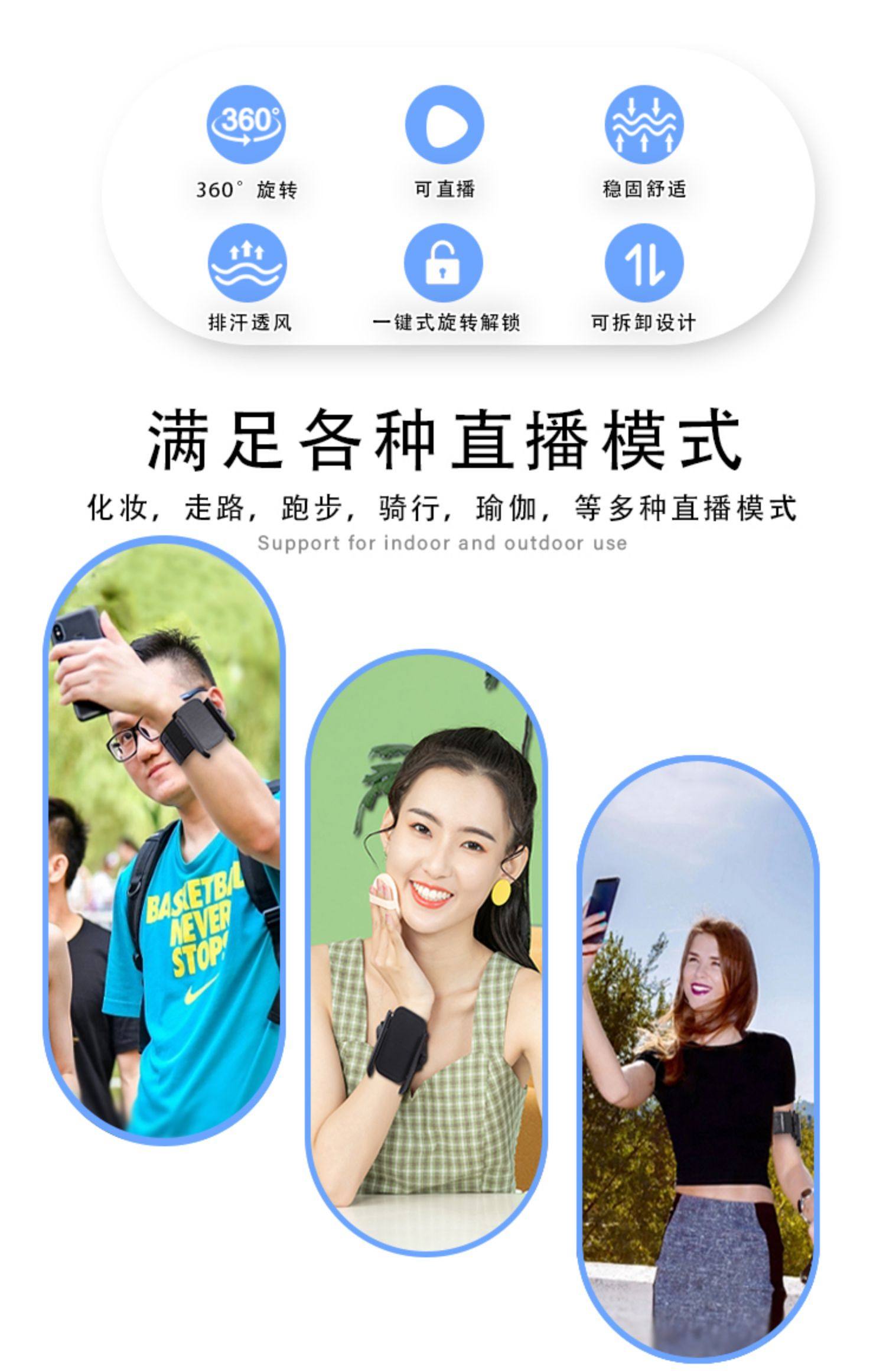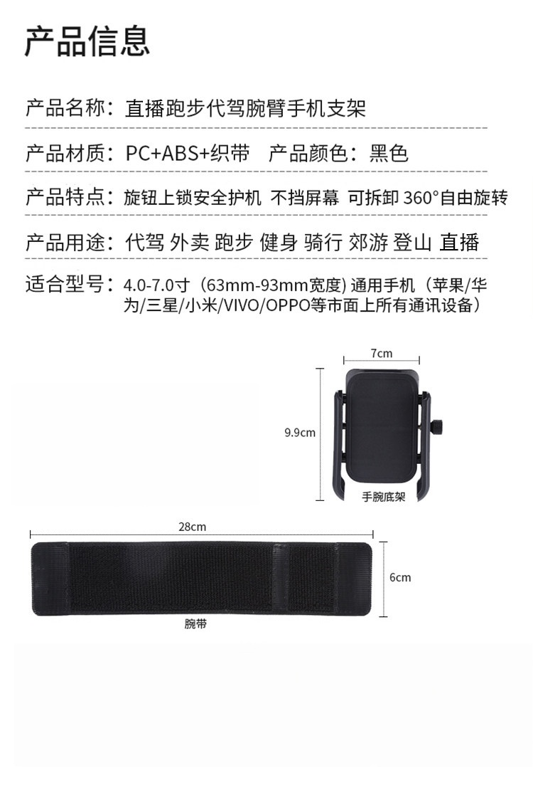直播走播网红手腕支架 可360度旋转 适用于所有4-7英寸智能手机