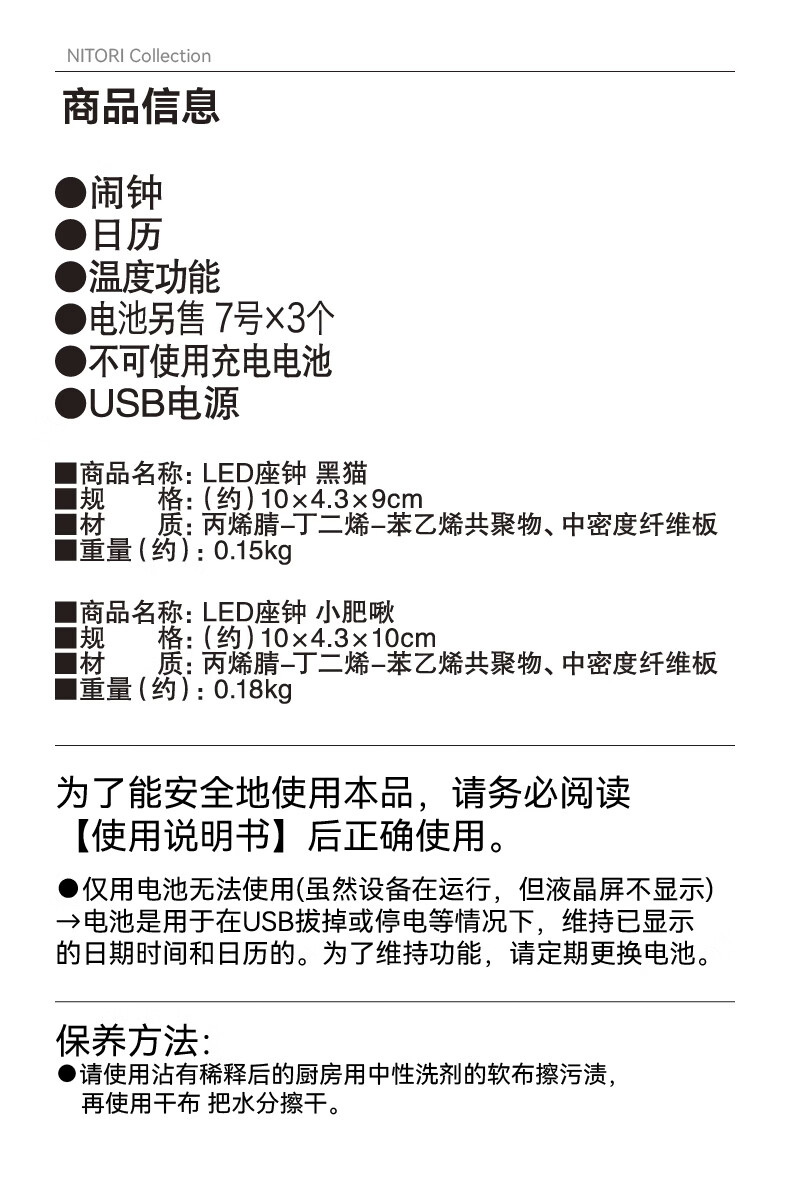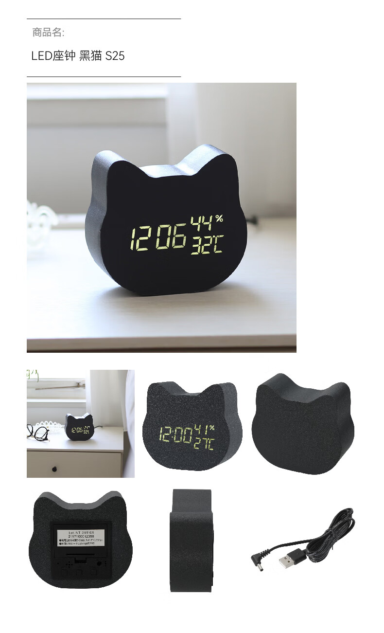 可爱卡通电子闹钟电子温度时间显示LED座钟 黑猫 小肥啾