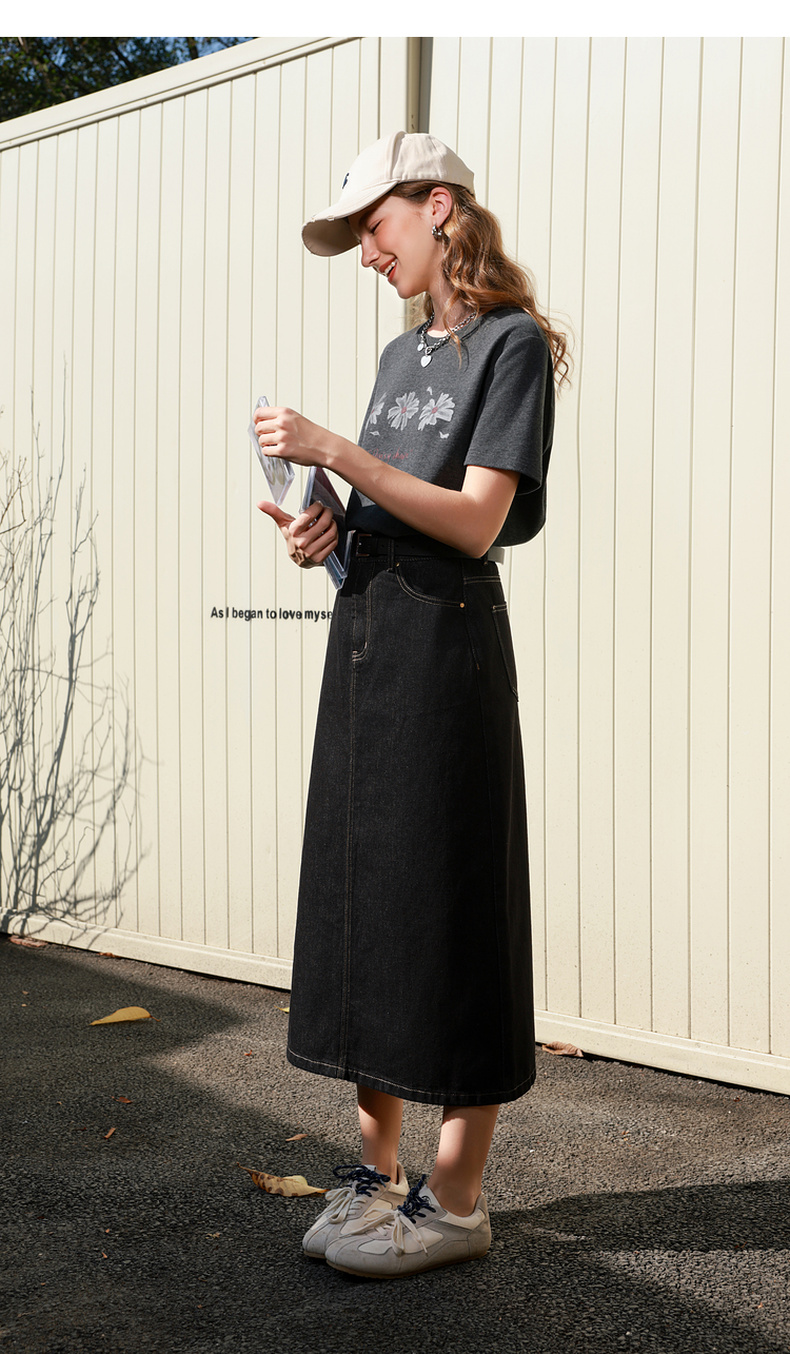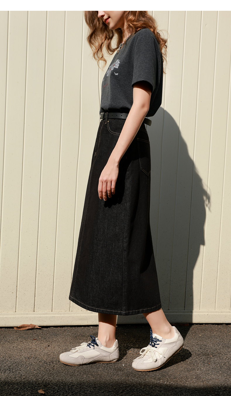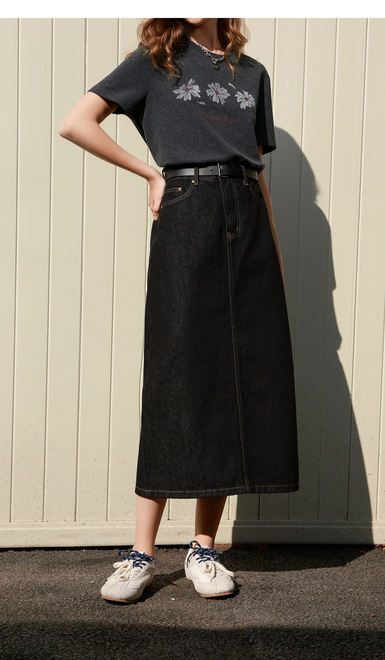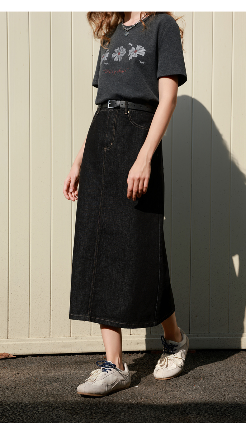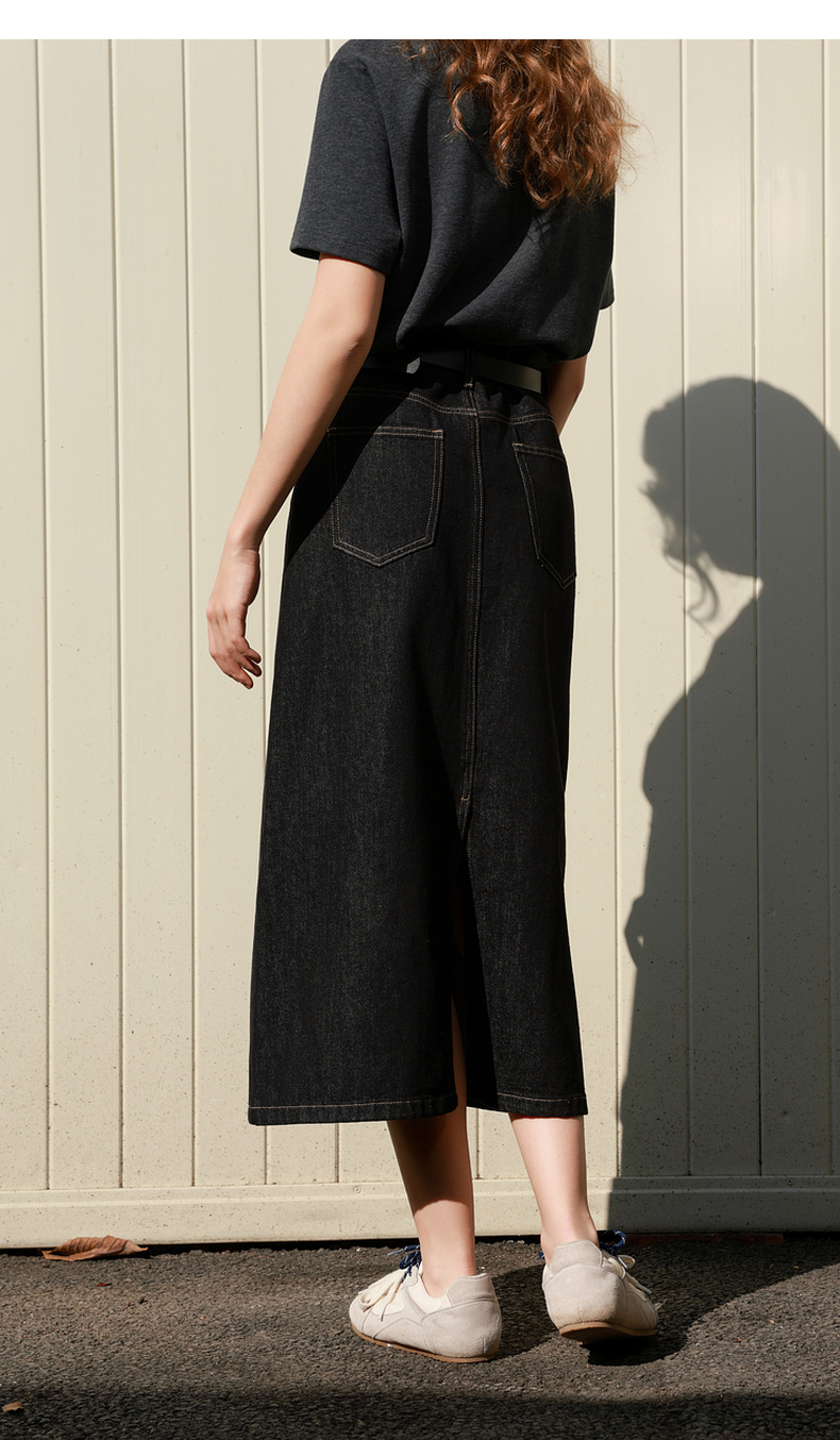 三彩2026春季新款简约复古牛仔裙半身裙高腰直筒裙长裙时尚M