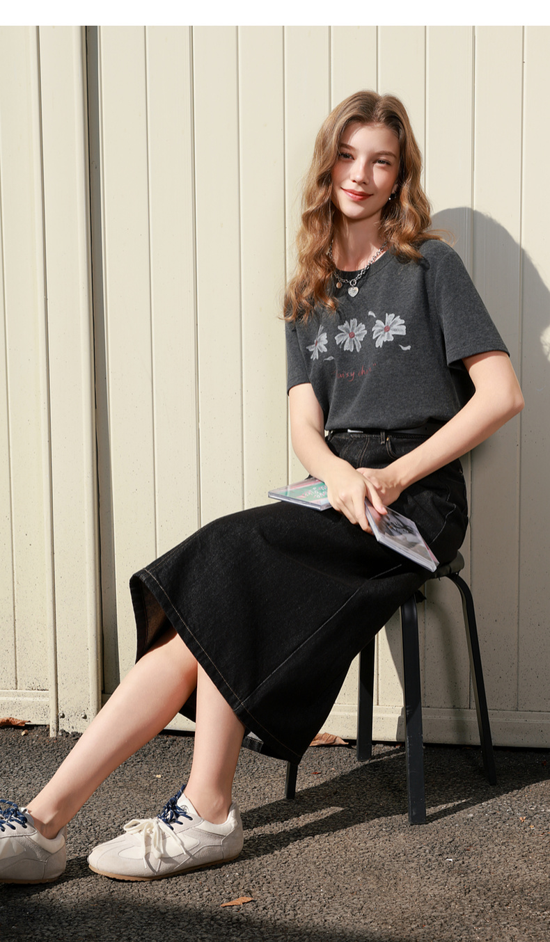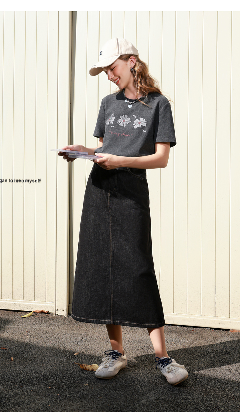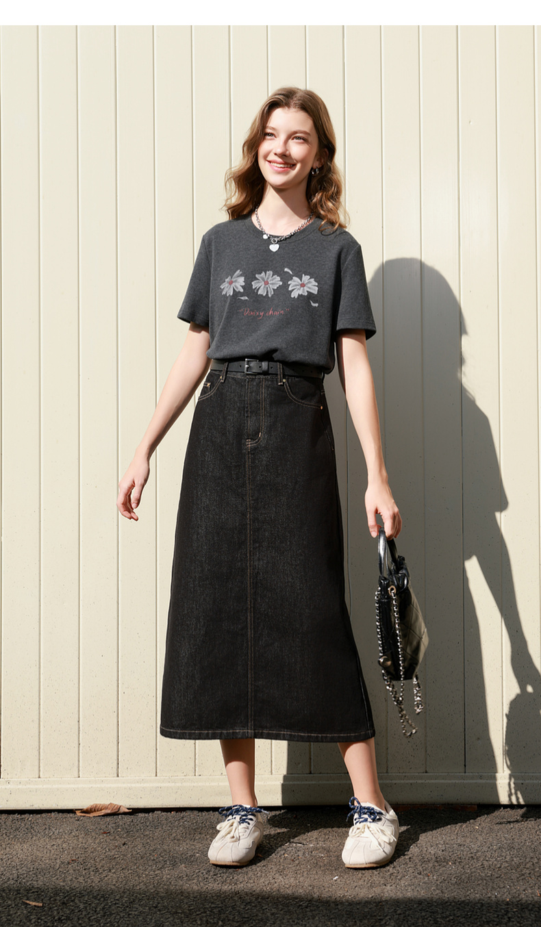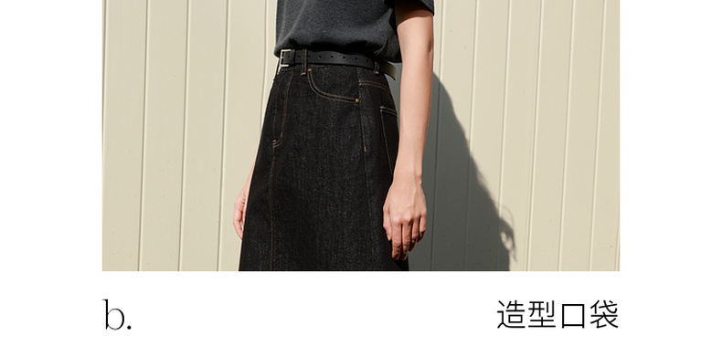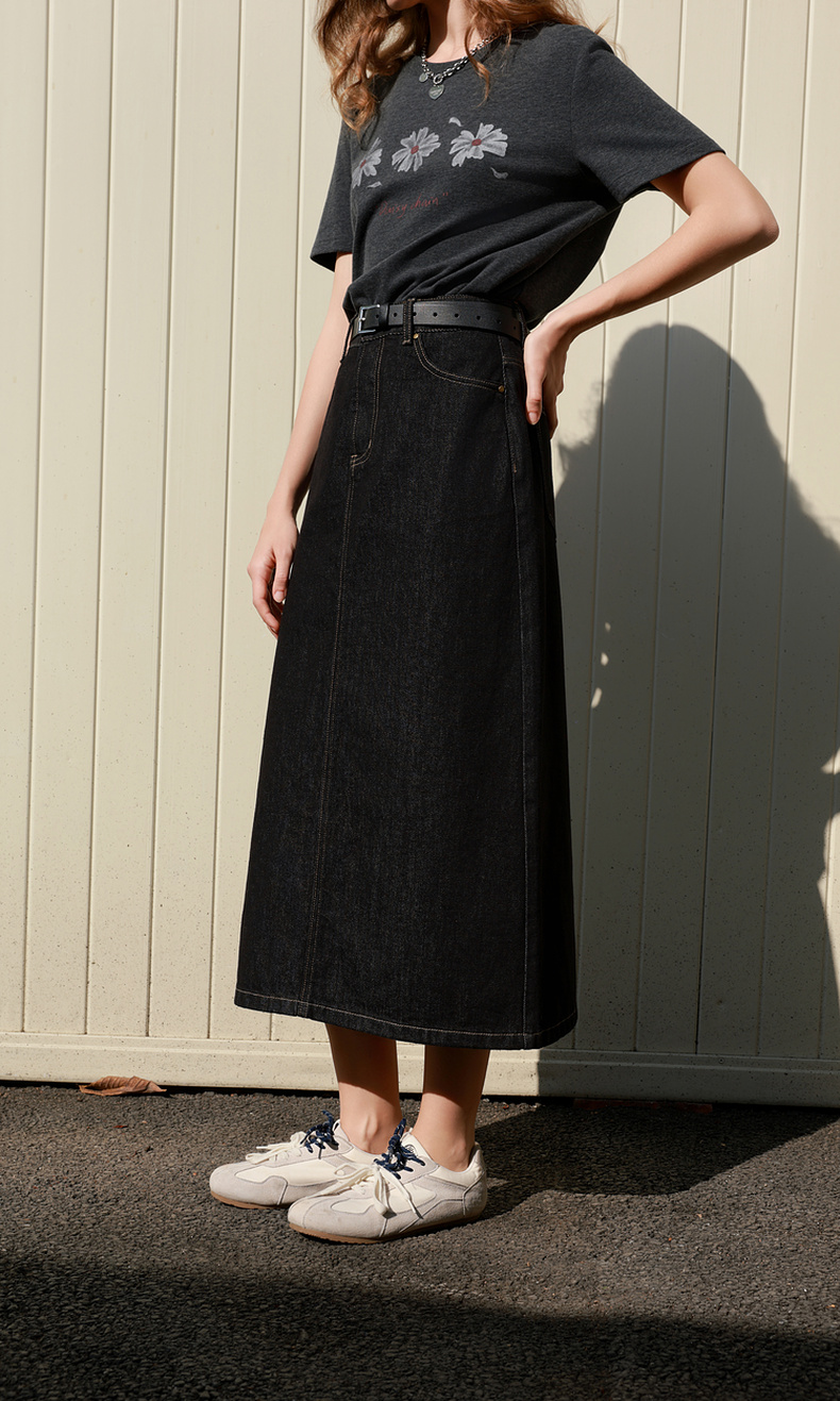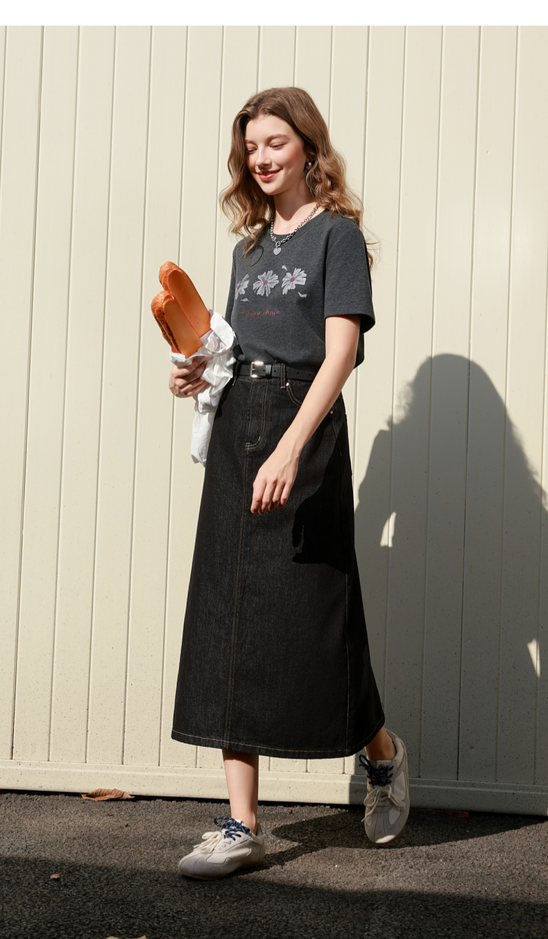 三彩2026春季新款简约复古牛仔裙半身裙高腰直筒裙长裙时尚M