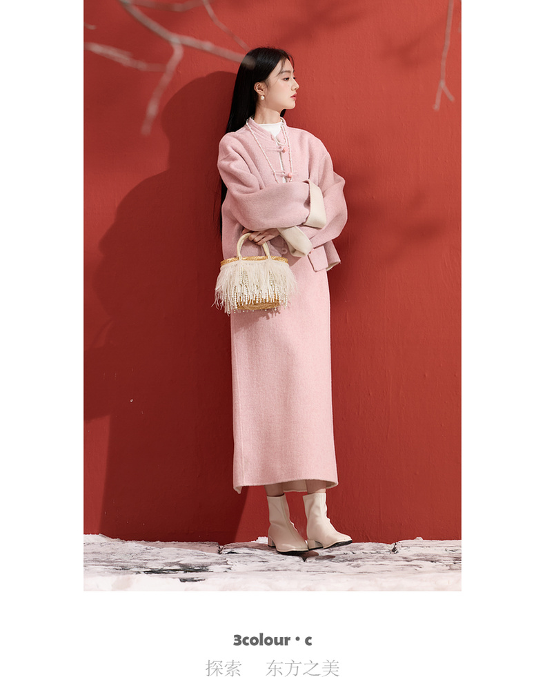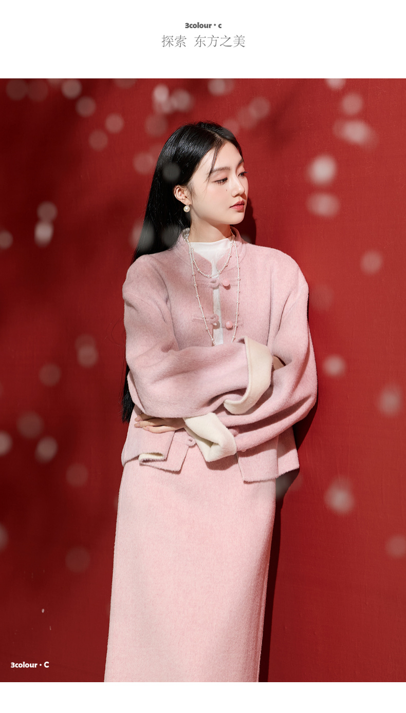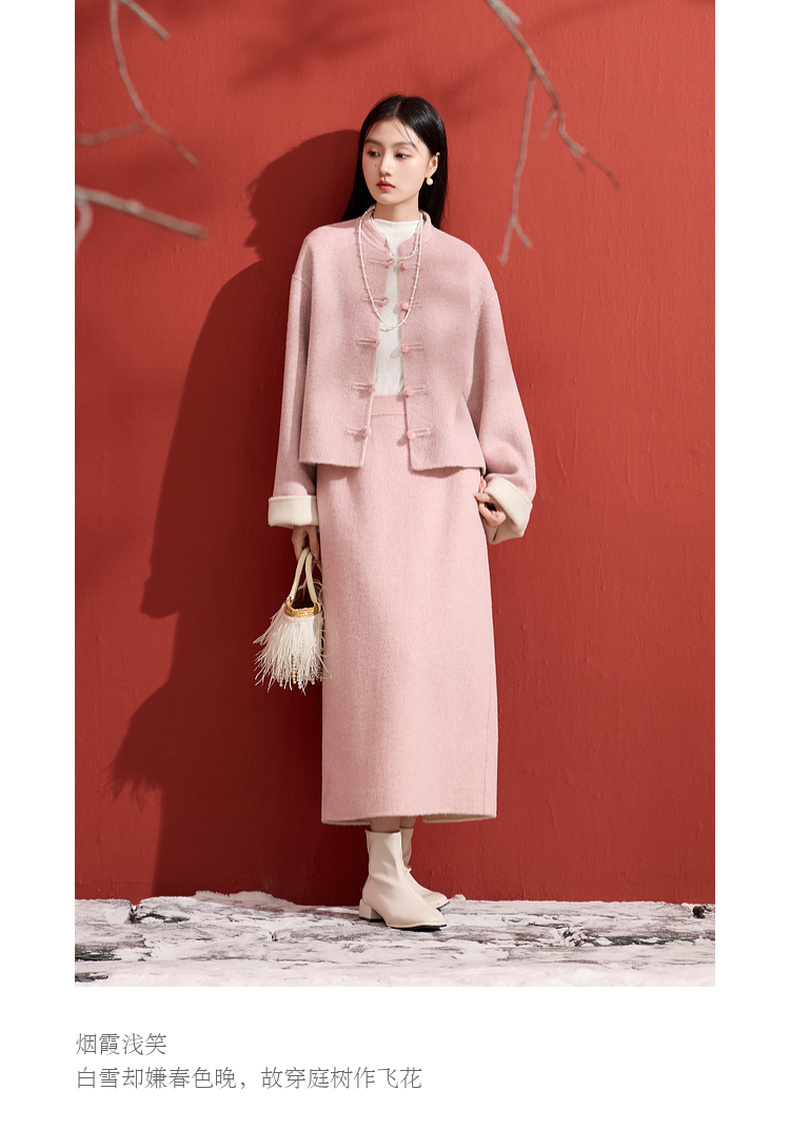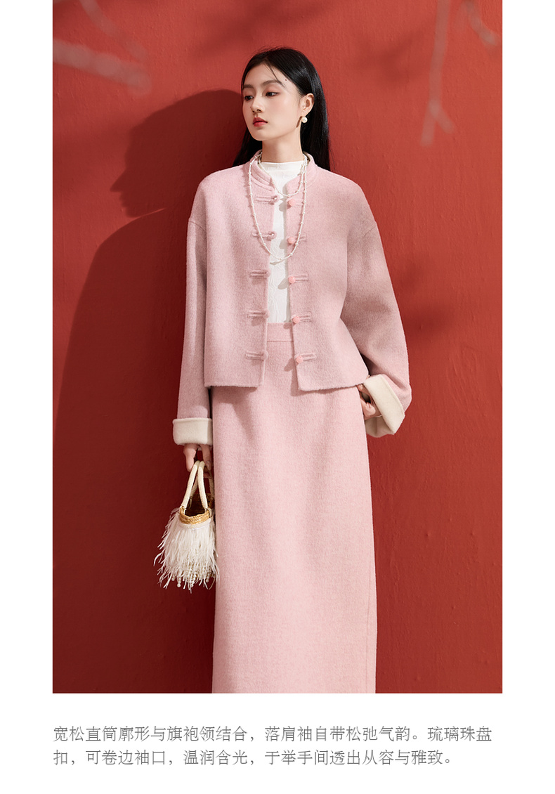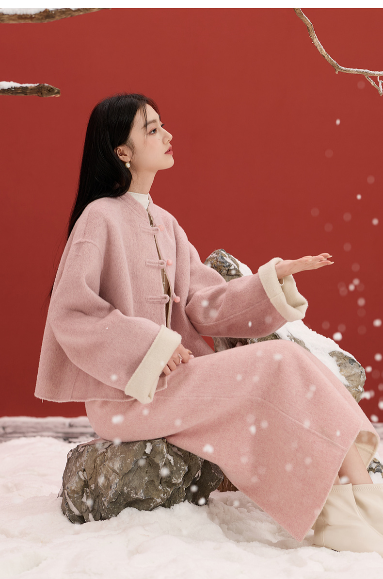三彩【烟霞浅笑】2026春季新款绵羊毛双面呢大衣宽松短款外套C