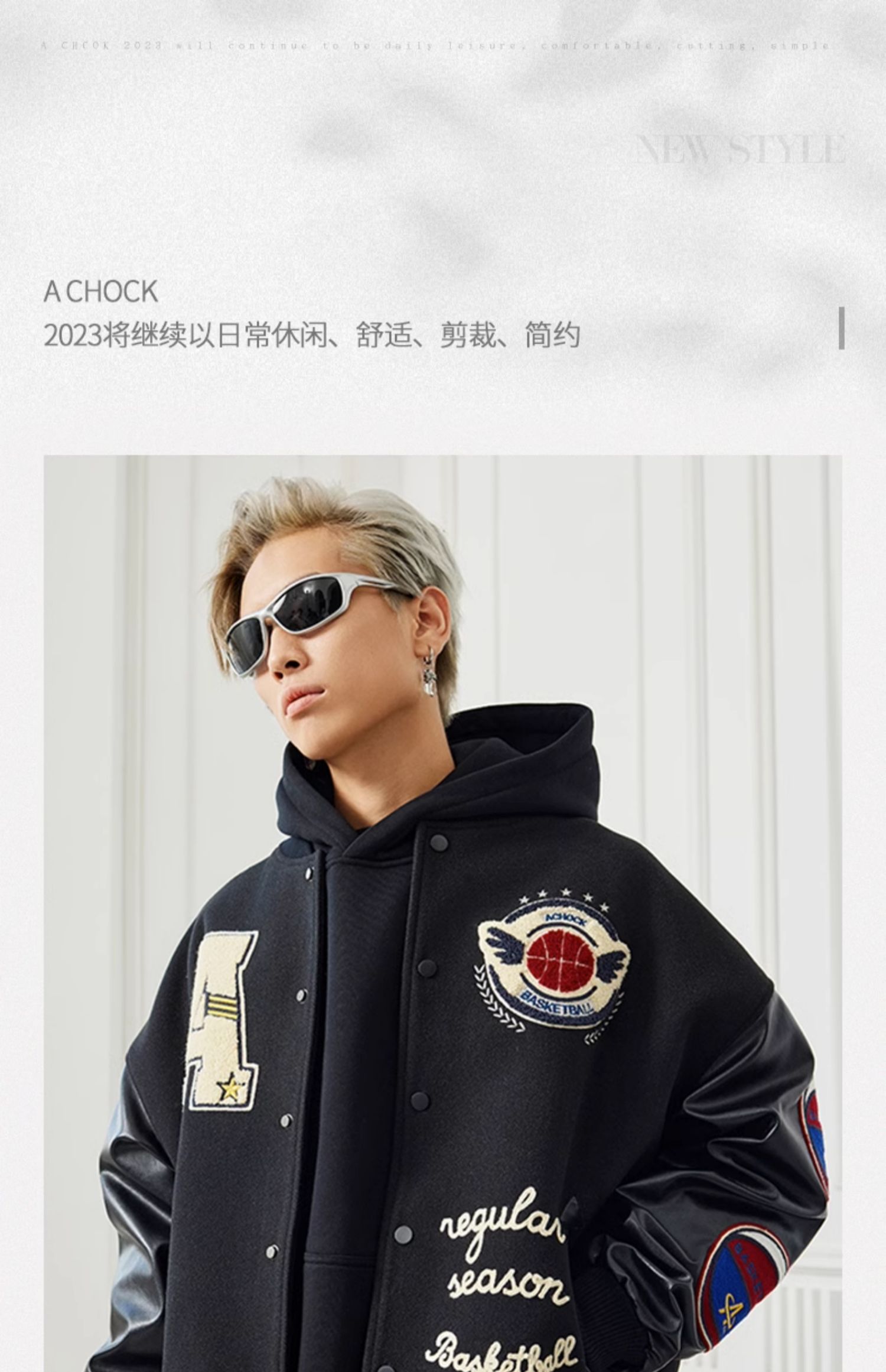 【Achock官方店】美式嘻哈重磅字母外套潮牌高街秋冬棒球服夹克