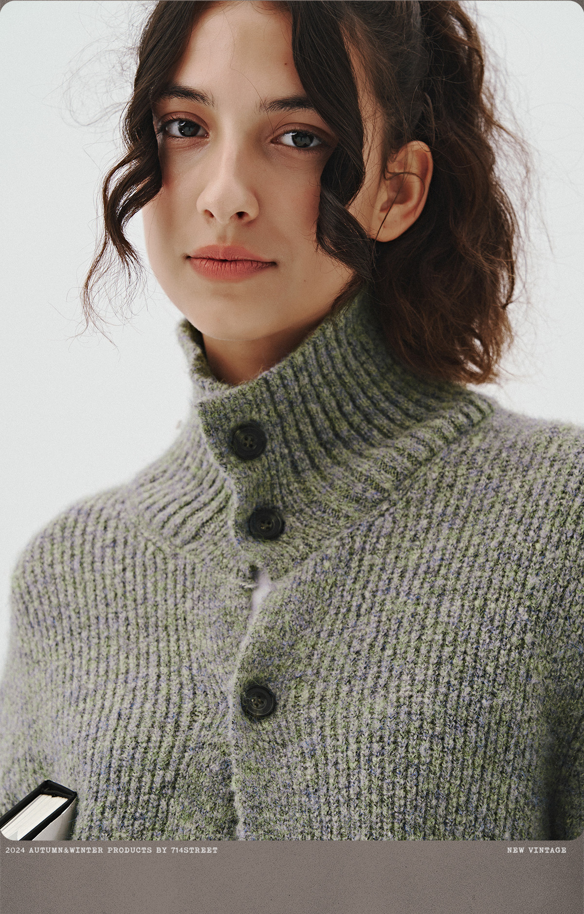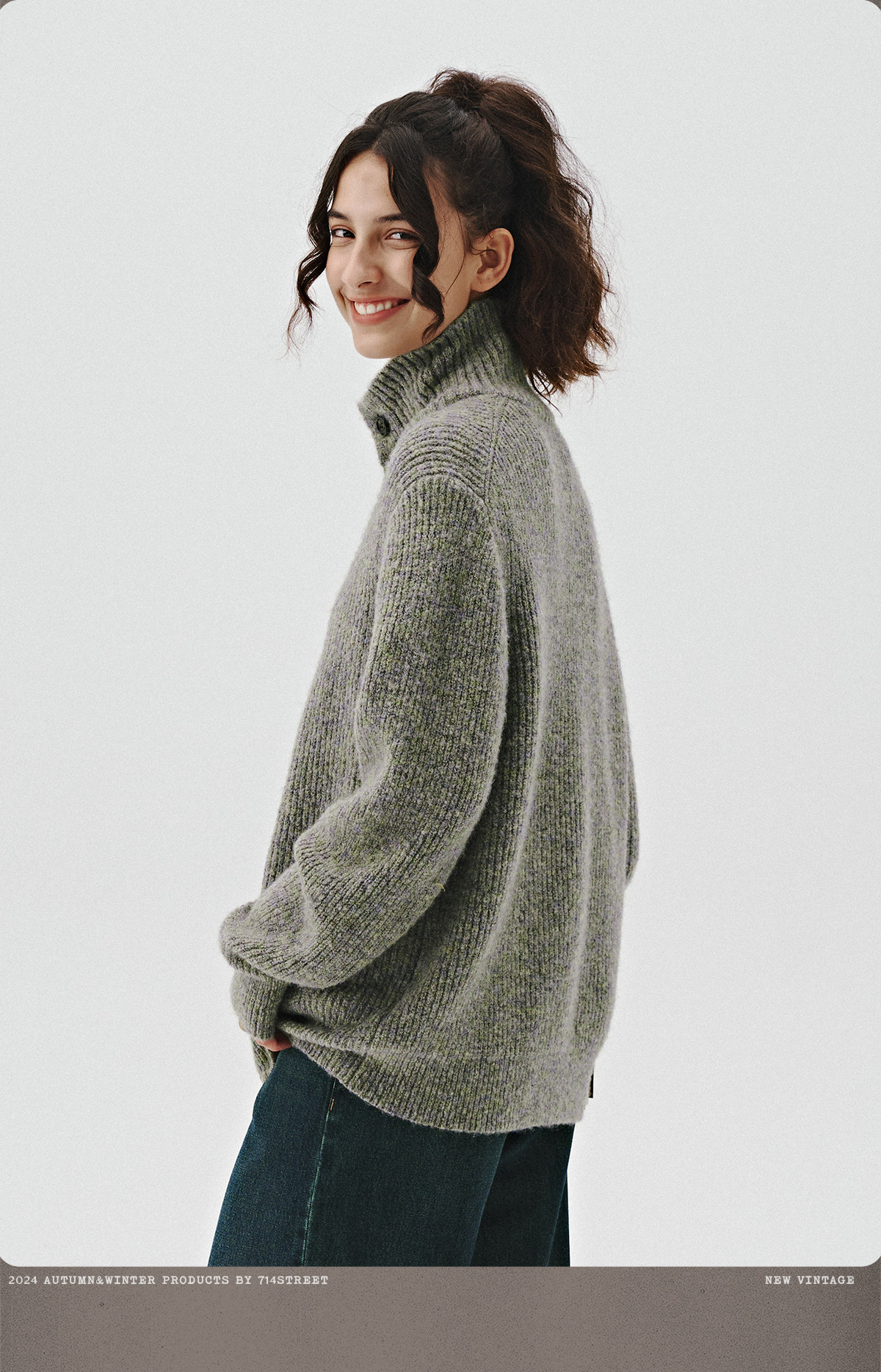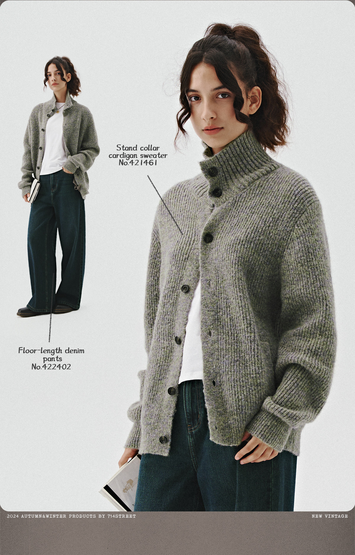 714street仿马海毛高领毛衣开衫2024秋冬新款情侣装针织开衫外套