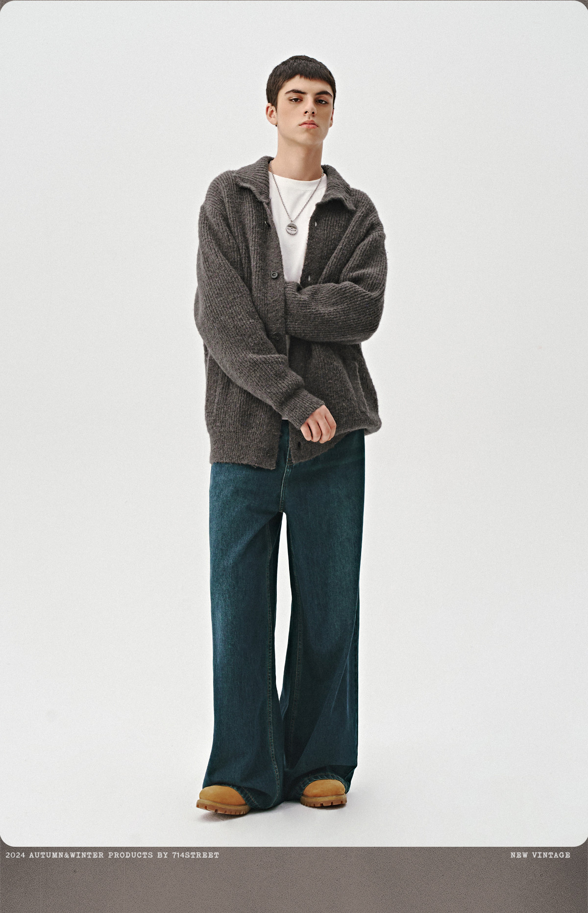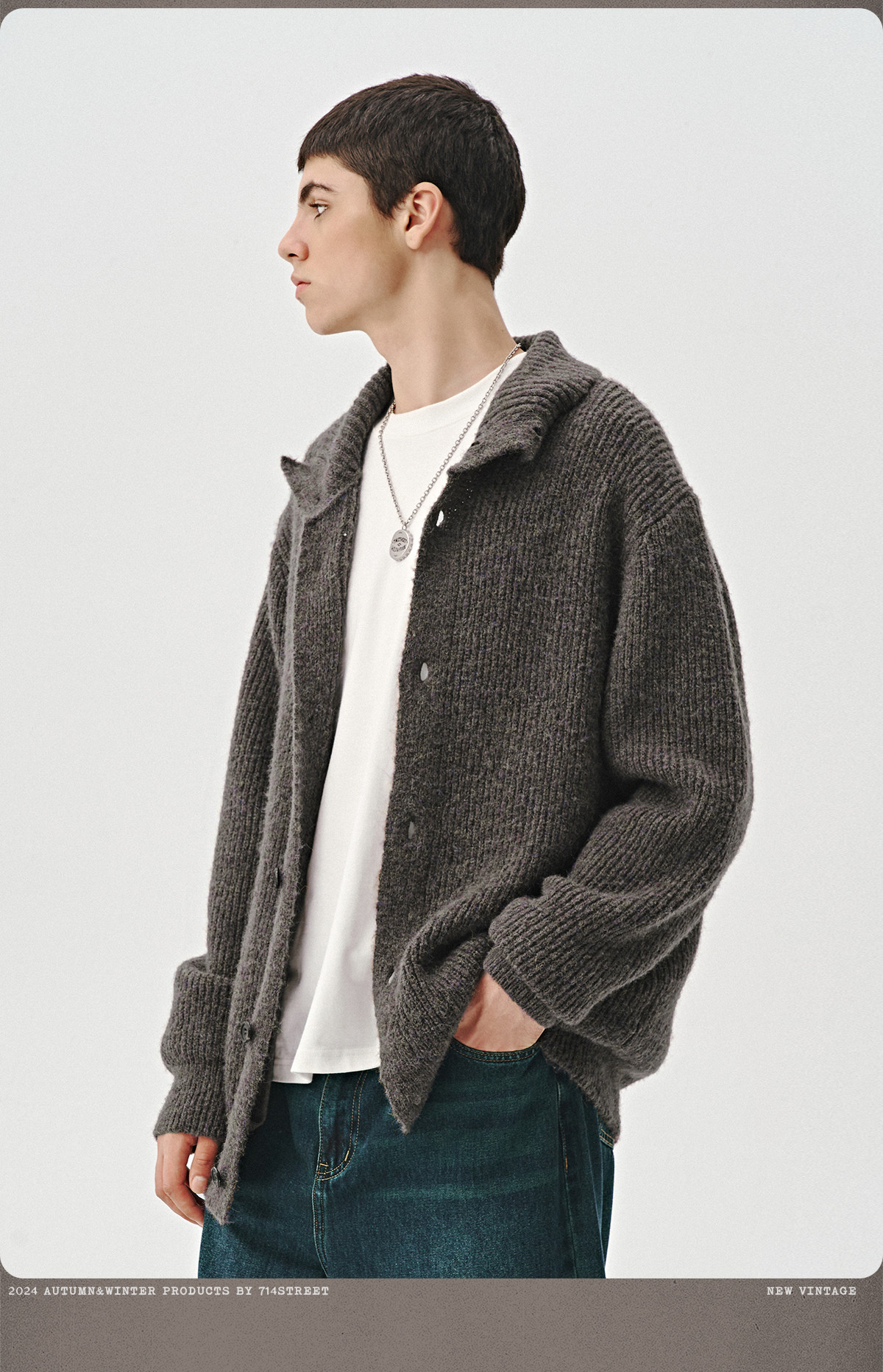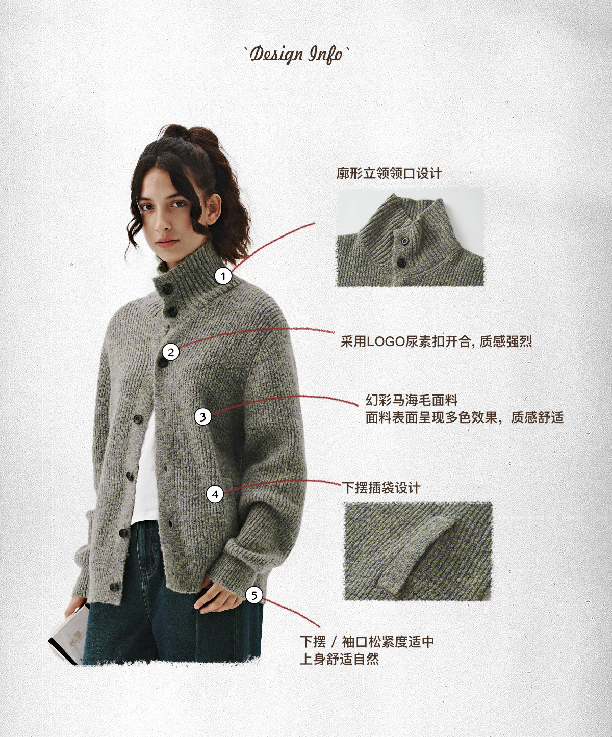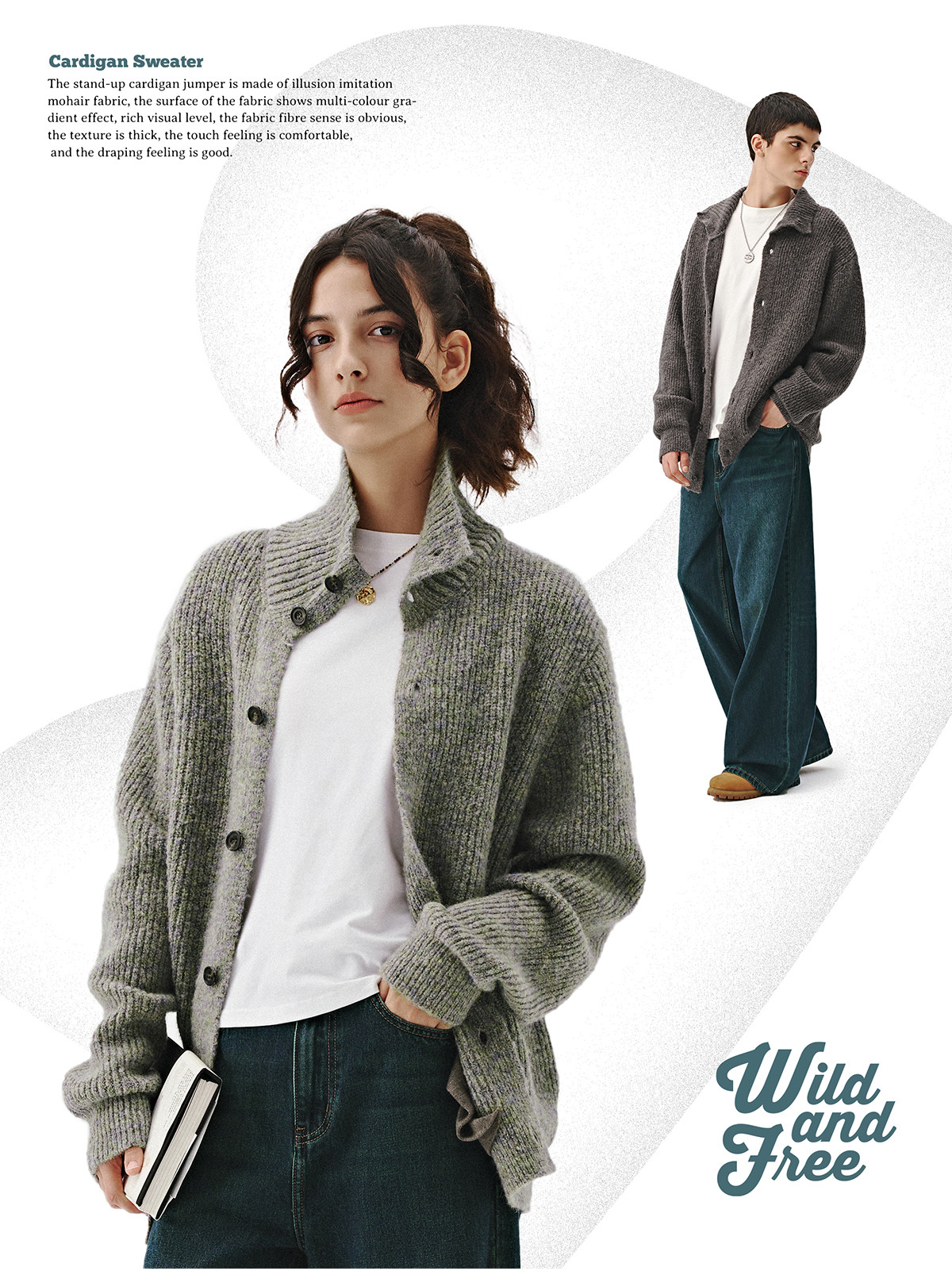 714street仿马海毛高领毛衣开衫2024秋冬新款情侣装针织开衫外套