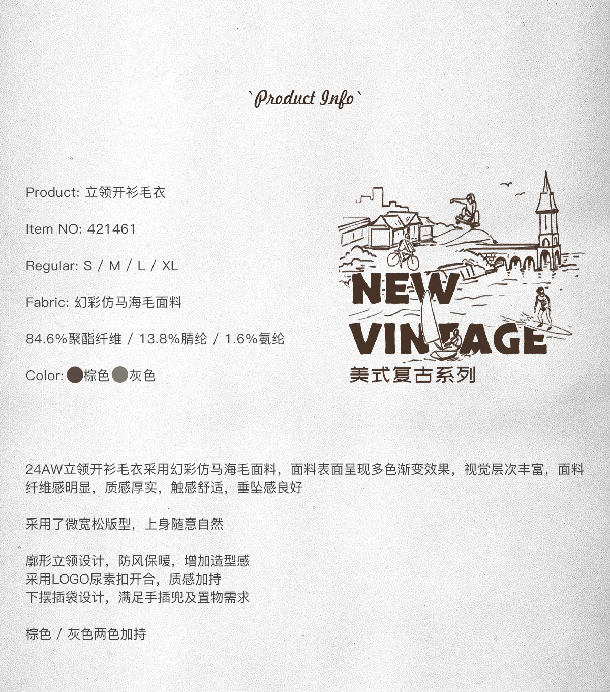 714street仿羊绒毛呢立领夹克男秋冬新款卫衣外套老钱风穿搭