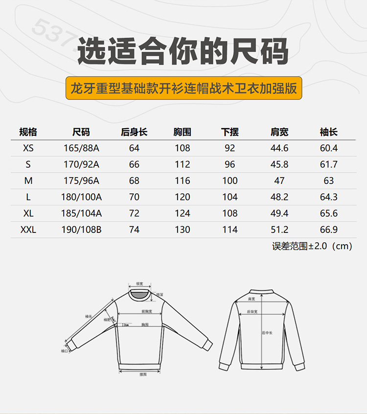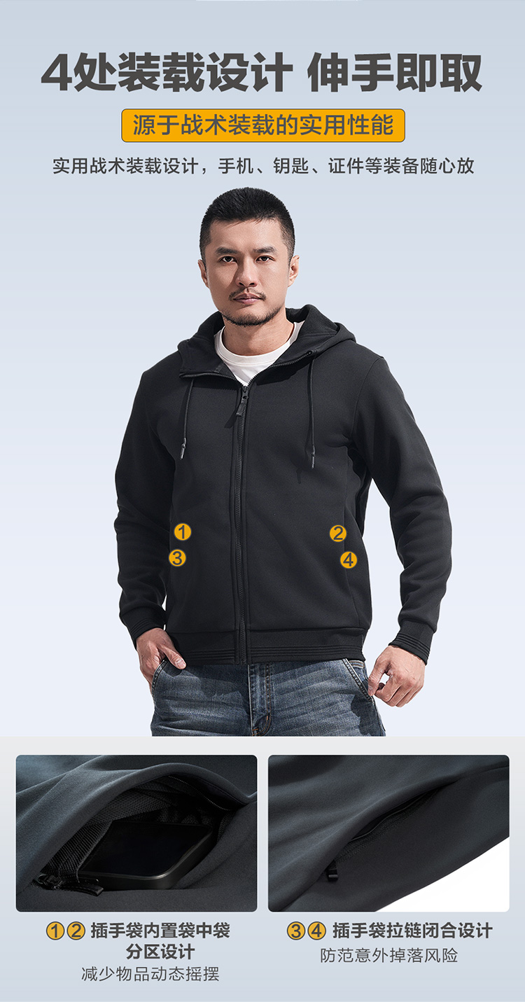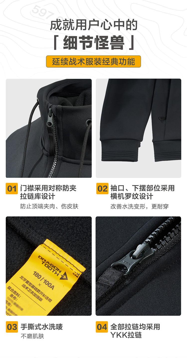 加强版龙牙重型基础款开衫连帽战术卫衣加强版