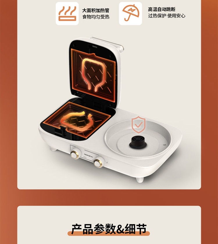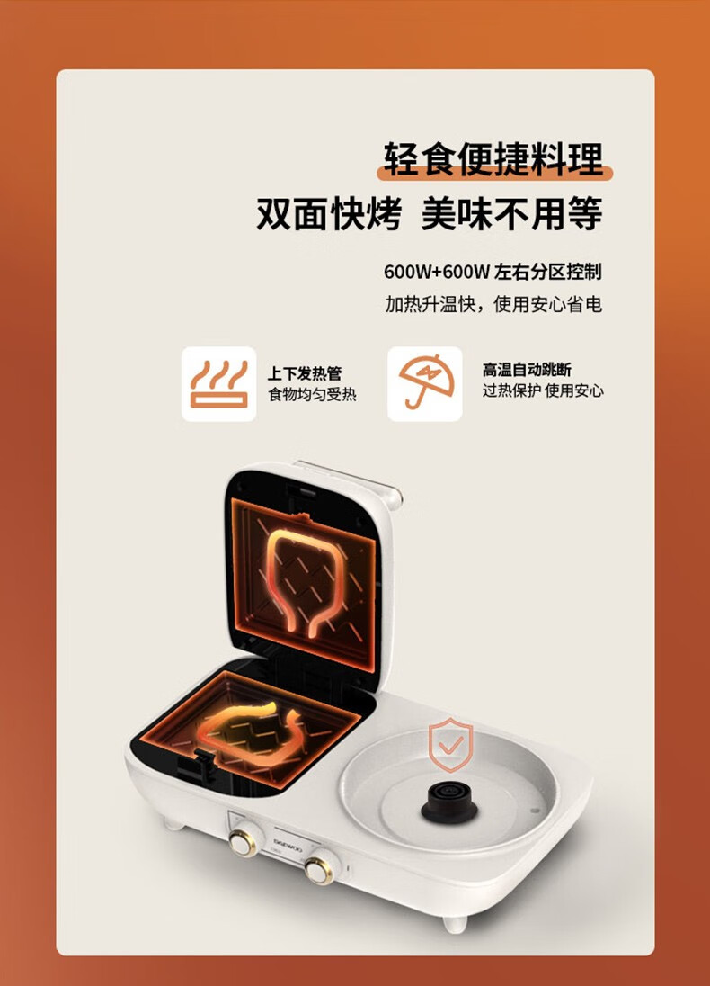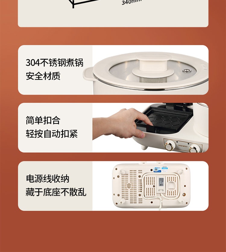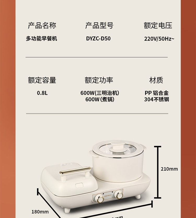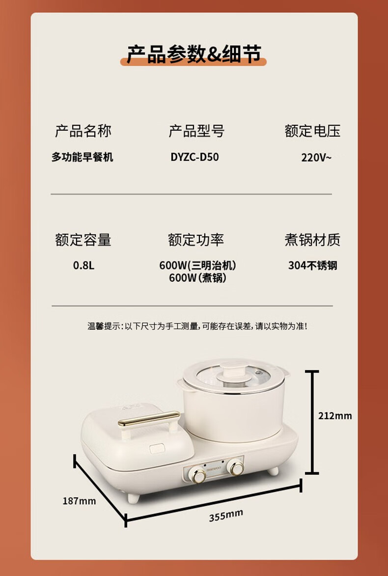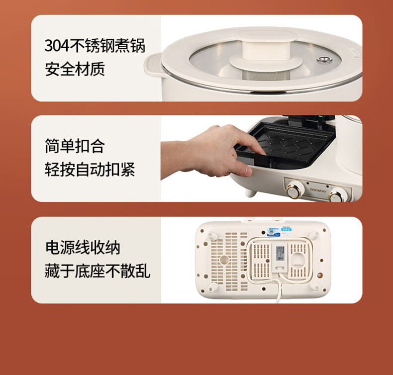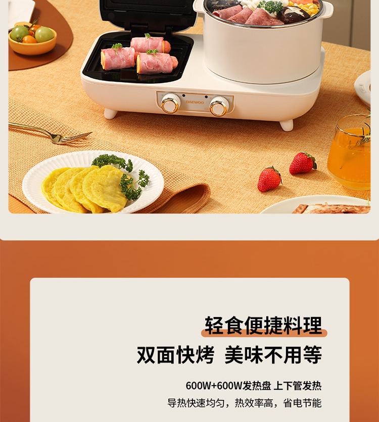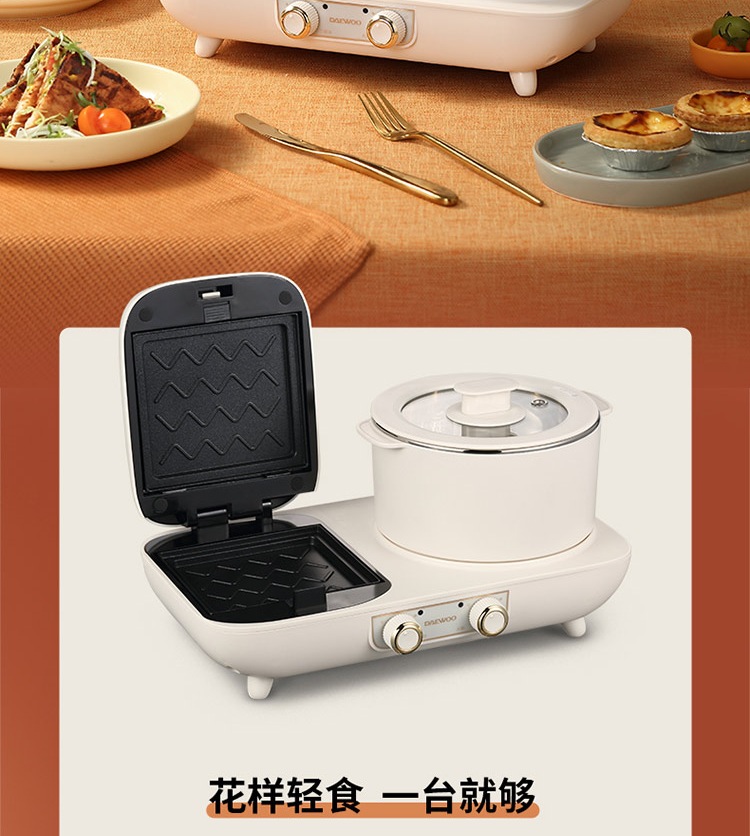 大宇(DAEWOO)电饼铛三明治多士炉料理锅家用多功能早餐机DYZC-D50