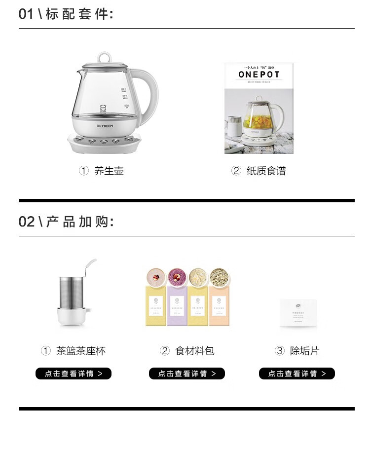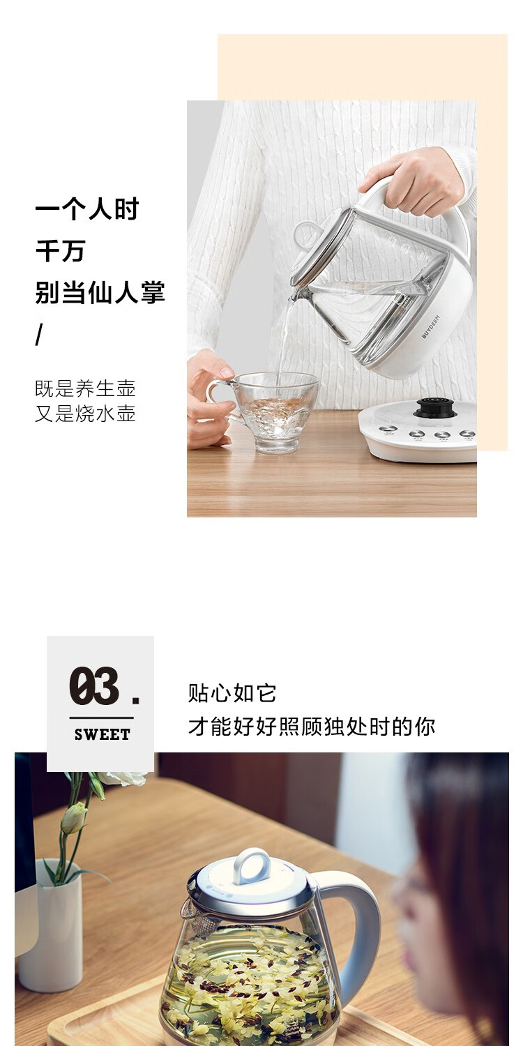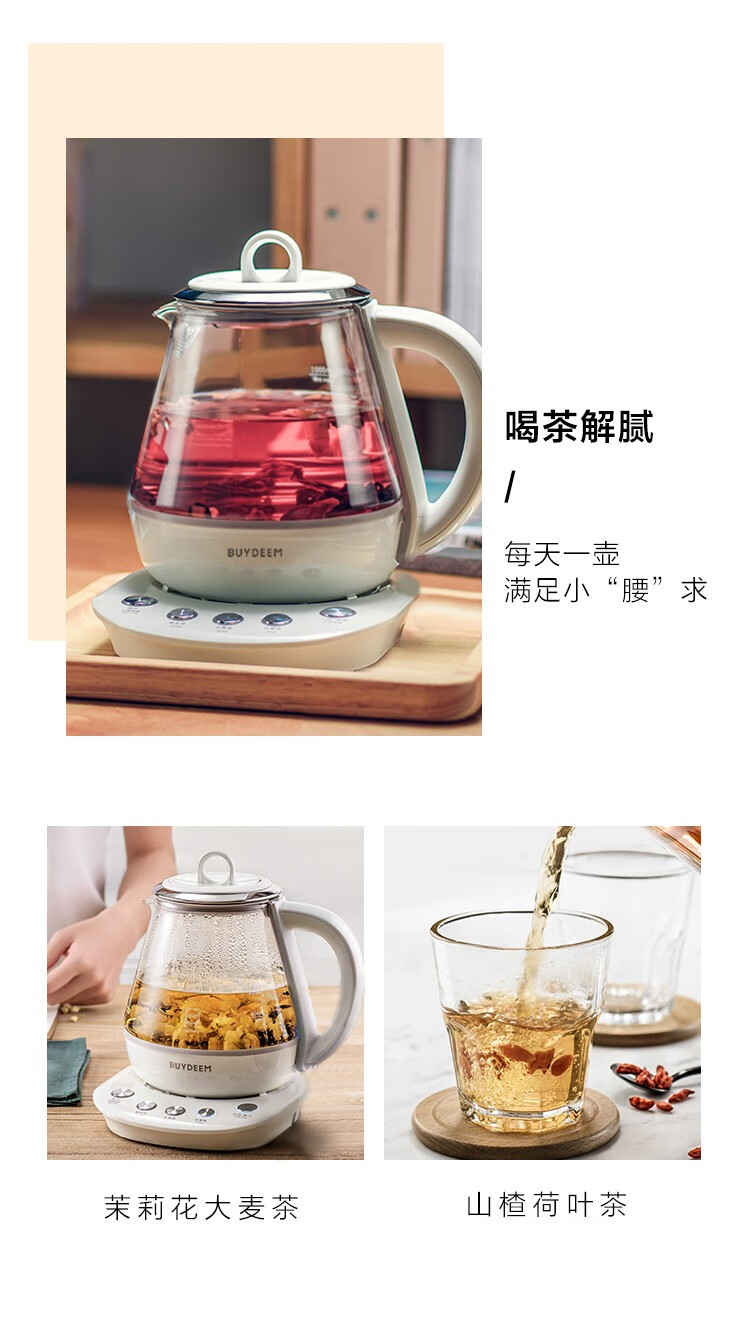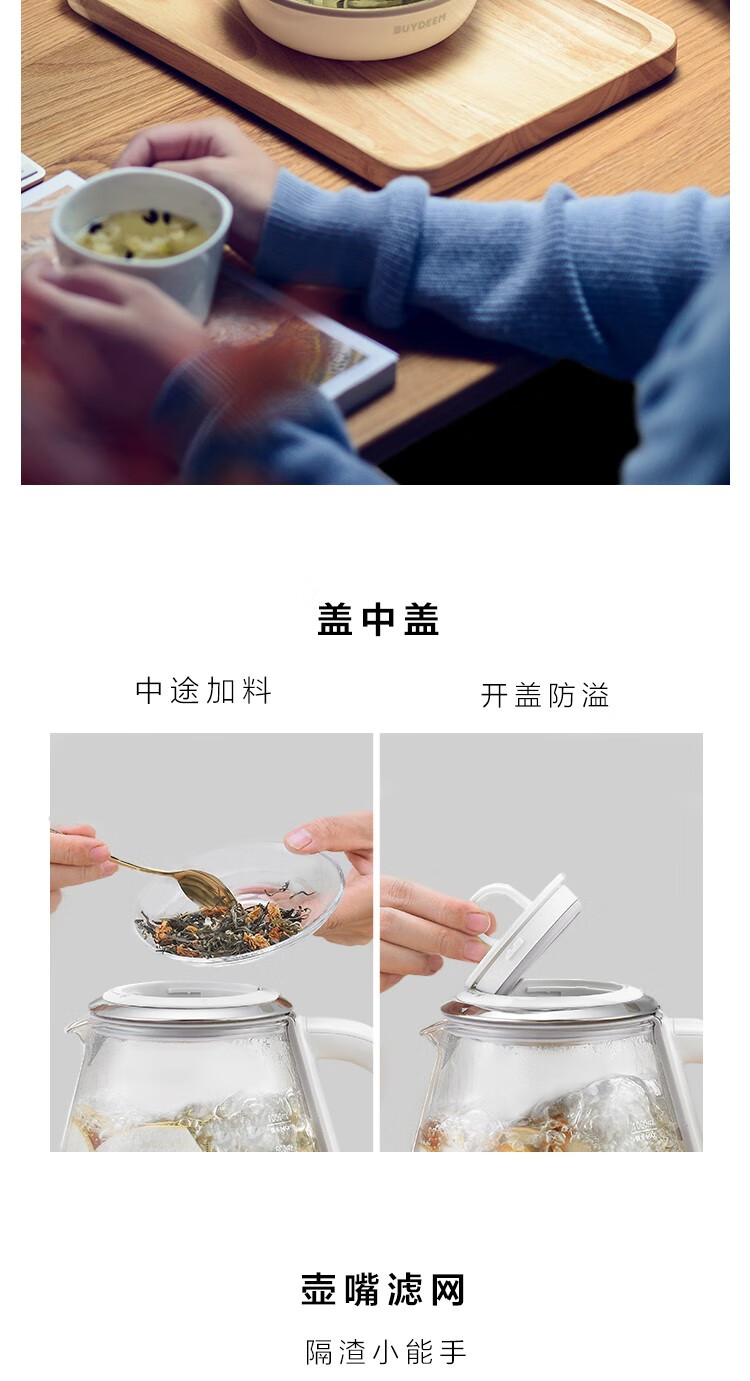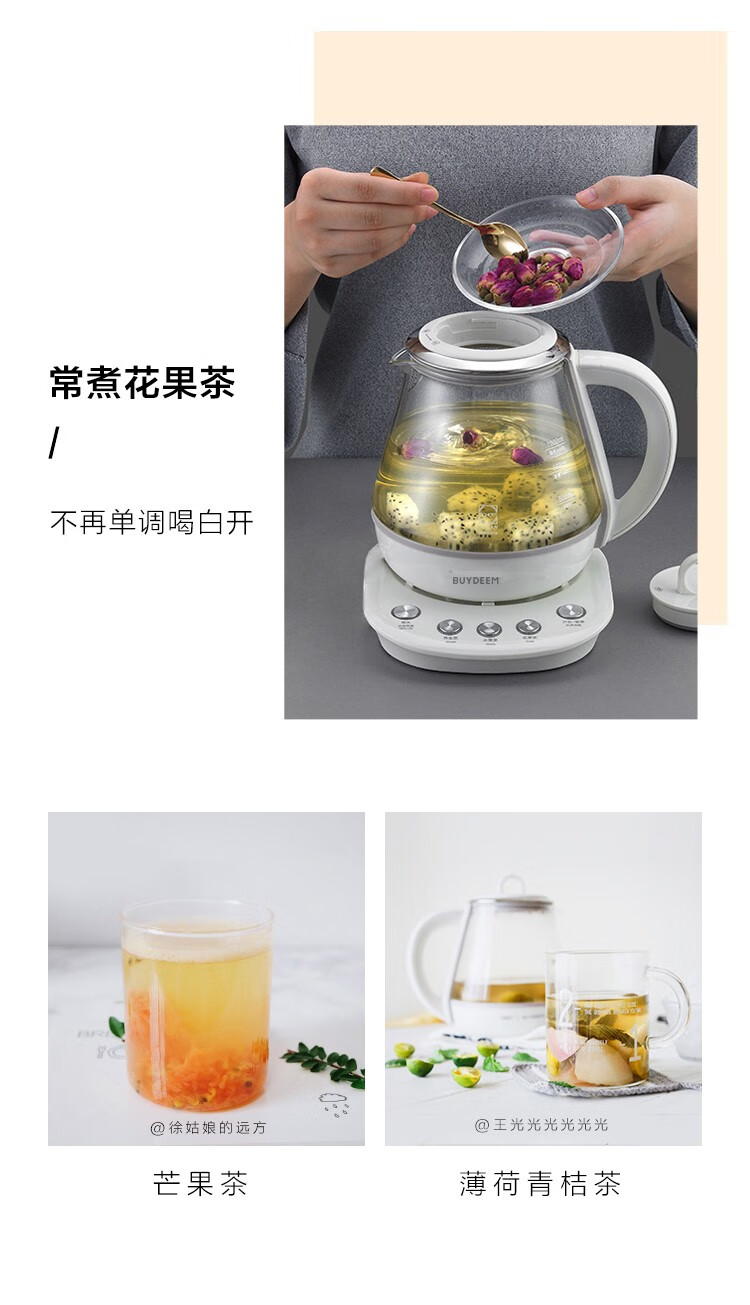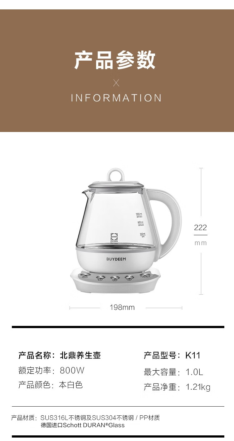 北鼎(Buydeem)迷你1000ml小型养生壶 智能居家办公煮茶壶 恒温烧水壶 多功能煮茶器 K11 本白色(单壶)