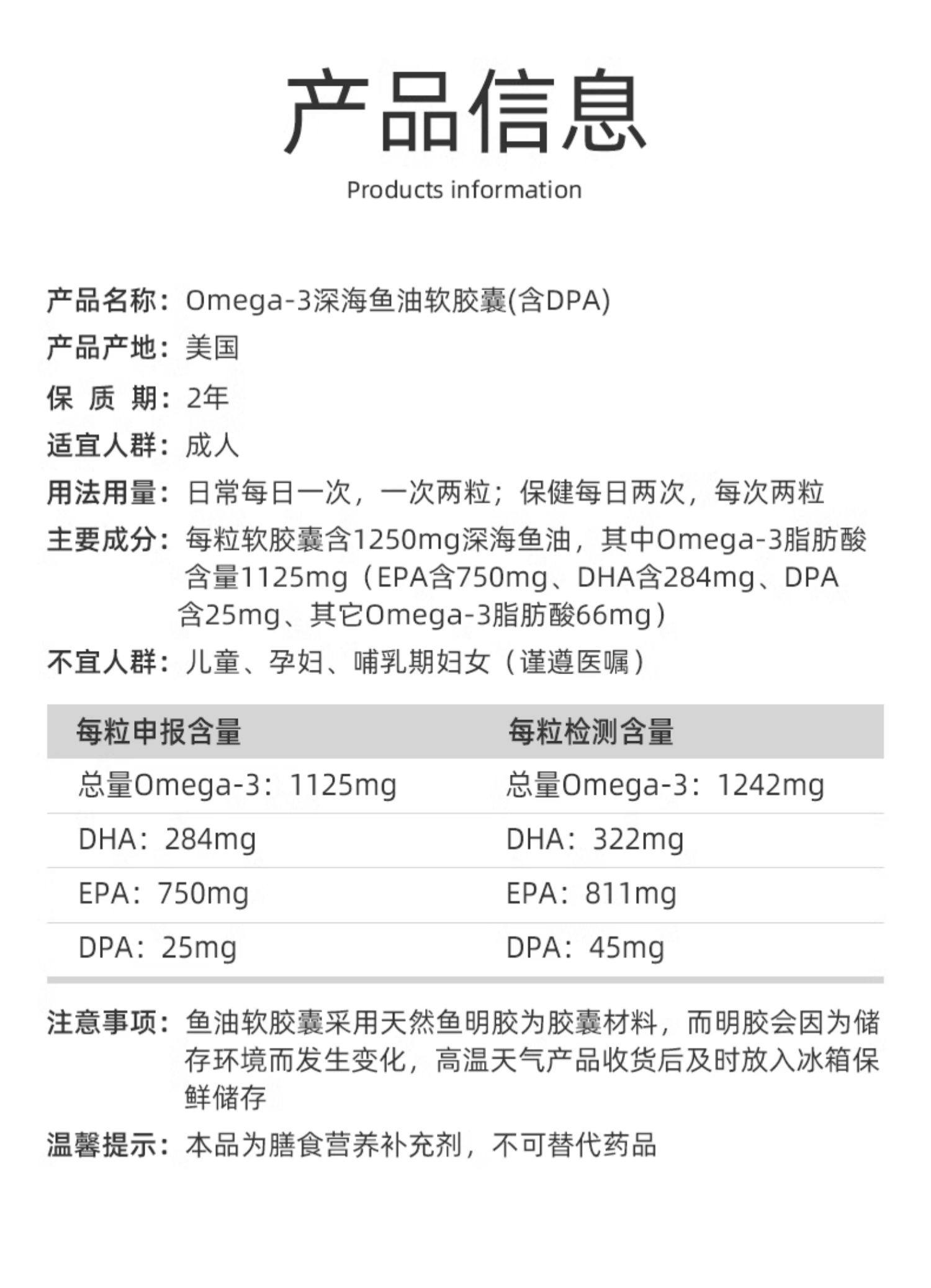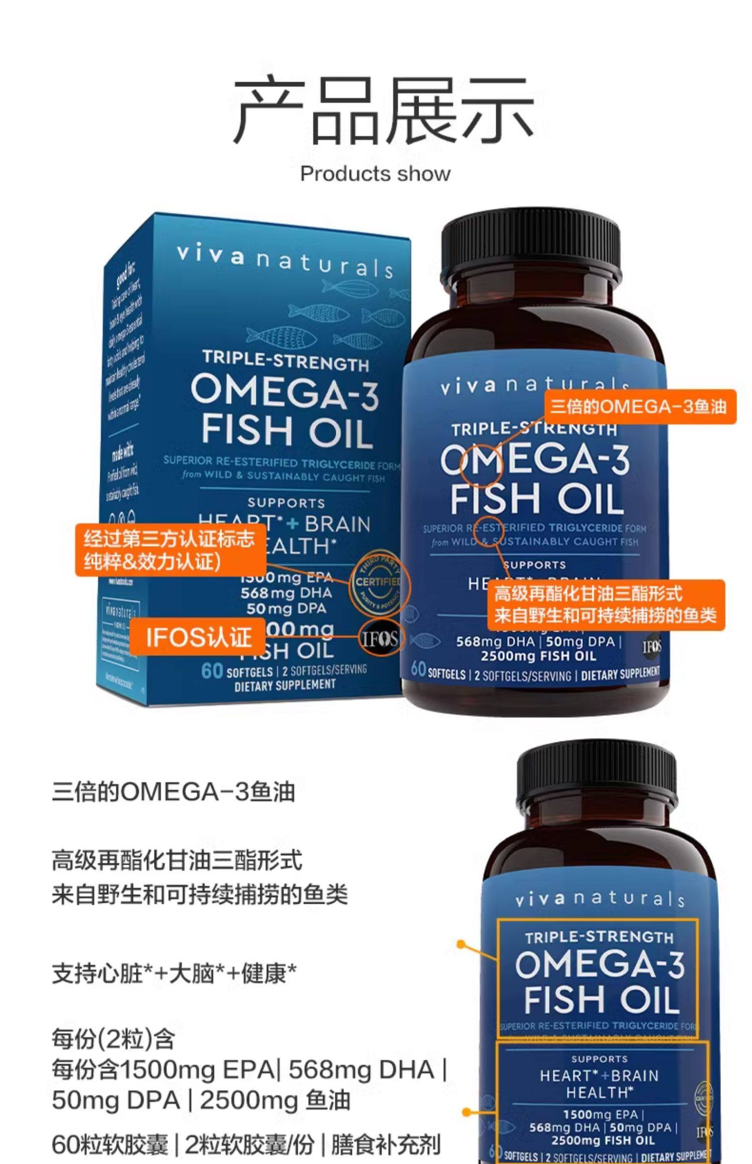 Viva美国进口高纯度含量rTG深海鱼油DPA天然omega3欧米伽3软胶囊