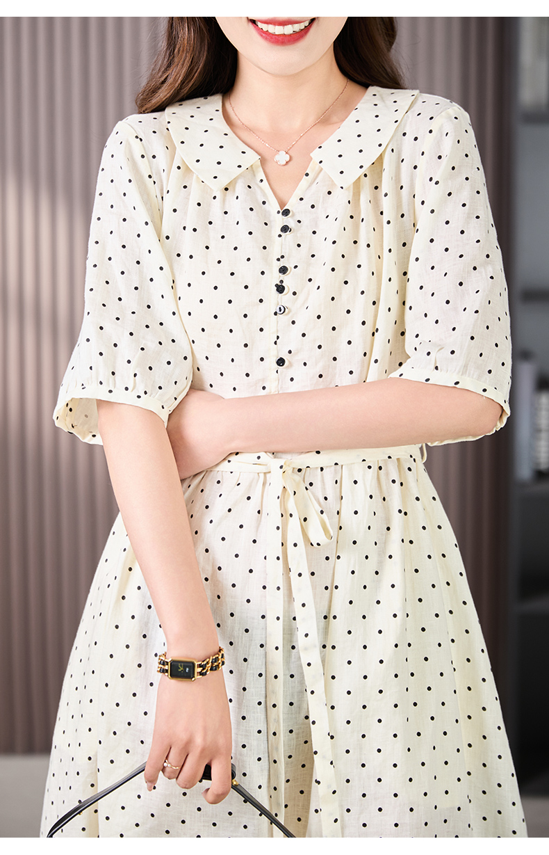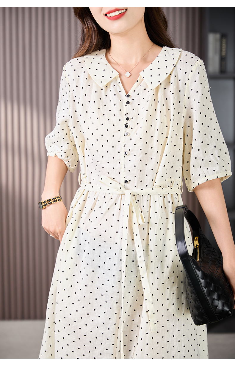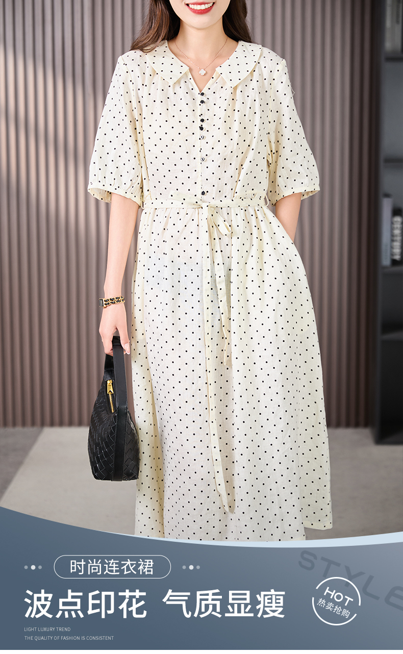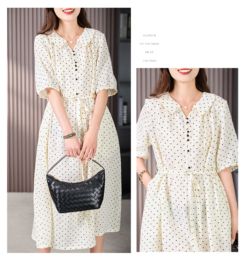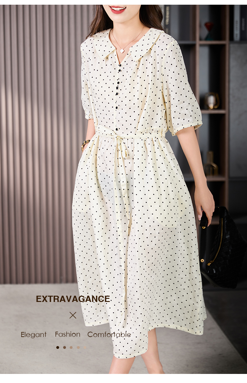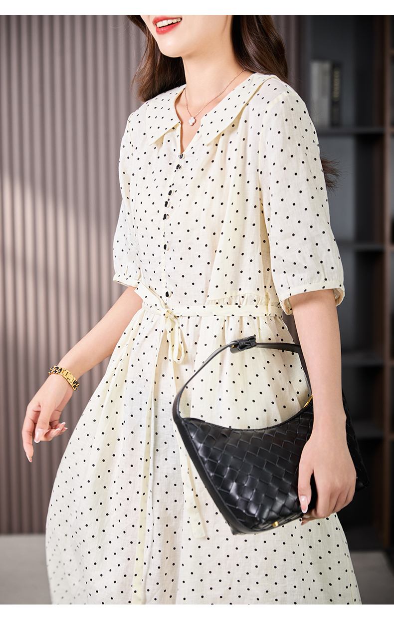 89985原形法式优雅复古波点连衣裙女2024夏季新款衬衫裙收腰中长款裙子