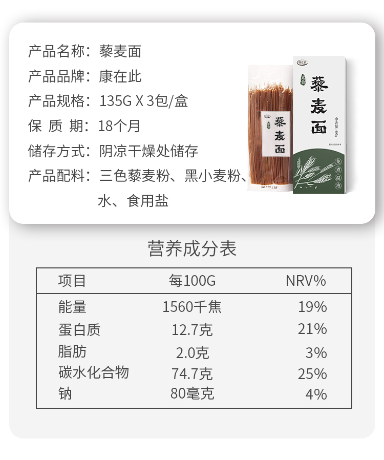 康在此 低脂肪低升糖纯粗粮免煮速食荞麦燕麦藜青稞面