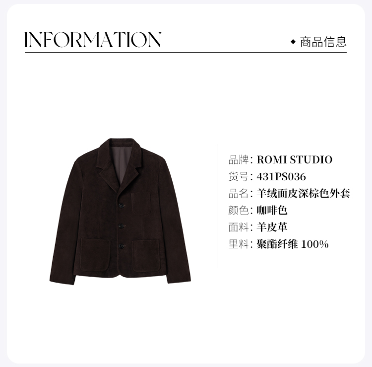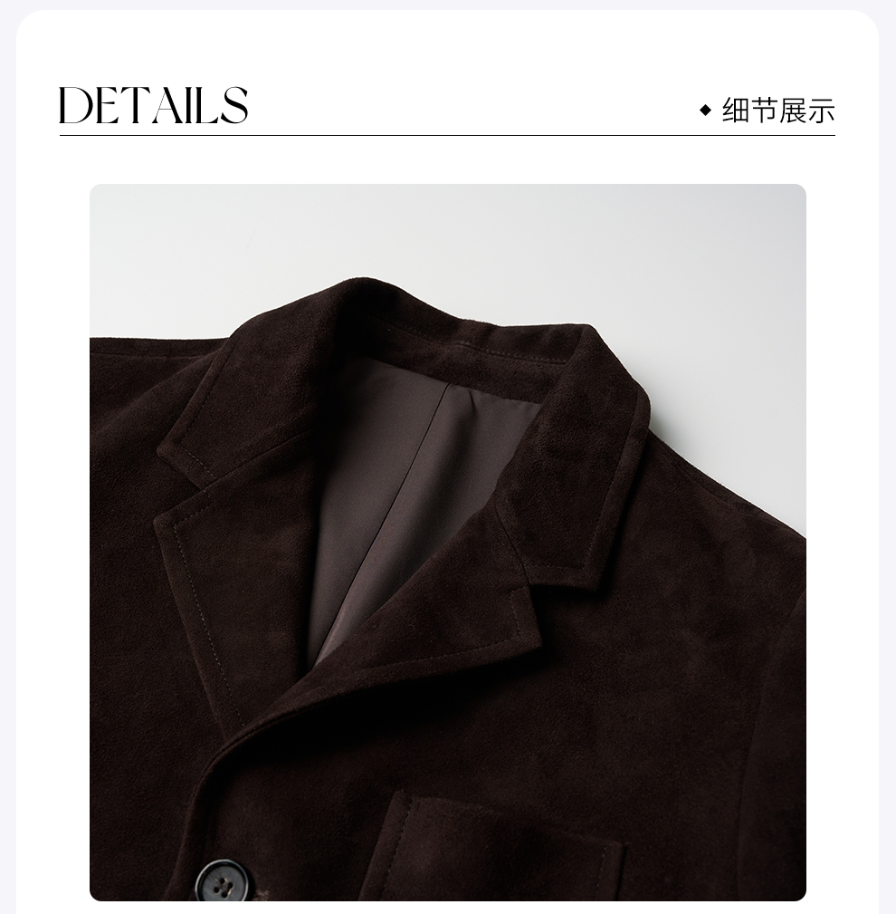 ROMI STUDIO“棕标甄选” 非洲进口混种羊皮绒面西装皮衣431PS036