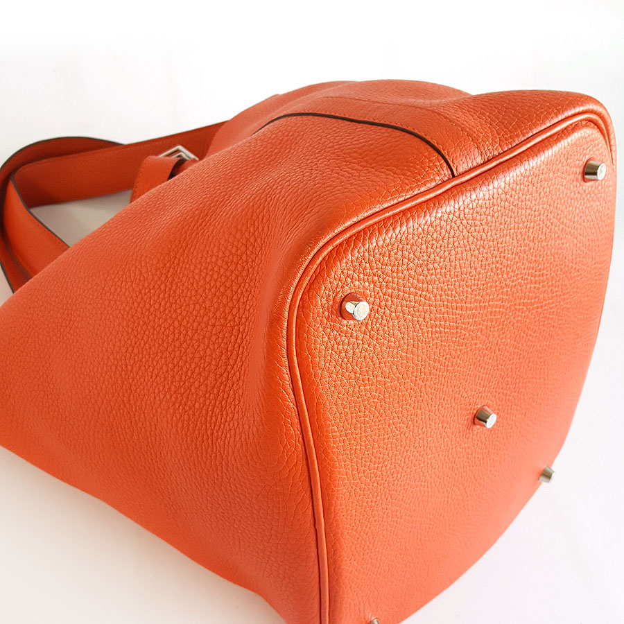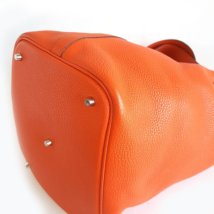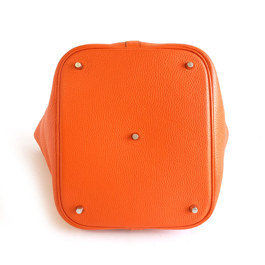 【95新】Hermes爱马仕橘色银扣Picotin 26菜篮子手提包女士 220126NJS23
