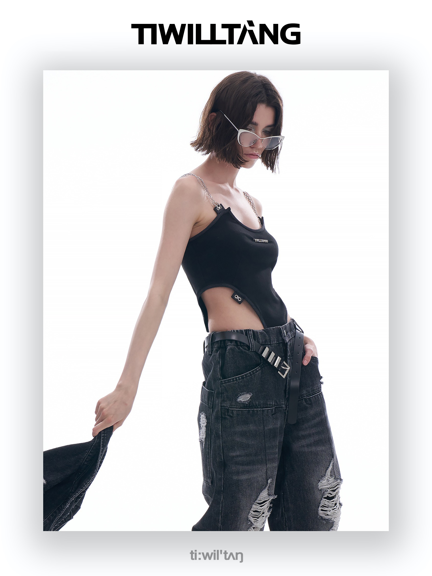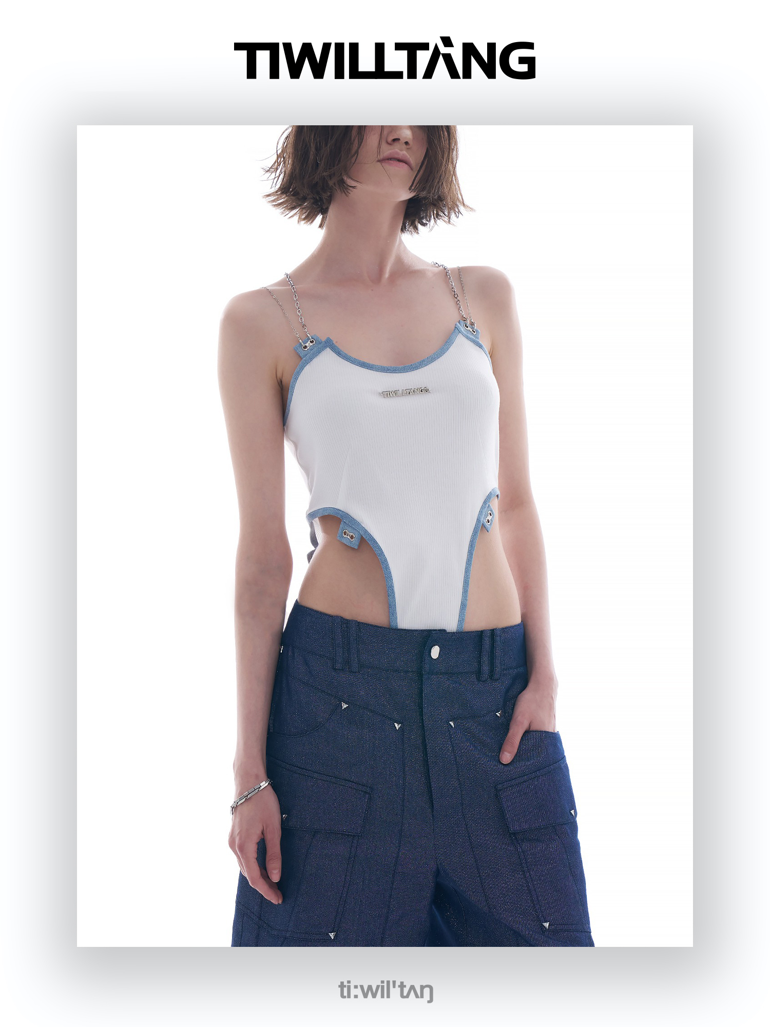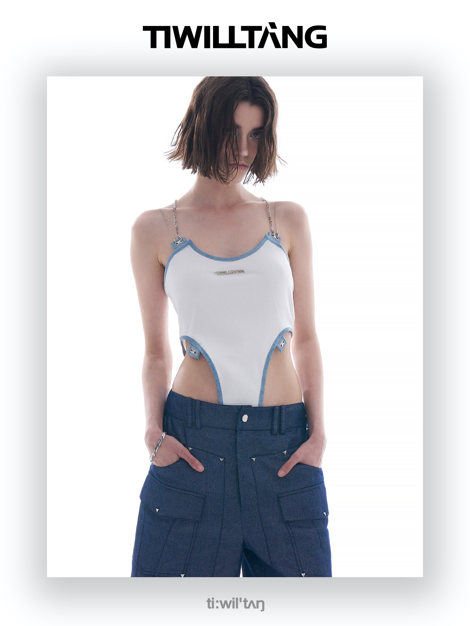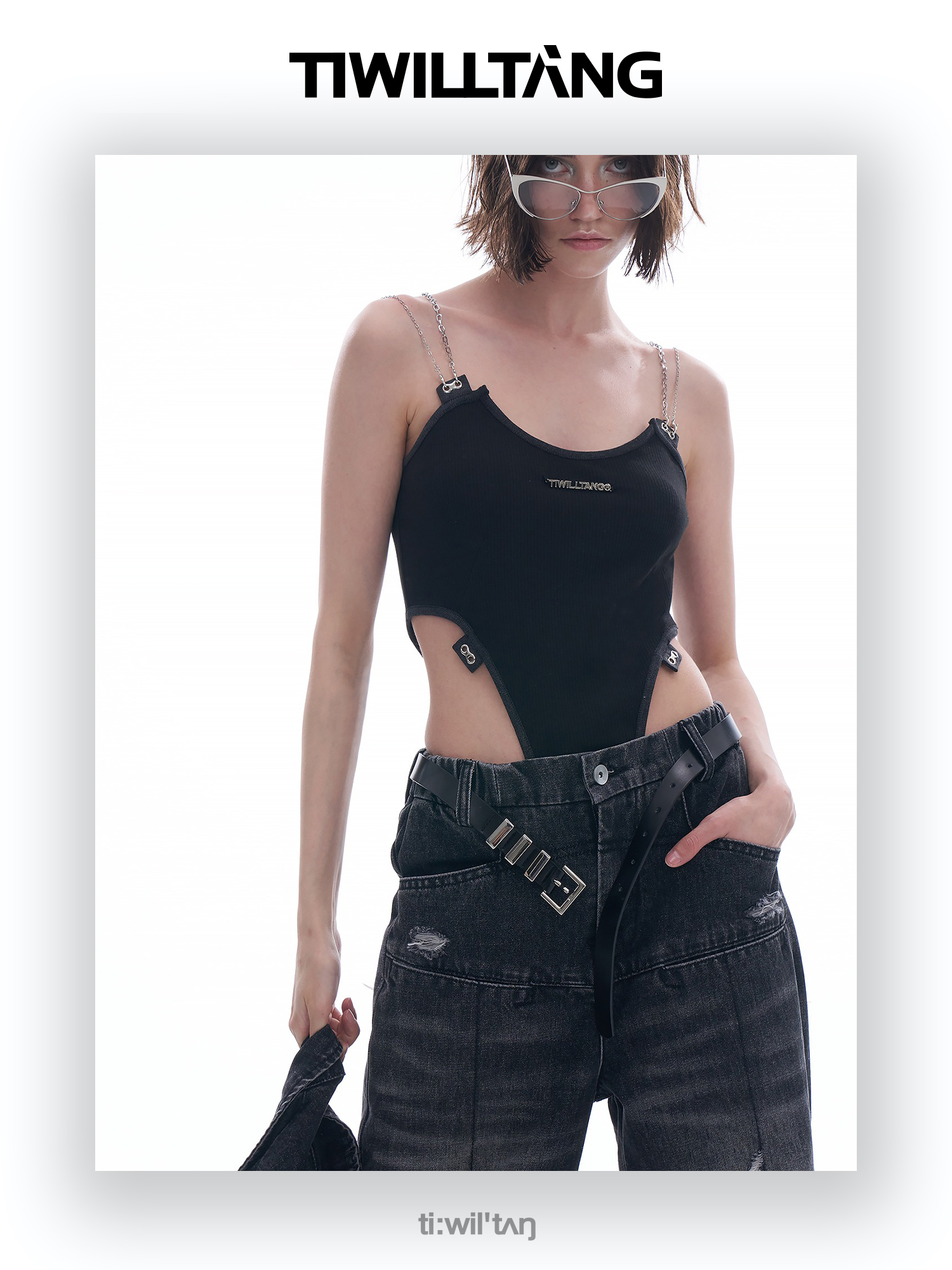启世录TIWILLTANG“朦黎领域”挂脖链条吊带背心女修身连体上衣