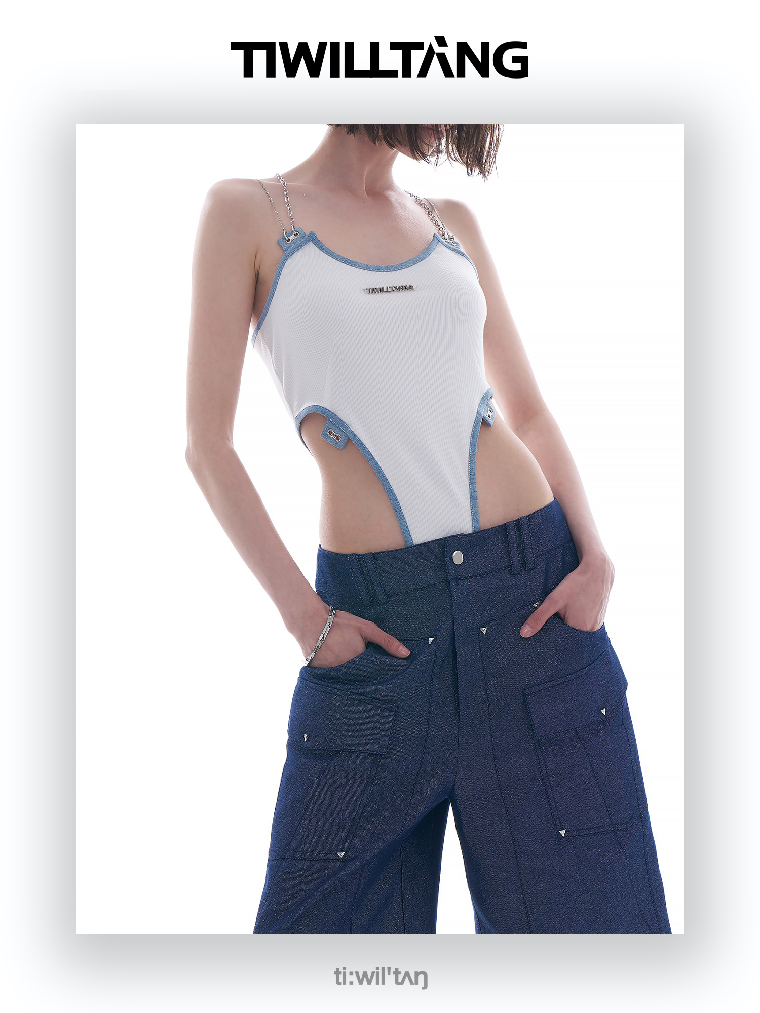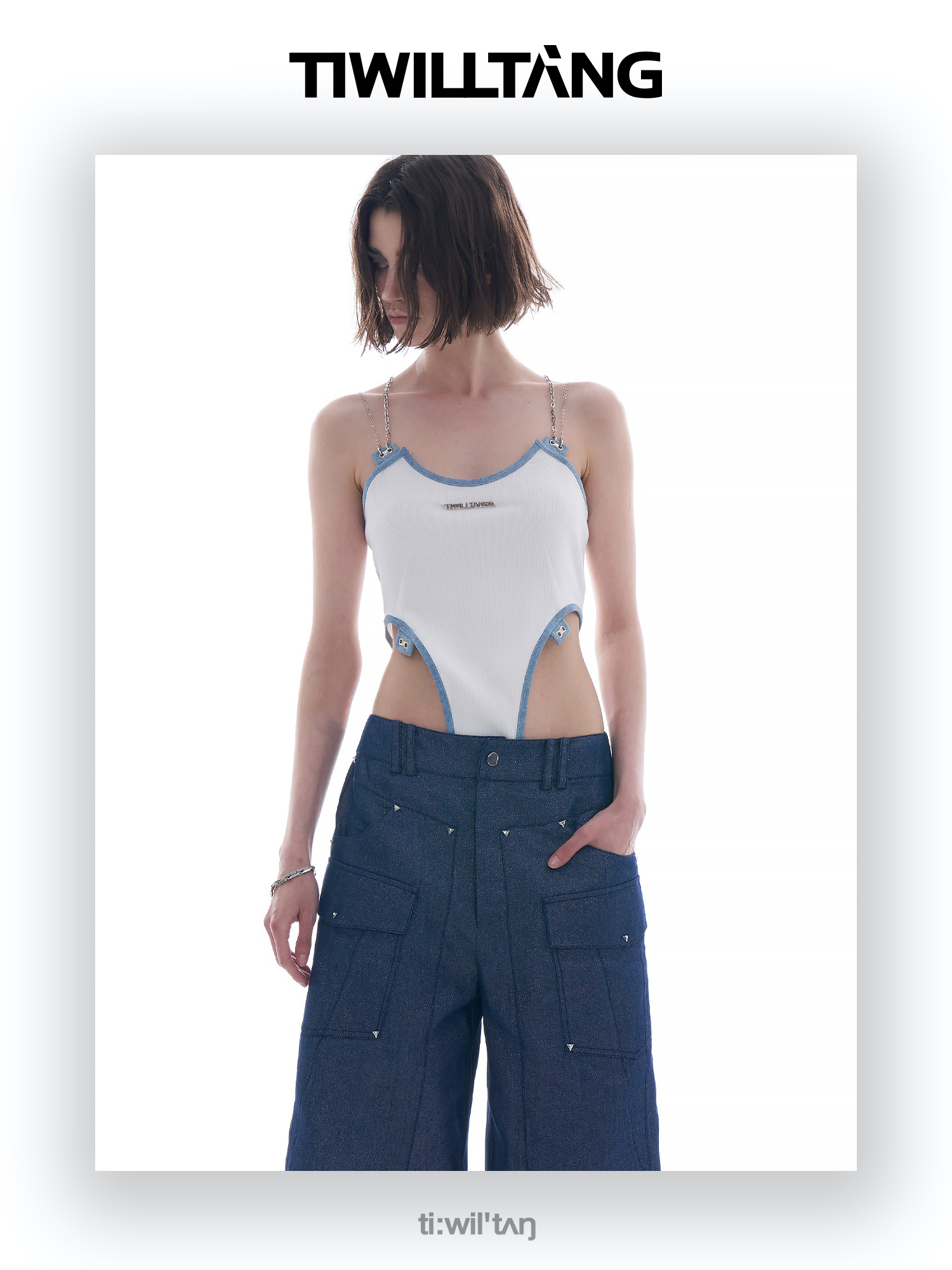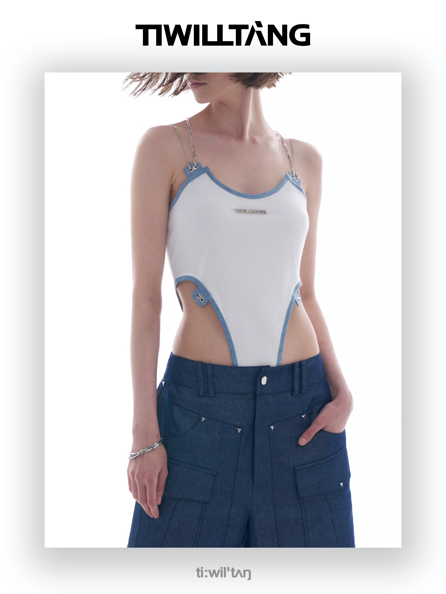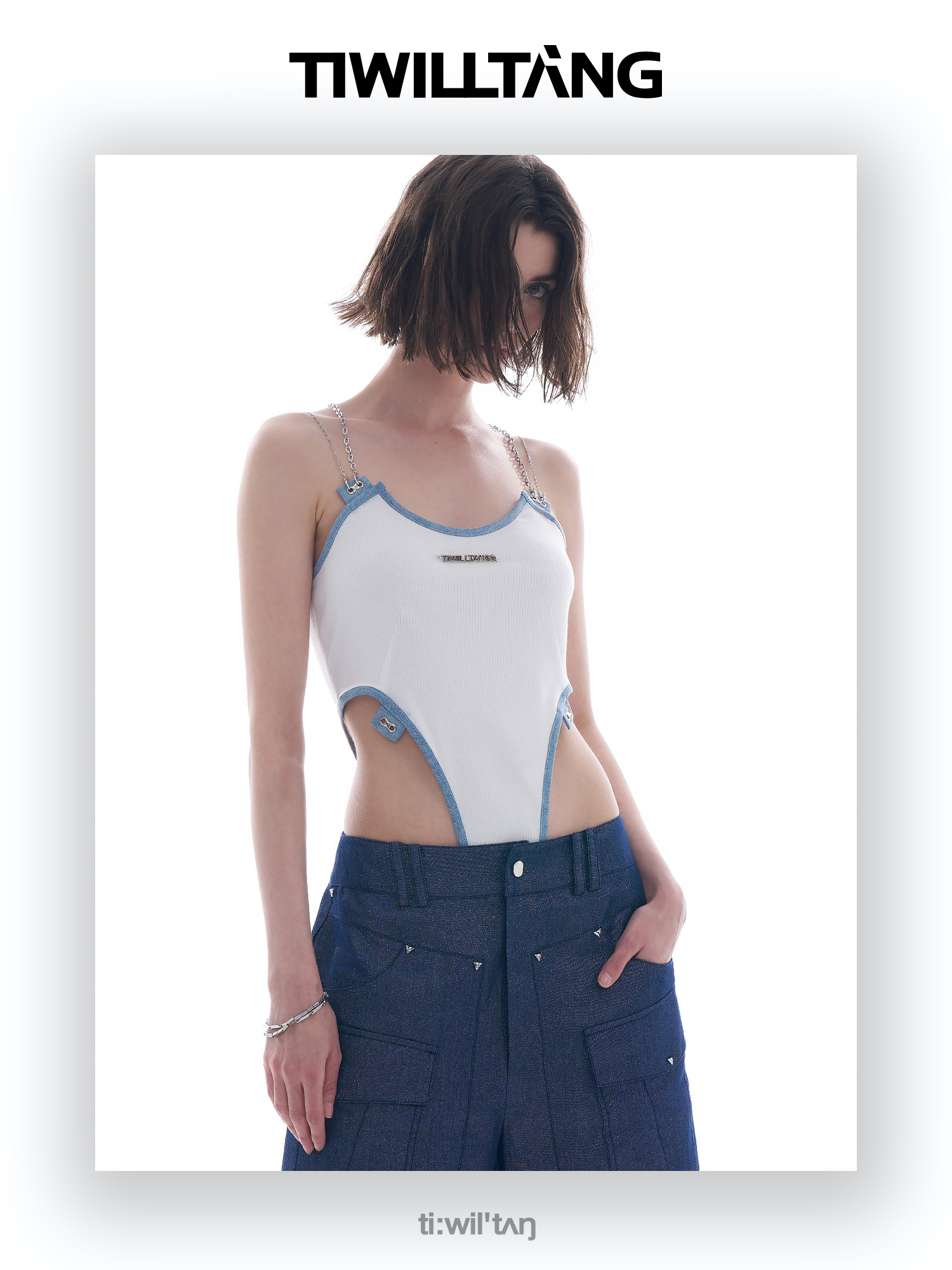 启世录TIWILLTANG“朦黎领域”挂脖链条吊带背心女修身连体上衣