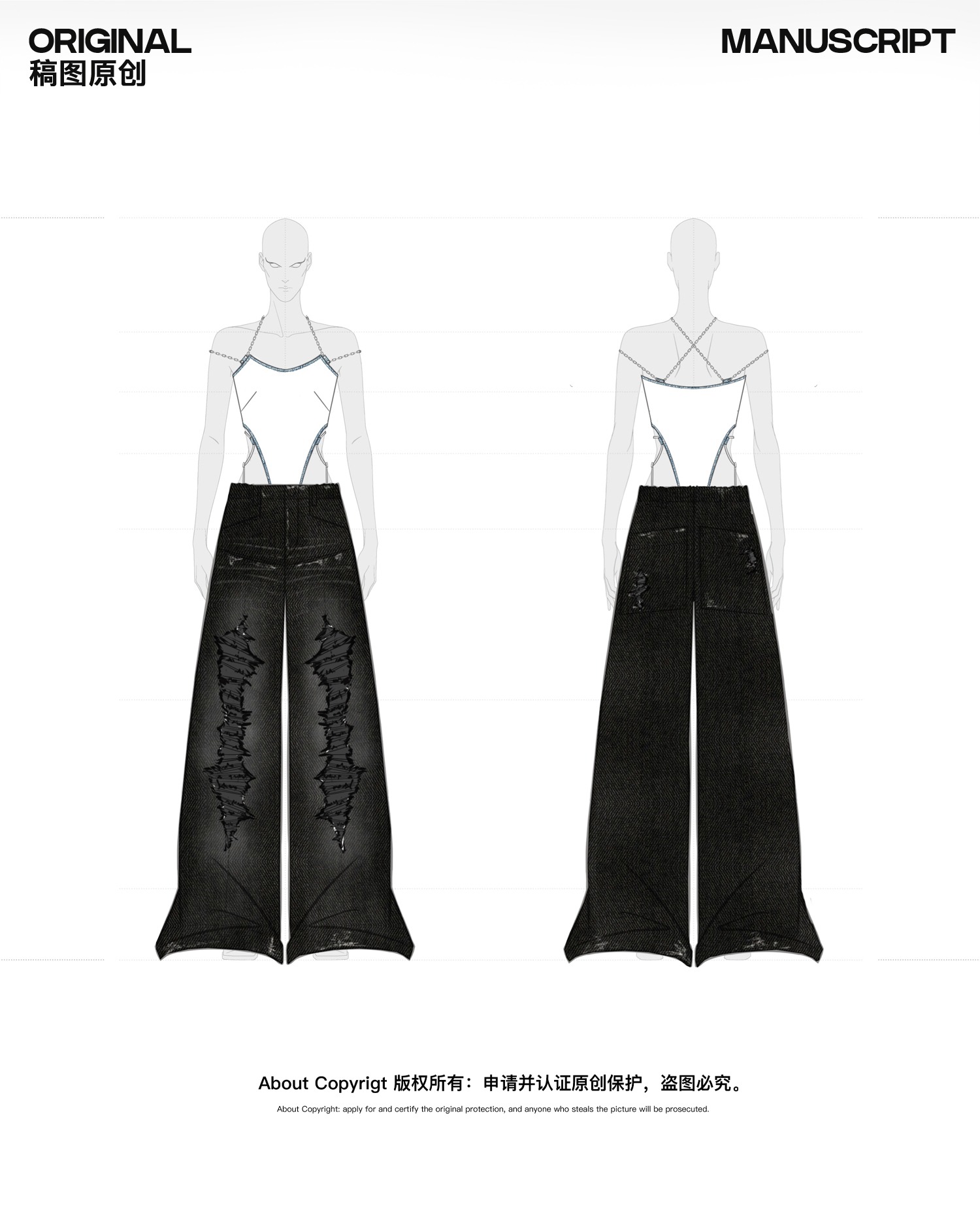 TIWILLTANG启世录“钦衹域裥”折边牛仔长裤