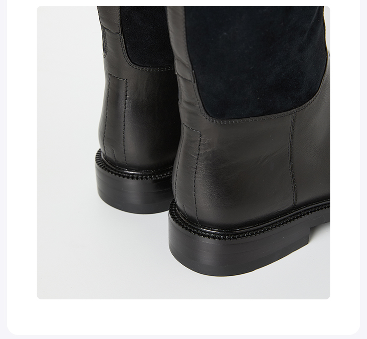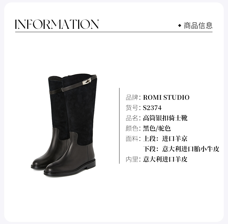 ROMI STUDIO高定制*牛皮配进口羊皮时尚高筒银扣骑士靴S2374